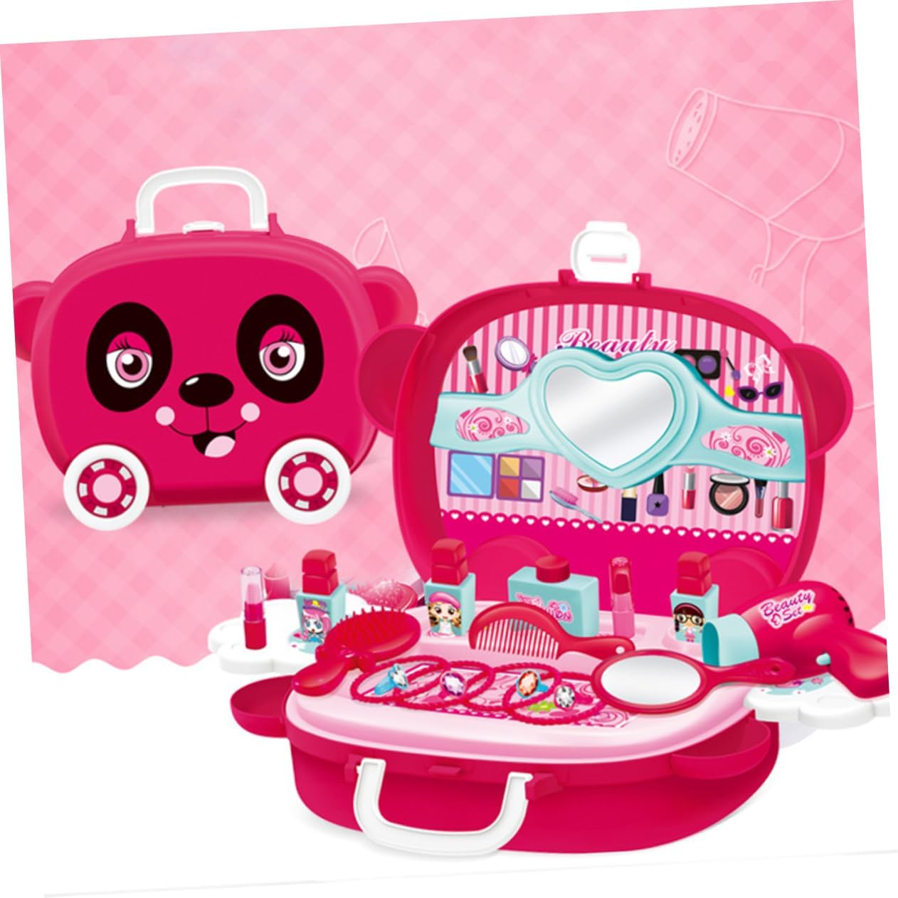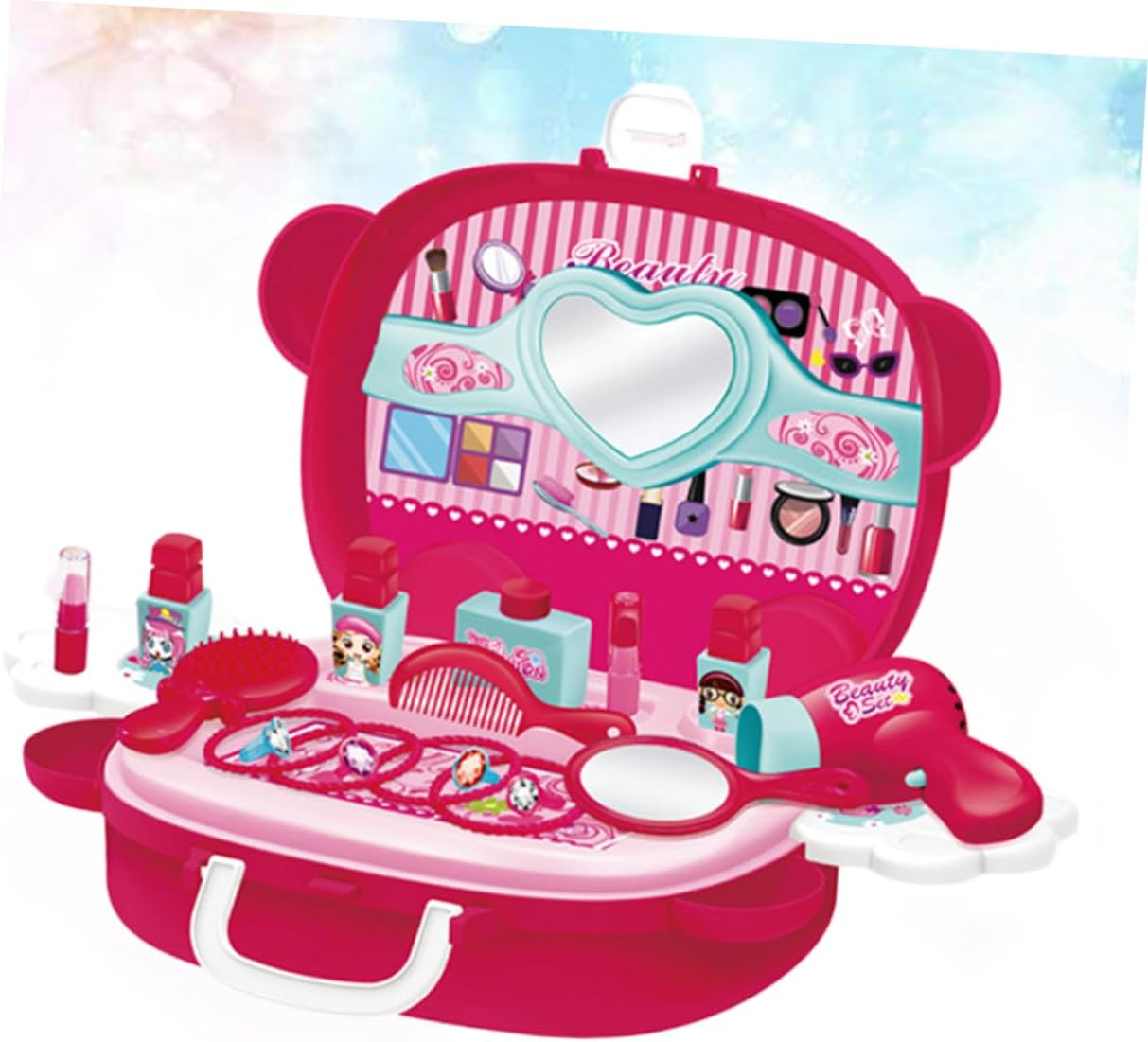 Custodia per cosmetici di simulazione: il design unico della valigia promuove le buone abitudini di conservazione dei bambini e il contenuto della valigia non è facile da perdere, trucco di simulazione Trucco di simulazione: fatto di materiale, durevole e sicuro, puoi usarlo in sicurezza, custodia per cosmetici di simulazione Giocattolo cosmetico di simulazione: la lavorazione è liscia e gli angoli arrotondati non ti faranno male alle mani, il che promuove l'abilità operativa di tuo figlio, custodia per cosmetici di simulazione Puoi fare giochi di ruolo con i tuoi bambini Questo prodotto può accompagnare e migliorare efficacemente l'interazione genitore-figlio Puoi regalare questo prodotto ai tuoi amici e alle tue famiglie Saranno molto felici