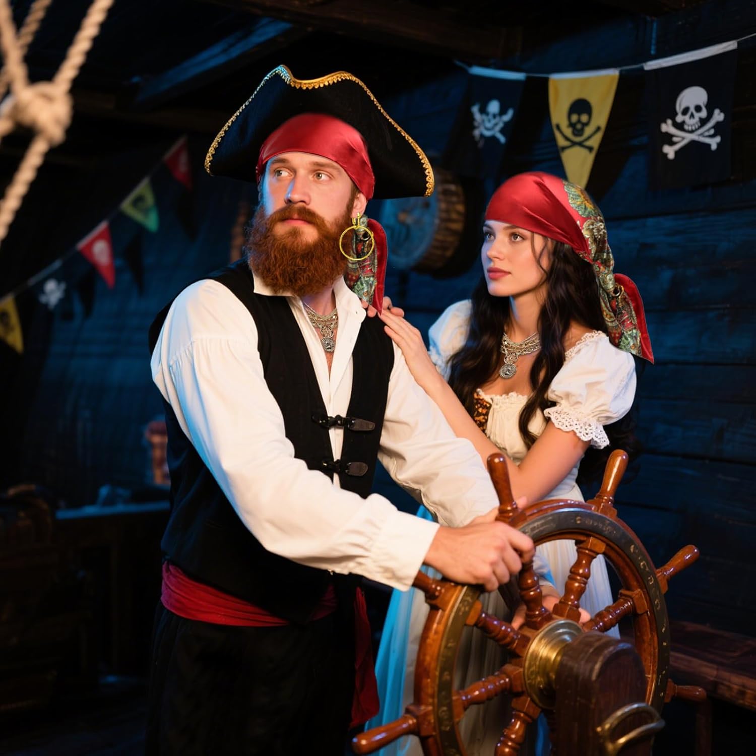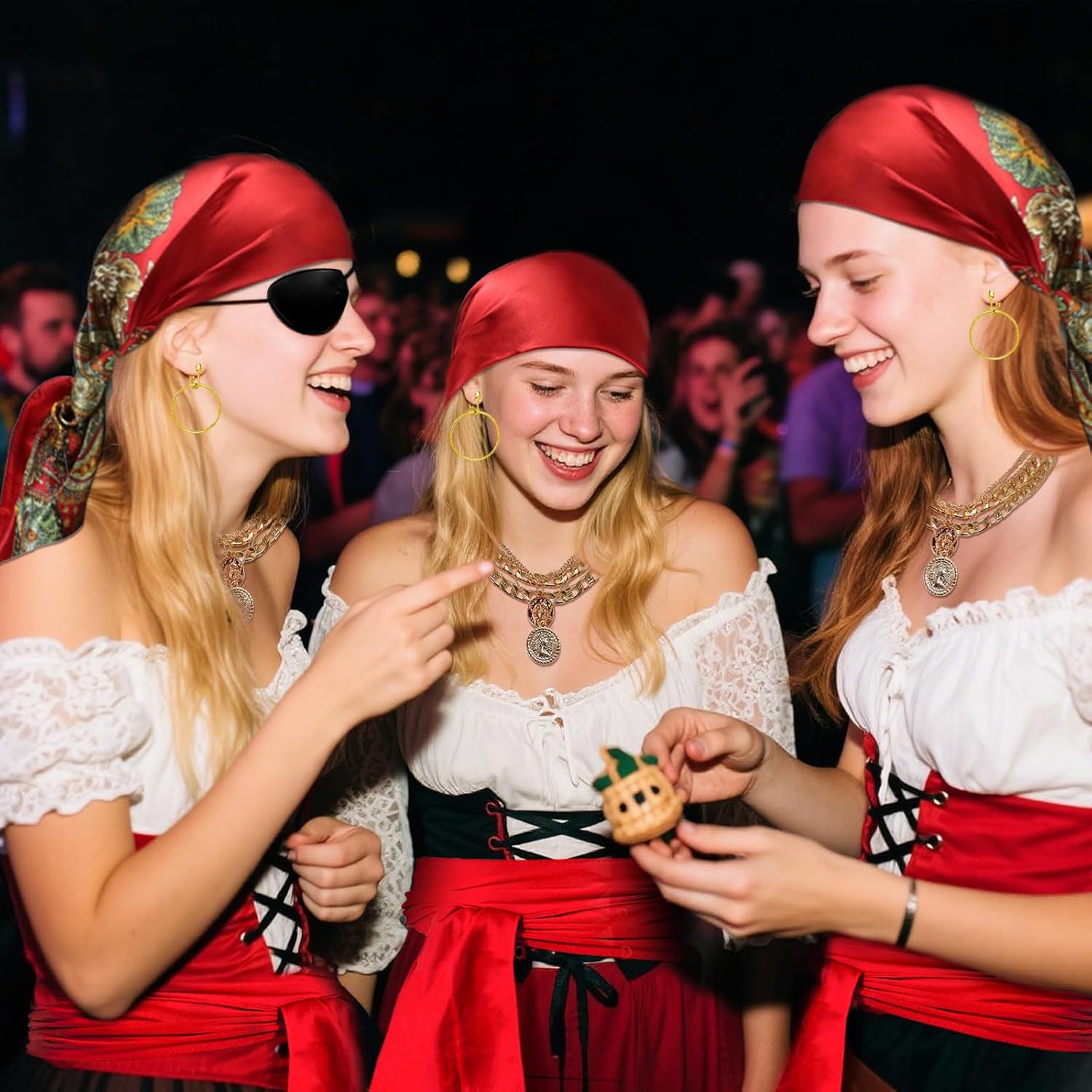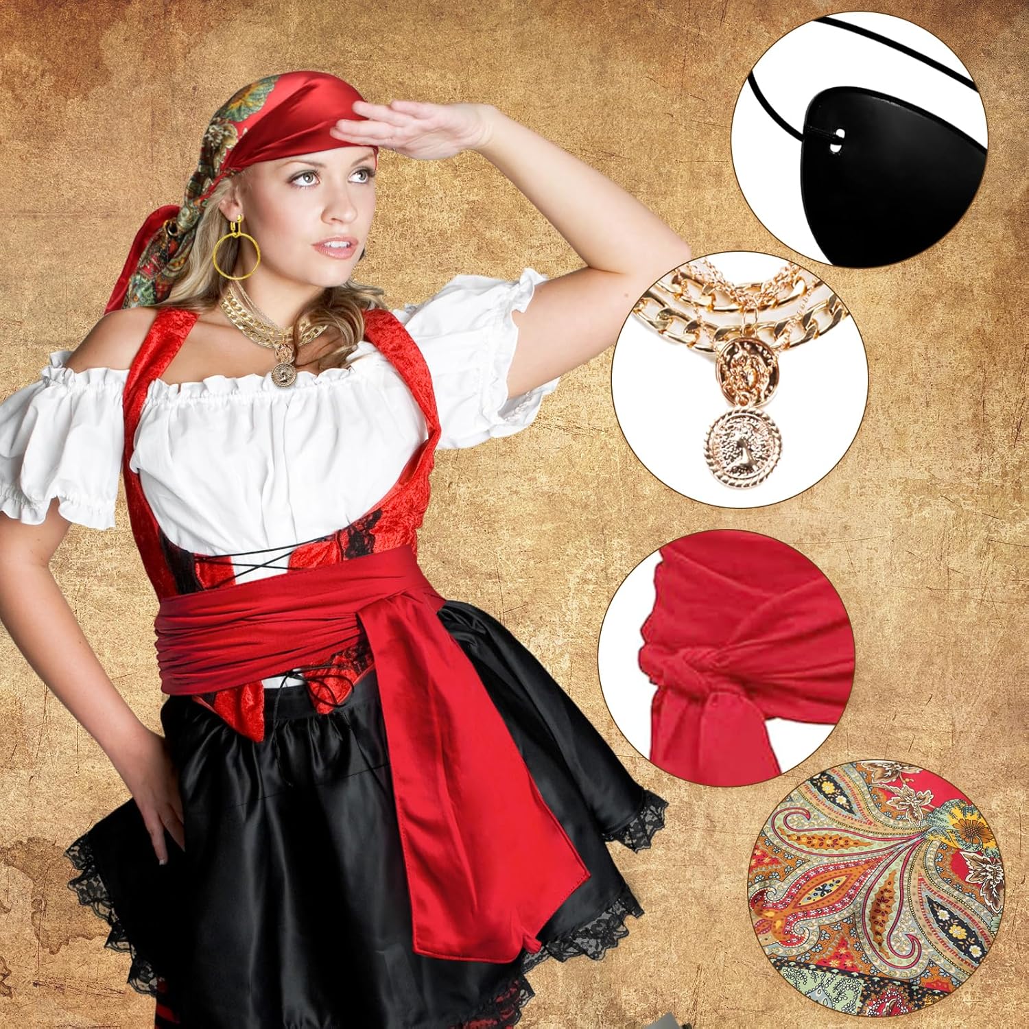 Caratteristiche: Questo classico set di accessori per costume da pirata include 1 bandana da pirata, 1 fascia, 1 collana, 1 benda per gli occhi e 2 orecchini: tutto il necessario per diventare un vero pirata! Ideale per Halloween, cosplay, feste in maschera o feste a tema pirata. La confezione include: 6 x accessori pirata Materiale: raso e poliestere. Colore: Rosso Costume da pirata I pirati sono diventati figure iconiche e amate nella moderna cultura pop, dai film ai giochi ai festival e alle feste. Gli accessori per costumi da pirata sono una scelta ideale per Halloween, cosplay, eventi a tema, recite scolastiche, feste in maschera e altro ancora. Sono perfetti per completare qualsiasi look da pirata.