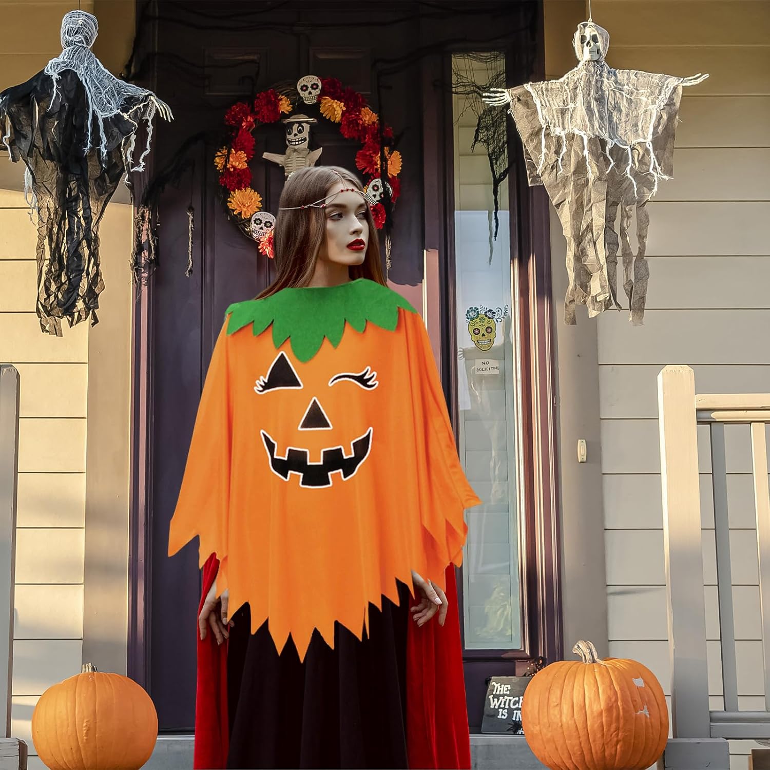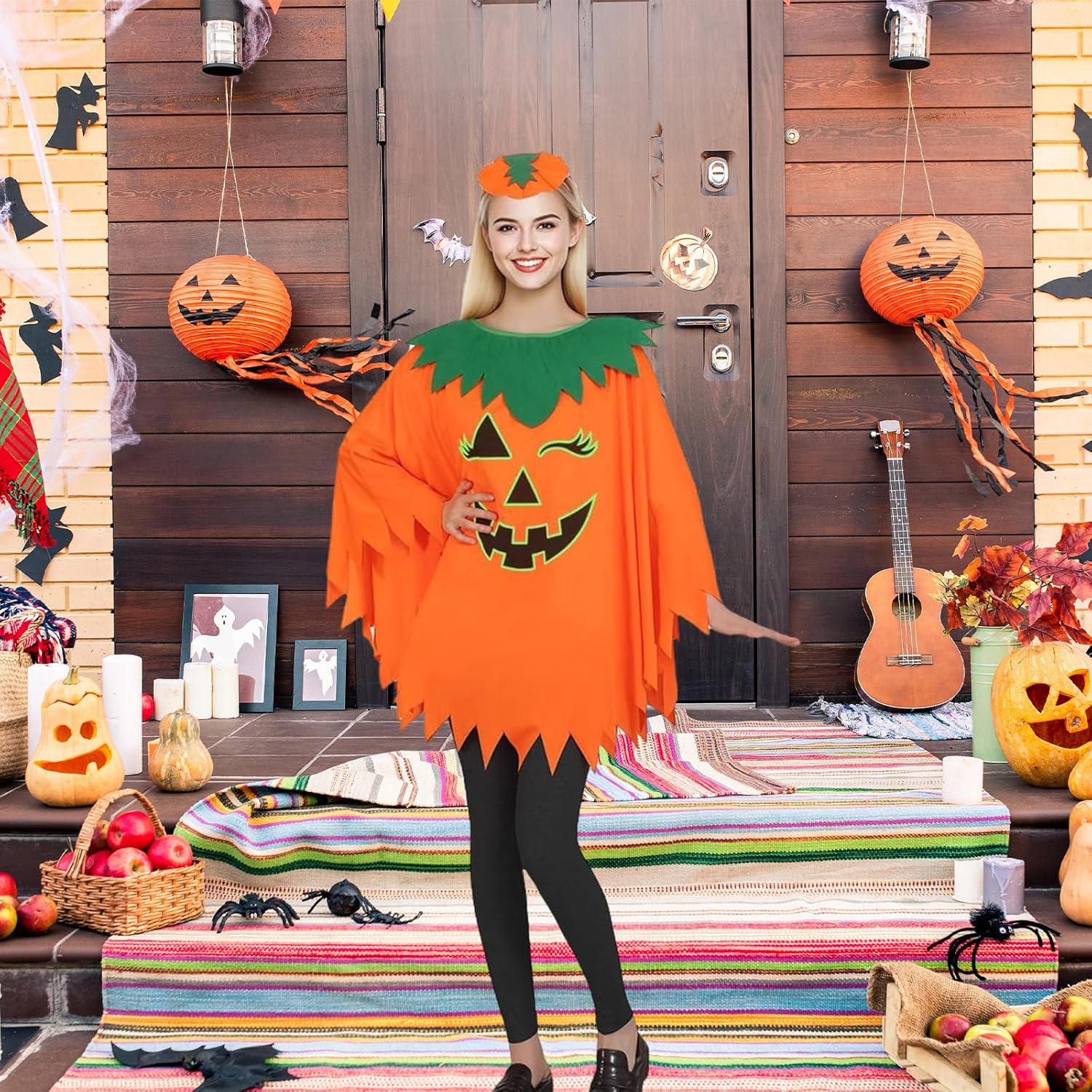 LOOK ZUCCA LUMINOSO PER HALLOWEEN: Il mantello da zucca per donna, con il suo classico arancione e il colletto verde, crea subito un'atmosfera festosa. Il volto stampato sul mantello sottolinea il tema del costume da zucca e rende ogni travestimento unico TRAVESTIMENTO COMPLETO CON ACCESSORI: Questo costume da zucca per donna con accessori include un mantello da zucca, un simpatico cerchietto a forma di zucca e una borsa zucca coordinata. Ideale per chi cerca un look di Halloween coordinato e accattivante CERCHIETTO ZUCCA GIOIOSO: Il leggero cerchietto a forma di zucca aggiunge al vostro look un tocco di umorismo e fascino. Si abbina perfettamente al costume da zucca per donna, completando l'outfit e rimanendo comodo da indossare senza scivolare BORSA ZUCCA PRATICA PER DOLCI: La borsa zucca inclusa offre spazio sufficiente per dolci e piccoli regali. Robusta, leggera e riutilizzabile – un indispensabile per ogni attività di Halloween IDEALE PER HALLOWEEN E FESTE IN MASCHERA: Che siate alla festa di Halloween, al festival della zucca o in giochi di ruolo – con il mantello da zucca e il costume da zucca farete sempre una bella figura. La combinazione tra costume da zucca per donna e accessori offre molteplici possibilità di utilizzo