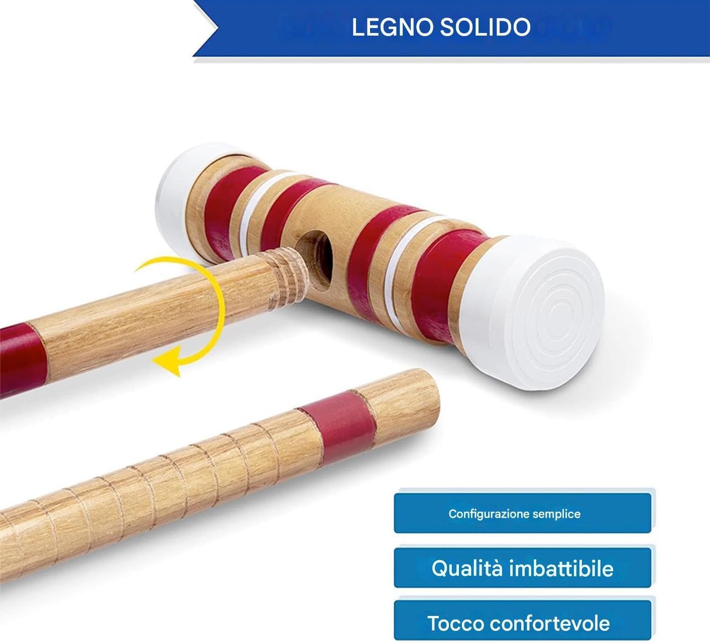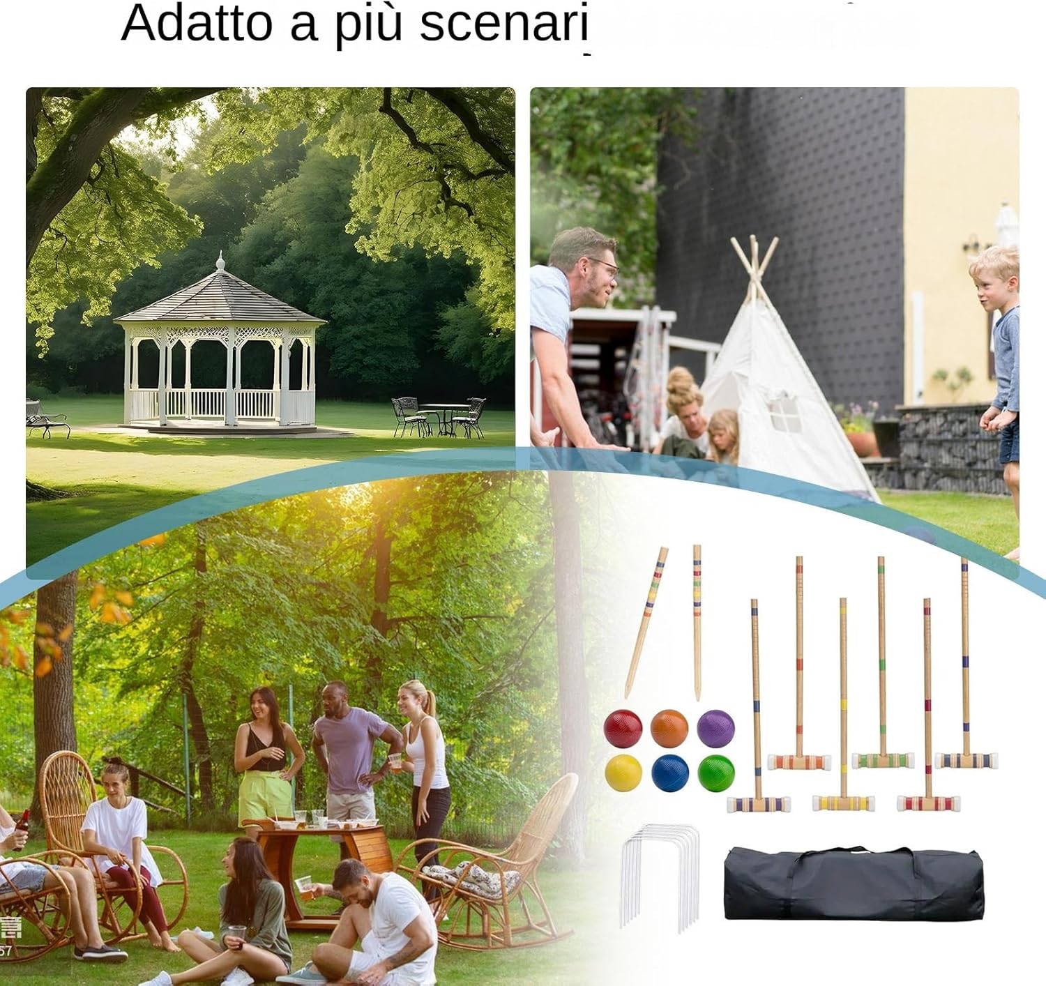 Gioco delizioso: immergiti in questi giochi senza e divertimenti che supportano da 2 a 6 giocatori e fornisce altri modi di giocare; Iniziare è un gioco da ragazzi, assicurando che tutti possano unirsi al croquet di famiglia che impostare l'eccitazione Usa durabilmente: il nostro set di croquet è progettato da materiali in legno robusti per un uso esteso, promettente longevità perfetta e resistente alla rottura o alla deformazione Progettazione portatile: con un design portatile e custodie incluse, questo set di croquet è per i giochi spontanei ovunque, garantendo un facile trasporto e conservazione Vieni con un set: contenente 6 palline, 6 mazze, 2 poli e 6 porte, questo set consente a 6 persone di giocare contemporaneamente: ideali per lo stoccaggio e facilmente trasportabili, garantendo divertimento sempre e ovunque con completi Applicazione completa: ideale per spazi esterni come prati, cortili e parchi, garantendo il massimo intrattenimento e divertimento per tutti i partecipanti