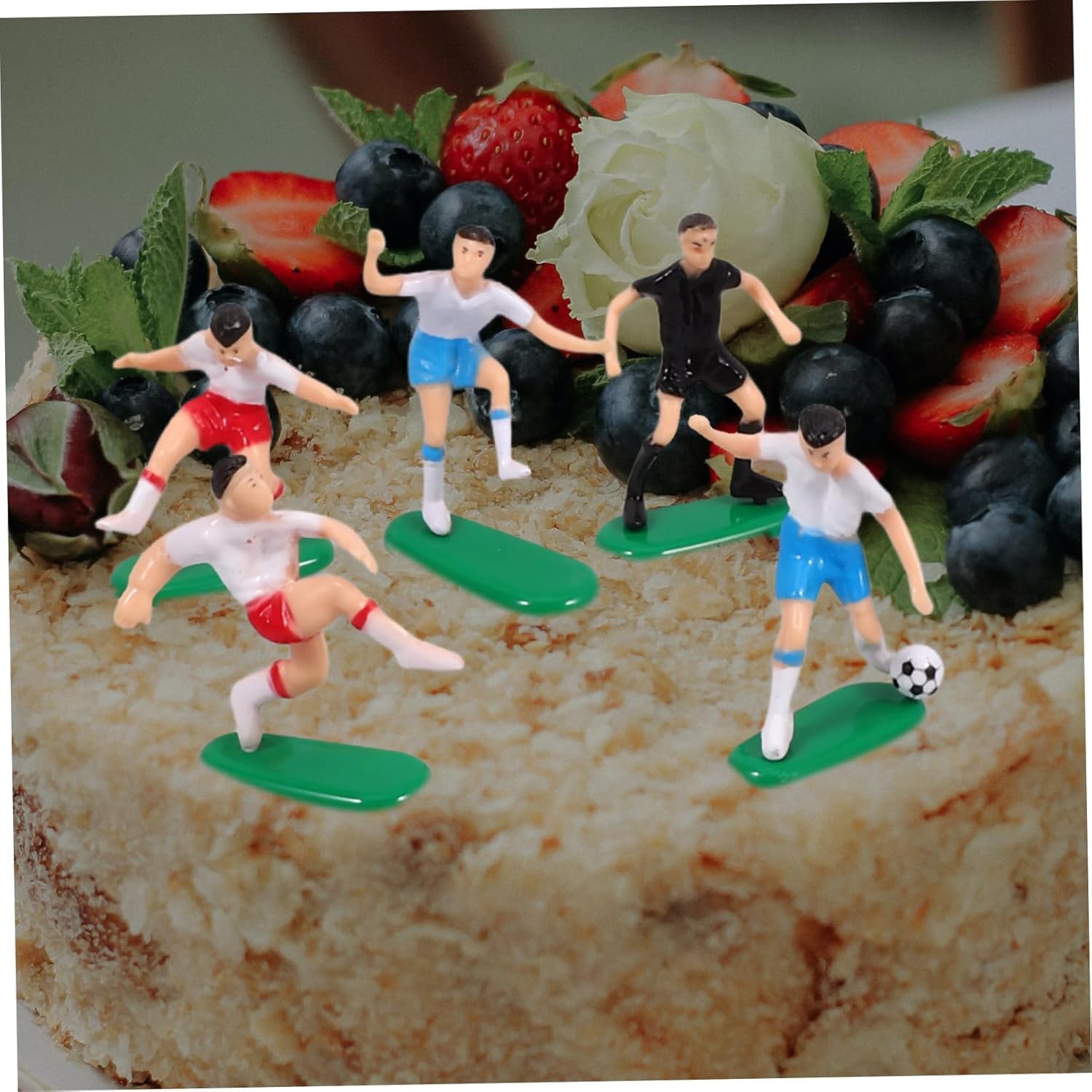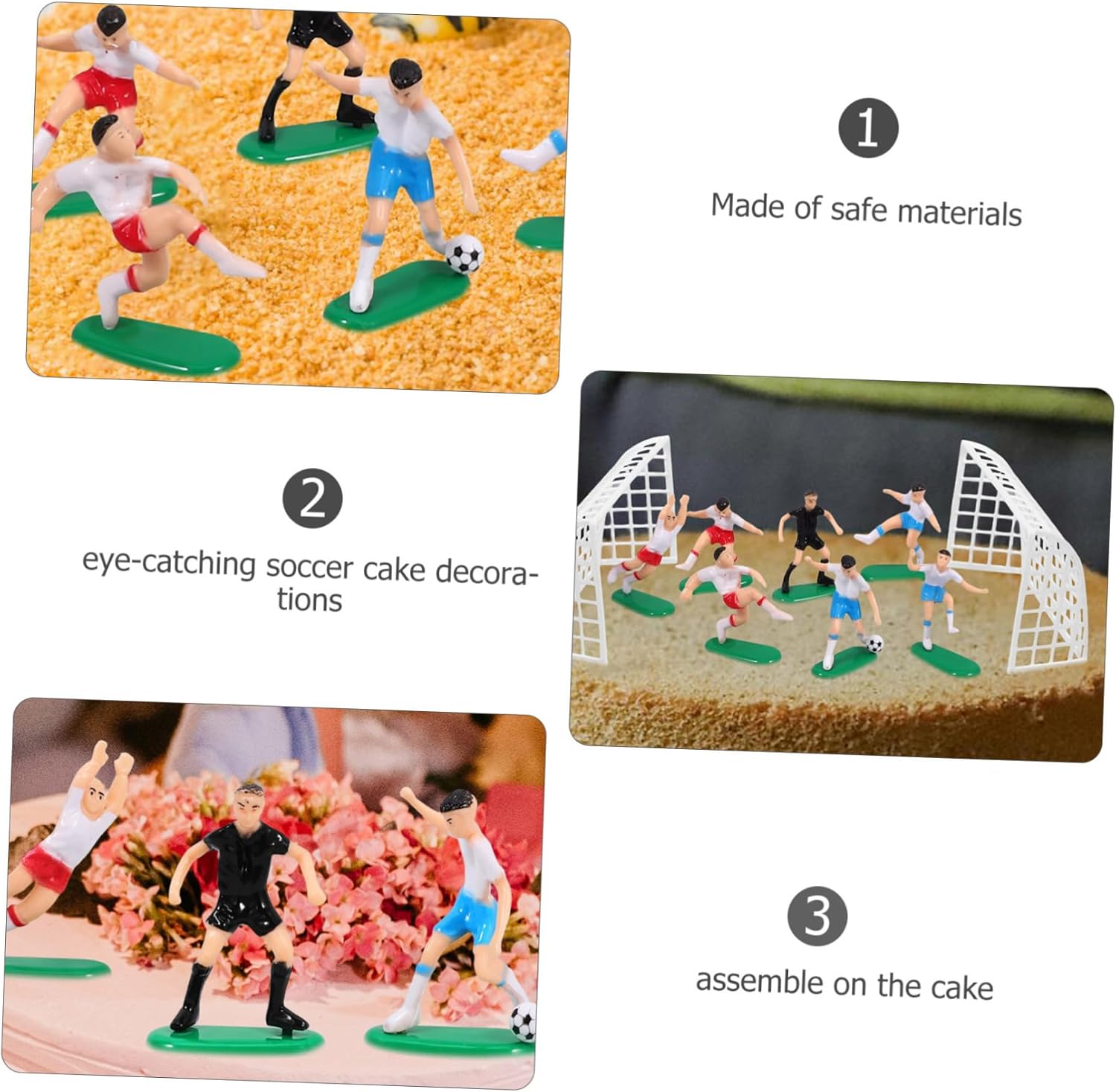 Decorazione per torta in plastica: piccola e portatile, questa decorazione da calcio in miniatura può essere utilizzata come decorazione per torta da calcio da amici e appassionati di calcio. Figura di calcio in miniatura: riutilizzabile e sicura da usare, puoi utilizzare questa decorazione per torta per molti scopi, decorativi e pratici, mini calcio. Calcio in miniatura: questo set di decorazioni contiene una varietà di decorazioni per creare un paesaggio di calcio in miniatura da decorare, toppers cupcake da calcio. Scegli cupcake da calcio: per decorare e personalizzare torte fai da te. Realizzato con materiali sicuri per la massima tranquillità, topper per torta di calcio per ragazzi. Accessori per feste di compleanno sportive: realizzati con materiali ABS, sicuri e affidabili da usare, con un design versatile, pallone da calcio in miniatura in plastica.