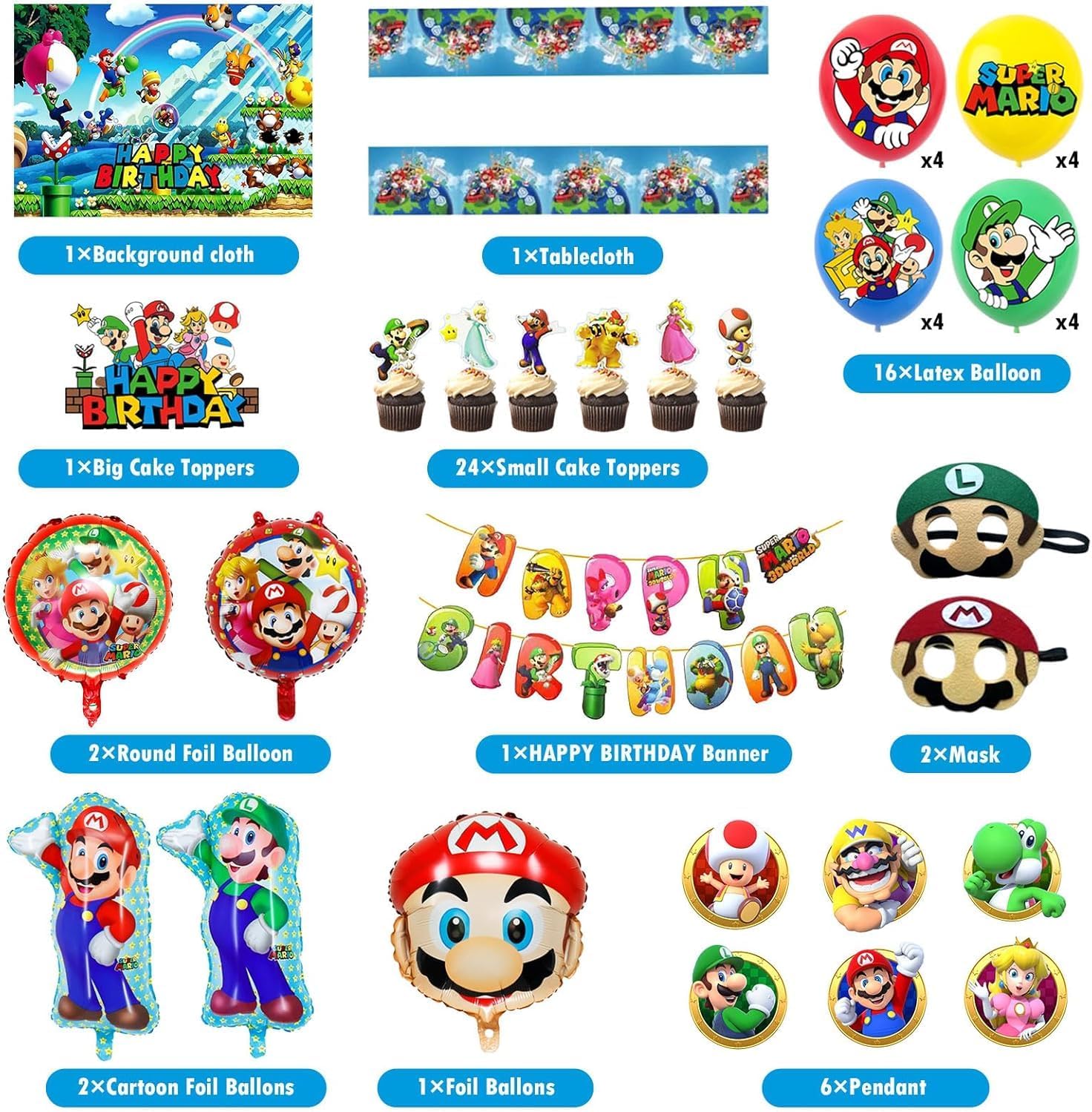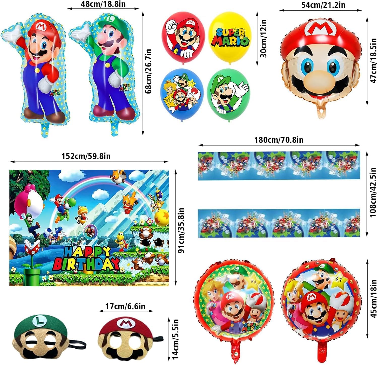 ●【Set di decorazioni per compleanni】1 striscione Happy Birthday, 6 girelle sospese, 1 panno di fondo, 2 maschere per gli occhi (2 stili), 16 palloncini in lattice (4 colori), 1 grande decorazione per torta di compleanno, 24 decorazioni per torte, 5 palloncini in pellicola e 1 tovaglia. Materiali decorativi: i palloncini in lattice del set decorativo di compleanno sono realizzati in gomma biodegradabile, sono ecologici e non tossici. I palloncini in pellicola sono ben chiusi, facili da gonfiare, non scoppiano facilmente e sono riutilizzabili. Accessori per feste: le decorazioni decorative di compleanno sono molto popolari tra i bambini di tutte le età. Pieno di temi infantili e design speciali, adulti e bambini li adoreranno e le nostre decorazioni di compleanno regaleranno sicuramente ai bambini bei ricordi. Decorazioni: il set di decorazioni per feste di compleanno è progettato a tema, elementi classici, interessanti e colori vivaci garantiscono molto divertimento. Possono essere comodamente appesi e combinati, in modo da poter godere del divertimento della decorazione fai da te. ●【Servizio perfetto】Ci impegniamo a fornire buoni prodotti e un buon servizio. Per qualsiasi domanda o problema, non esitate a contattarci. Ti forniremo la migliore soluzione possibile.