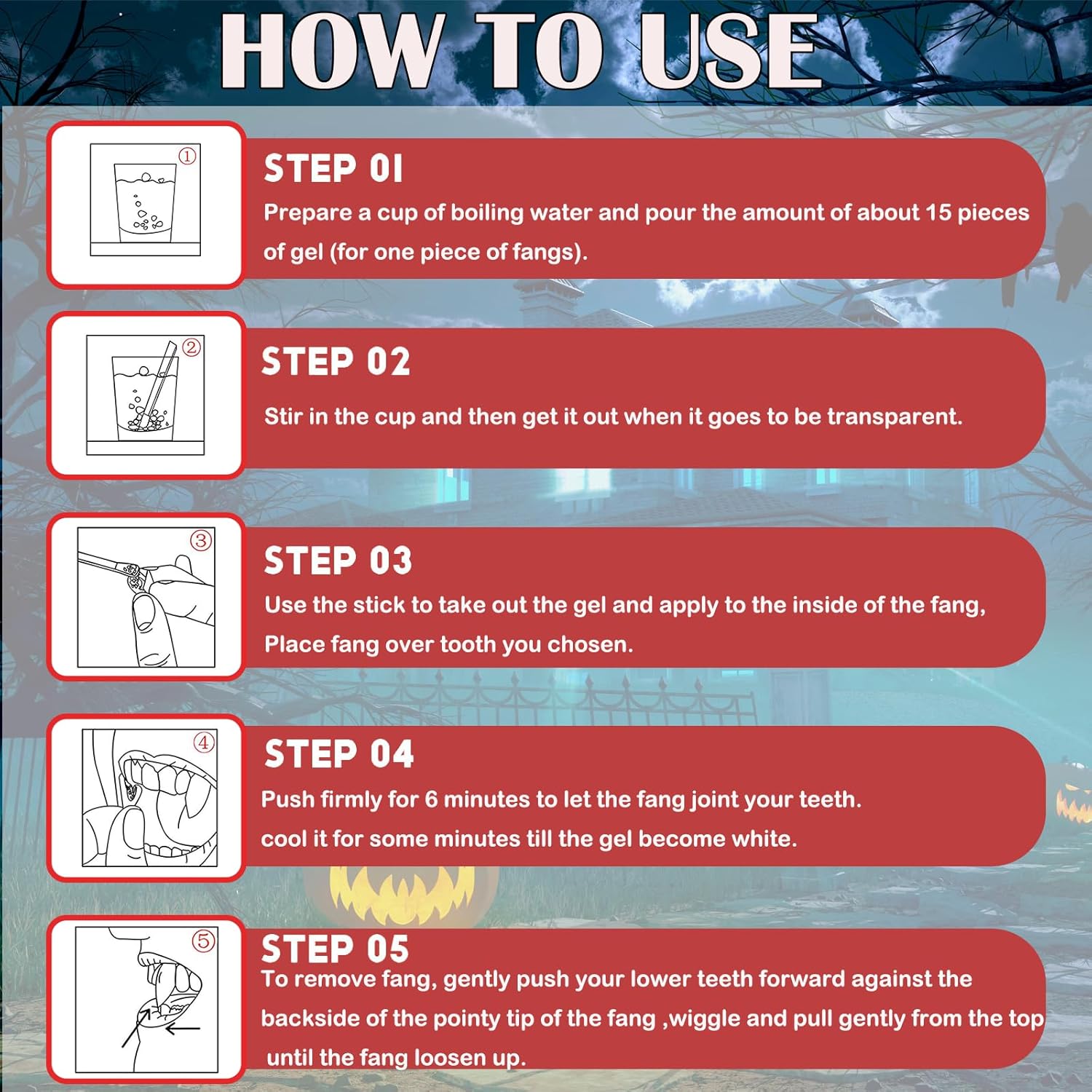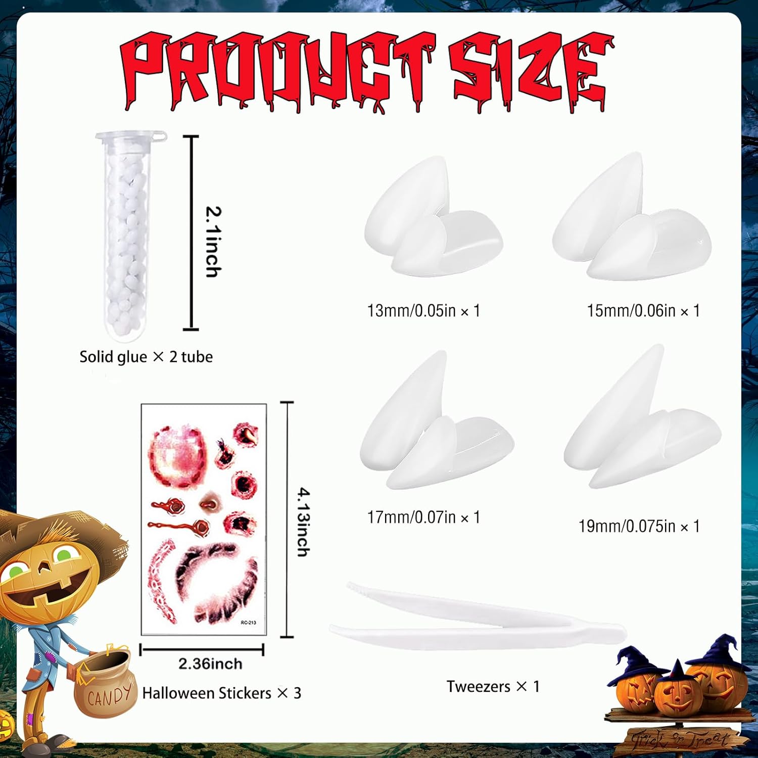 SET DI DENTI DA VAMPIRO DA 10 PEZZI: Il set di denti finti vampiro contiene 4 paia di denti di vampiro di 4 dimensioni: 13 mm, 15 mm, 17 mm e 19 mm. Sono inoltre presenti 2 tubi di adesivo per particelle di denti, 3 bellissimi adesivi per tatuaggi di Halloween, una pinzetta e un manuale di istruzioni in cinque lingue. MATERIALE DI ALTA QUALITÀ: Le denti da vampiro adulto che vi presentiamo sono realizzate con stampaggio a iniezione di resina di alta qualità, che garantisce che le denti finti halloween siano sicure e innocue, sicure per i vostri denti e dall'aspetto realistico. NOTA: si prega di sciacquare accuratamente la vampire teeth con acqua calda e sapone prima dell'uso. FACILE DA INIZIARE : Per garantire che ogni utente possa facilmente padroneggiare le tecniche di utilizzo,abbiamo preparato con cura dei manuali d'uso in cinque lingue. Questi manuali illustrano le semplici fasi di installazione per posizionare le vampiro denti di Halloween in modo rapido e sicuro. UTILIZZO AMPIO: Queste denti halloween sono il compagno perfetto per il vostro gioco di ruolo horror, sia che si tratti di una festa in maschera di Halloween o di una varietà di feste a tema, aggiungeranno molto al vostro look. Questi denti vampiro halloween sono adatti per essere utilizzati come vampiri, lupi mannari, zombie e altro ancora. Servizio di qualità: quando utilizzate i nostri prodotti, se avete domande o bisogno di assistenza, il nostro team di professionisti del servizio clienti promettendo di rispondere rapidamente a ogni vostra richiesta entro 24 ore. Ci preoccupiamo sempre della vostra esperienza e ci impegniamo a fornire una gamma completa di assistenza e supporto.