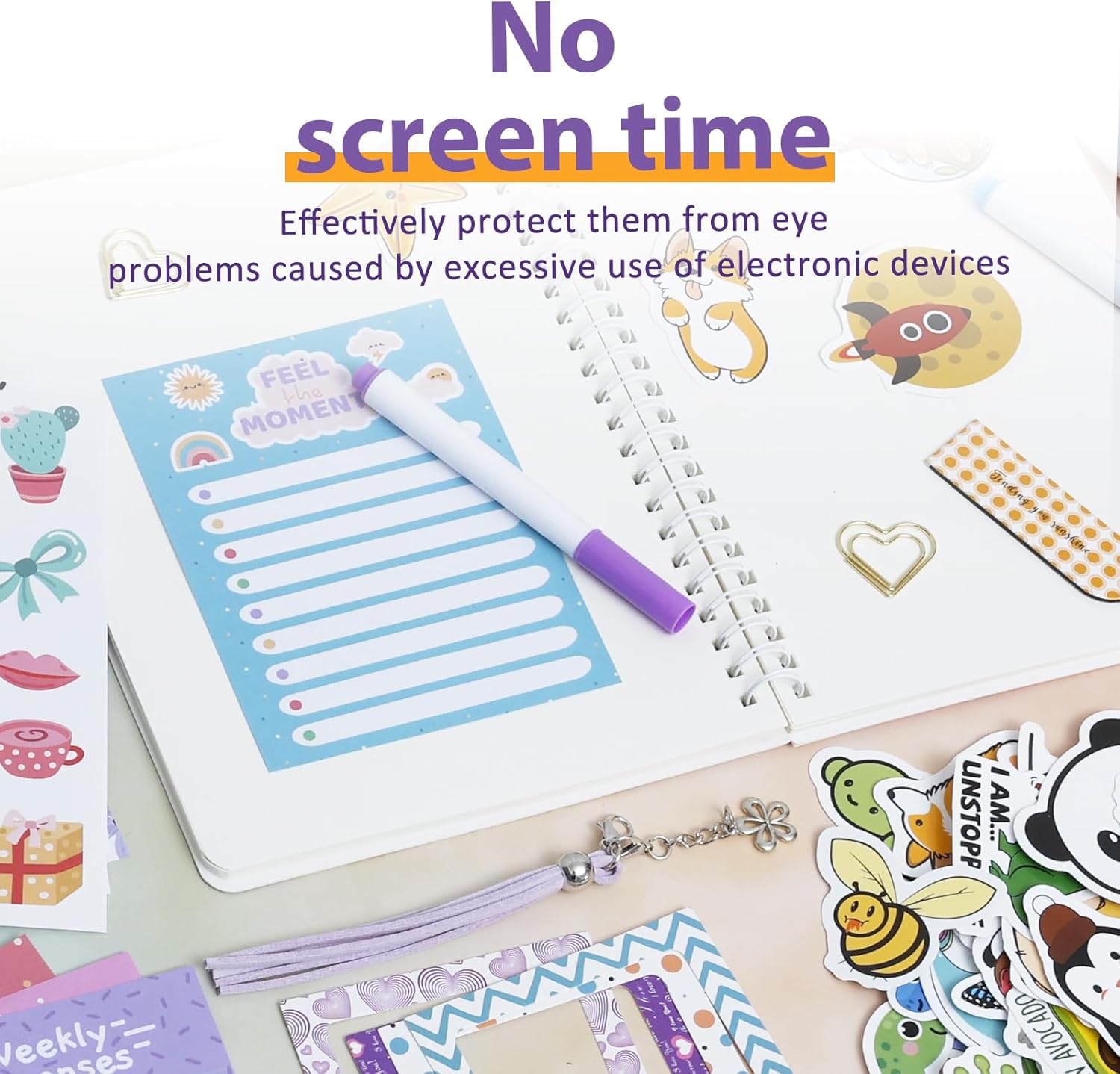 Smart Functional Design: bastone adesivo per un facile fai da te, adesivo per cornice, per organizzare ricordi e utilizzare penna/album di ritagli. Adatto per riviste quotidiane, protocolli di viaggio o progetti artistici Regalo ideale: tutti gli articoli ordinatamente imballati in una bella scatola, ideali per compleanni, vacanze o ragazze che amano il journaling, la pianificazione o progetti artistici Cosa ottieni: il set include 1 taccuino (70 fogli per notebook), 49 adesivi, 6 fogli adesivi, 5 note plannotate, 8 telai piani, 5 album di materiali, 2 nastri glitterati, 1 penna a sei colori, 4 clip di carta speciali, 4 segnalibri pieghevoli magnetici, 1 mazzetto di penna, 1 matita luminosa e 3 libri di bastoncini colorati Materiale premium: il notebook prende pagine spesse e lisce per una scrittura confortevole. La penna a 6 colori con punte sottili può scrivere senza intoppi e liberamente. Diversi colori di carta sono facili da strappare le pagine e ideale per collage fatti a mano Creatività senza schermo: incoraggia i bambini a spogliarsi dai dispositivi e a partecipare all'arte fai da te, promuovere l'immaginazione e proteggere gli occhi dallo stress dello schermo, ideale per ragazze di 8-14 anni