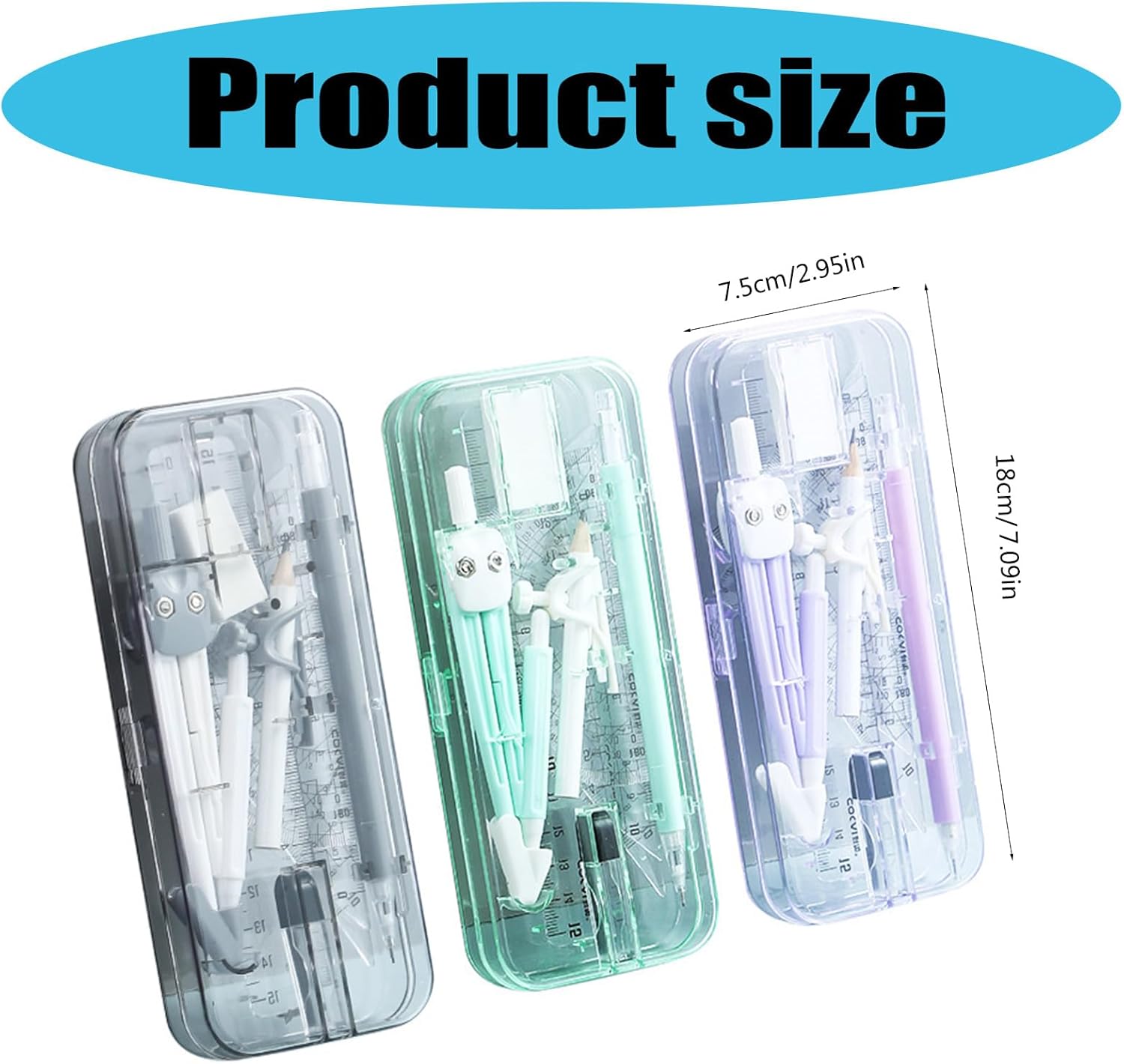 Il set include bussole, righelli, goniometri e custodia, con bordi arrotondati per una portabilità organizzata Ogni strumento vanta marcature di misurazione incise per la precisione, mentre la custodia mantiene l'essenziale al sicuro durante il trasporto o lo stoccaggio Perfetto per compiti in classe, progetti architettonici o esigenze di redazione, garantendo precisione in ambiente educativo e professionale per studenti, artisti, ingegneri e designer che cercano uno strumento multifunzionale per disegni tecnici, progetti scolastici o schizzi creativi Questo set di 9 compassi geometrici offre un disegno preciso con strumento, combinando la durata per un uso senza sforzo in aule o studi professionali