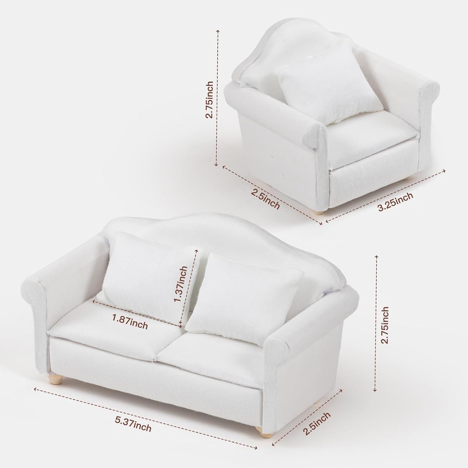 I dettagli cuciti a mano e i materiali amichevoli garantiscono una lunga durata, il design classico si fonde perfettamente con vari decori per case delle bambole Design per 1/12 case delle bambole, questo set di divani eleva accessori per la casa in miniatura con il suo uso multiuso Ideale per collezionisti in miniatura, appassionati di artigianato e genitori alla ricerca di giocattoli educativi che scatenano la creatività nei bambini Migliora le case delle bambole realistiche, crea scene di modelli in miniatura o display da tavolo per fotografie e giochi interattivi Utilizza un tessuto selezionato, questo set di divani in miniatura in scala 1/12 presenta un divano bianco con cuscini rimovibili, offrendo un'aggiunta realistica alla scena del soggiorno delle case delle bambole