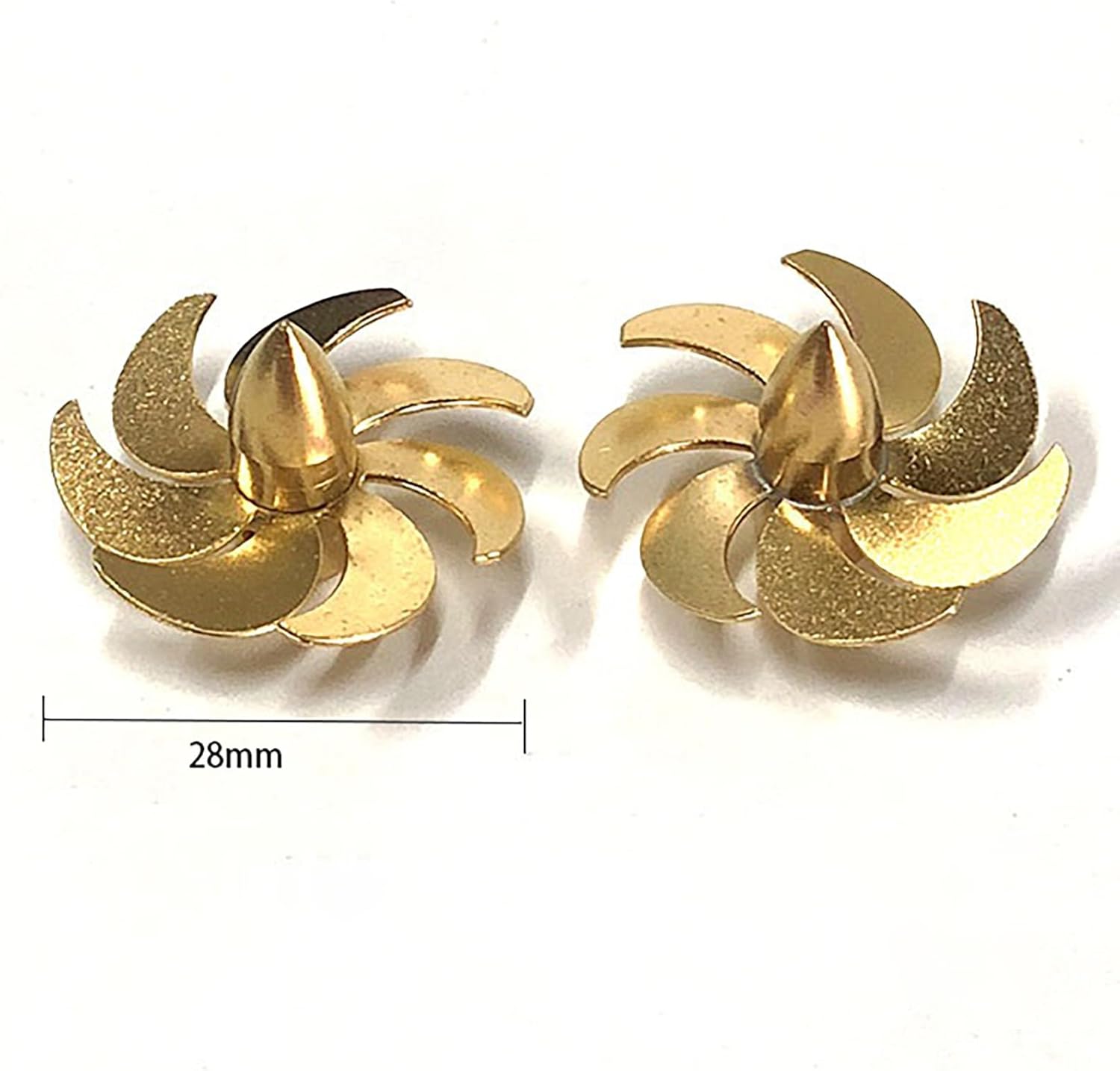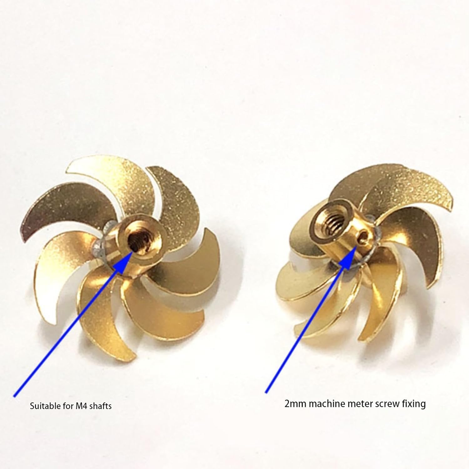 Set di eliche in ottone di alta qualità for modelli di navi RC, che offrono durata e maggiore realismo. La coppia di eliche a 7 pale (CW e CCW) garantisce una spinta bilanciata e un funzionamento regolare. La struttura saldata in stagno garantisce prestazioni e stabilità durature. Compatibilità con albero M4 con fissaggio sicuro tramite viti di fissaggio da 2 mm. Ideale for migliorare la propulsione, l'autenticità e la manovrabilità dei modelli di navi.