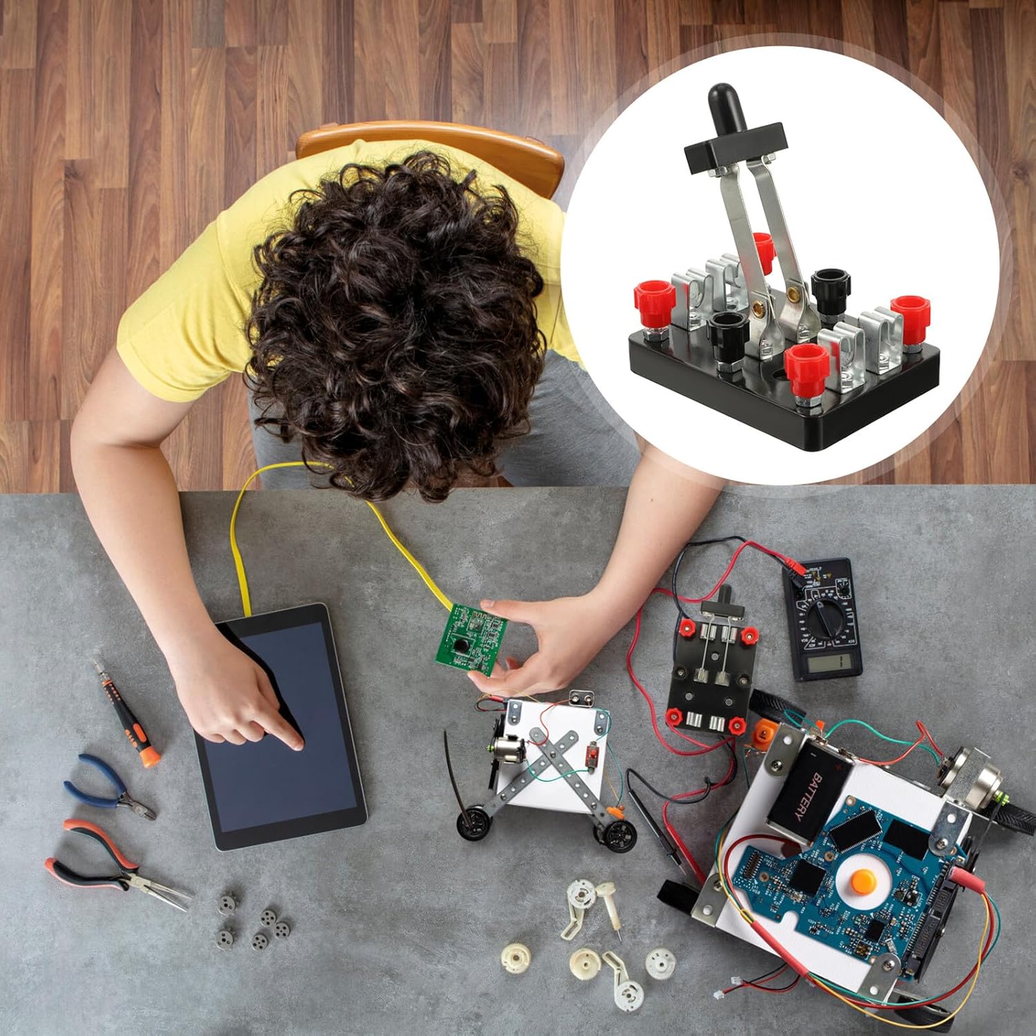Attrezzature per l'istruzione scolastica: portatili e leggere, facili da trasportare, a doppio lancio Doppie lame: e, prestazioni, strumento didattico Doppio coltello: realizzato con materiali ad alta resistenza, buona tenacità, non facile da rompere, attrezzatura da laboratorio di fisica Attrezzatura per esperimenti di circuito: resistente alla corrosione, non facile da arrugginire, strumento scientifico Doppio interruttore bipolare: adatto per insegnare, migliorare le capacità manuali e l'interesse di apprendimento degli studenti, attrezzature da laboratorio elettrico