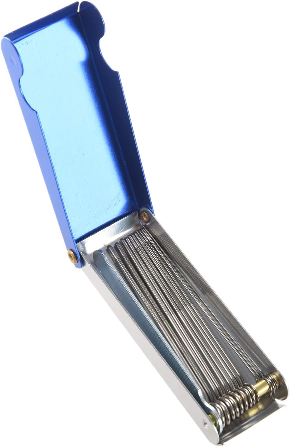 Universale per strumenti a corda, chitarra, mandolino, basso, ukulele e banjo, ecc. Realizzato in metallo di alta qualità, compatto e resistente. 1 piatta per lucidare il dado e il ponte. 13 rotonde di diverse dimensioni per lucidare le scanalature delle corde e rendere molto liscia la scanalatura delle corde. Di piccole dimensioni, da usare e da trasportare.