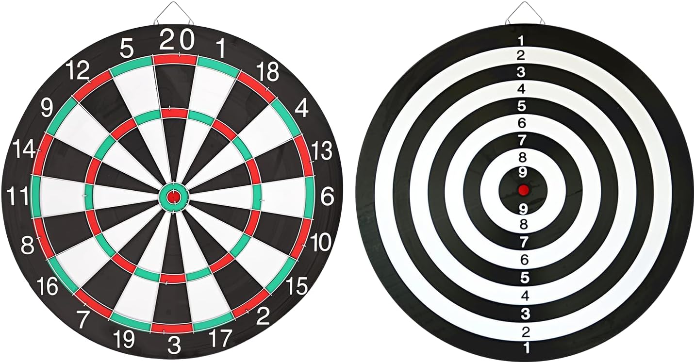 🛡️ design: il filo di acciaio zincato migliora la durata e la longevità del bersaglio, garantendo che resista a un uso frequente Versatili: adatto per tornei, pub o casa, il design portatile lo rende facile da installare a casa, in ufficio o nei club. 🛡️ Esperienza professionale: dotata di 6 freccette professionali con punta in acciaio da 18 g, che forniscono stabilità e una vera sensazione per il tuo stile di lancio Perfetto per molteplici scenari: ideale per riunioni di famiglia, feste di amici e riunioni aziendali, questo bersaglio offre una comoda conservazione e un ingombro ridotto 🛡️ versatilità laterale: goditi sia i giochi tradizionali che i giochi di freccette bullseye con un bersaglio standard su un lato e una lavagna alternata in bianco e nero sul