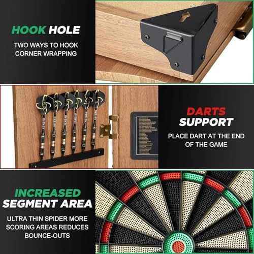 Set completo di freccette incluso: la confezione include 12 freccette con punta morbida e 88 punte sostituibili, per iniziare a giocare immediatamente. Le punte morbide garantiscono sicurezza, rendendolo perfetto per le sale giochi in famiglia, dove giocare a freccette senza preoccupazioni. Divertimento multigiocatore: progettato per un massimo di 16 giocatori, questo bersaglio offre 27 diverse modalità di gioco e 243 modi unici di giocare. Goditi un punteggio automatico accurato che elimina la necessità del conteggio manuale, permettendoti di immergerti completamente nel gioco. Display LED intuitivo: questo bersaglio per freccette per soli adulti è dotato di un tabellone elettronico di facile lettura con un luminoso display LED, che mostra chiaramente punteggi e statistiche di gioco. La voce e l'audio integrati arricchiscono la tua esperienza di gioco, rendendo il monitoraggio dei punteggi semplice e intuitivo. Esperienza di gioco coinvolgente: per tornei entusiasmanti, questo bersaglio elettrico richiede l'installazione di batterie (non incluse). È ottimo per migliorare la coordinazione occhio-mano, il lavoro di squadra, il calcolo mentale e la concentrazione, rendendolo adatto a giocatori di tutte le età. Elegante bersaglio elettronico con mobiletto: questo bersaglio non ha solo uno scopo funzionale, ma arricchisce anche l'arredamento della tua stanza. Con diverse opzioni di stile e colore disponibili, puoi scegliere un design che si adatti all'estetica della tua casa o della tua sala giochi.