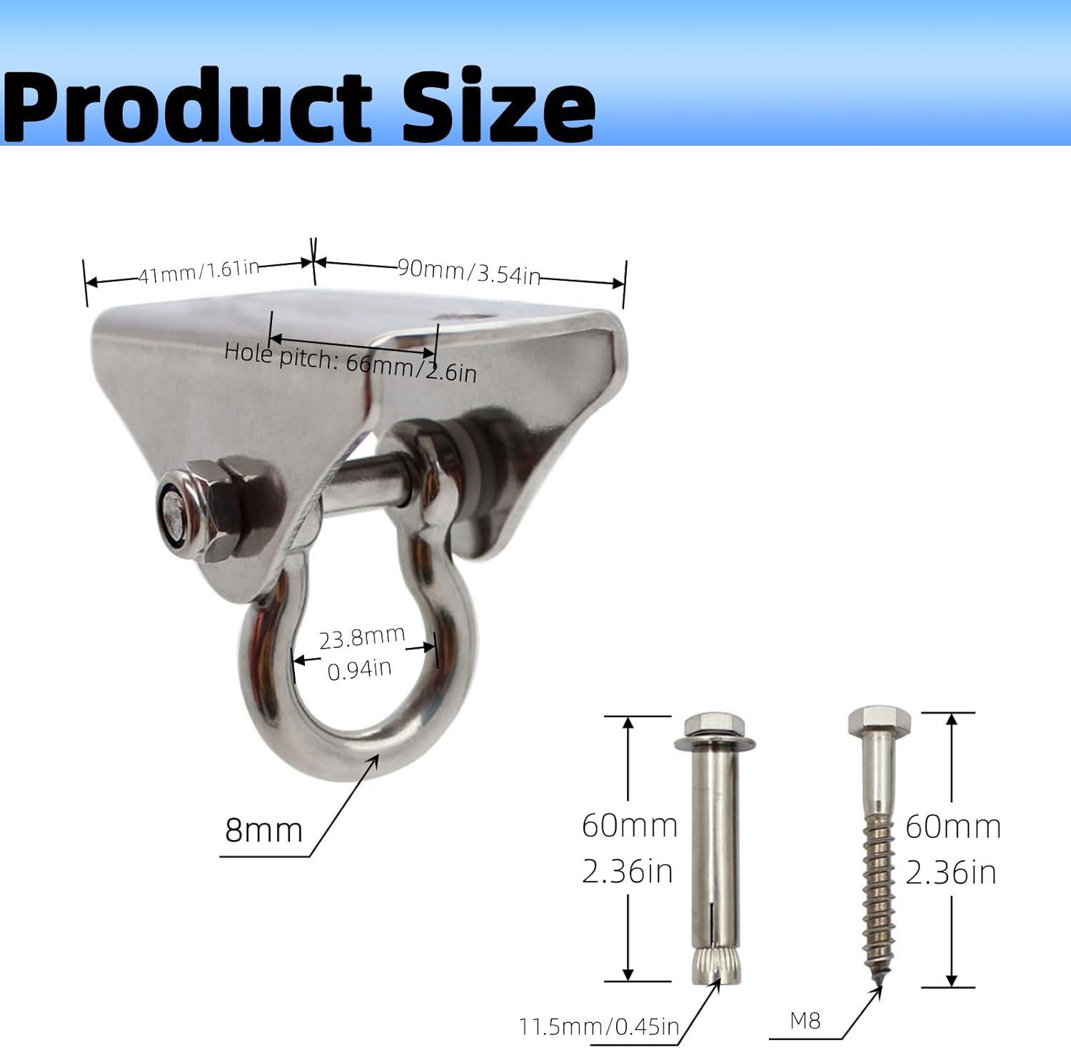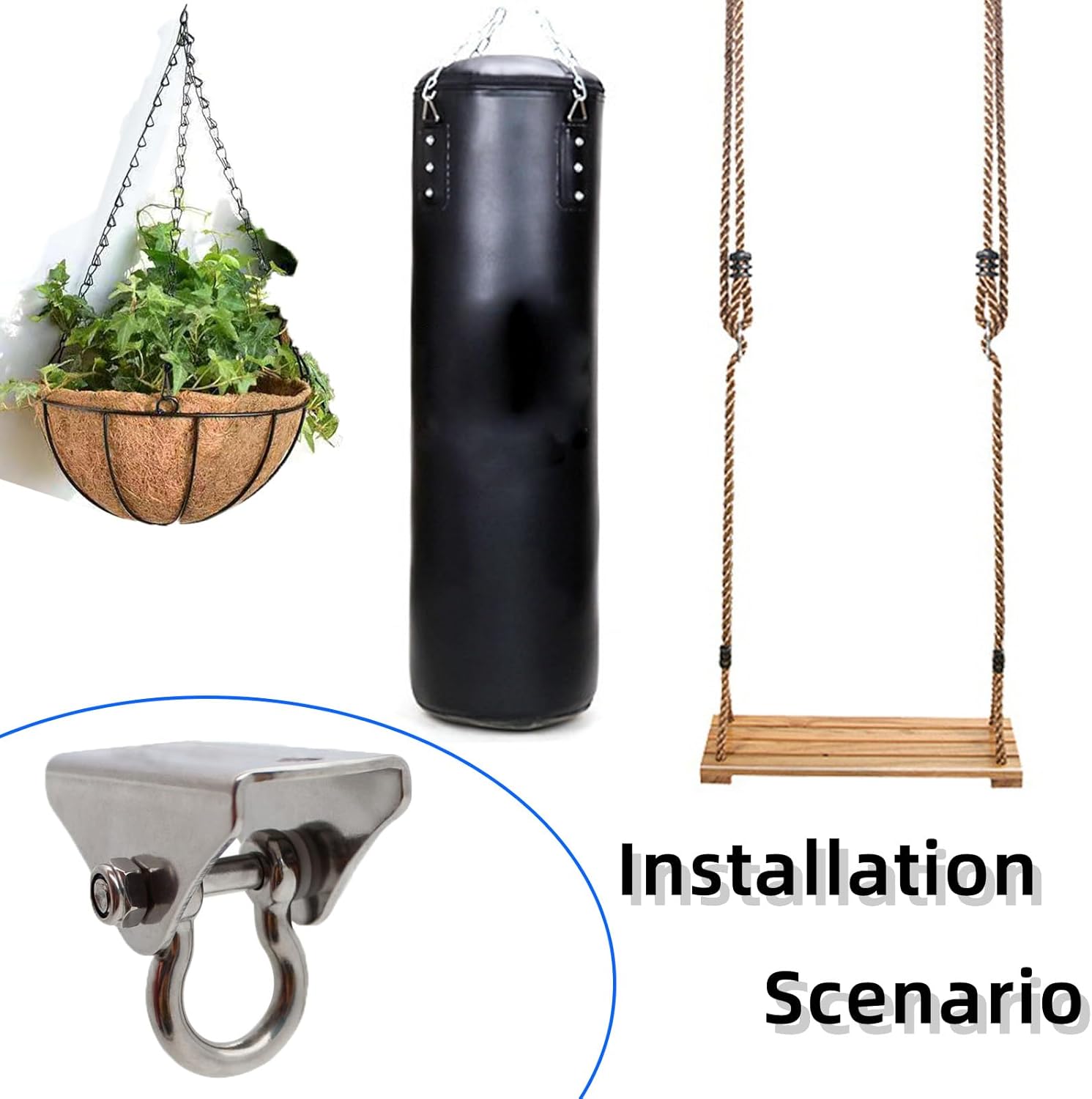 Acciaio inossidabile 304 di alta qualità: realizzate in acciaio inossidabile 304 di alta qualità, queste staffe per altalena per carichi pesanti offrono un'eccellente resistenza alla ruggine e alla corrosione, garantendo una lunga durata Costruzione robusta: progettata per resistere fino a 450 kg, la gruccia per altalena per carichi pesanti è perfetta per montare in modo sicuro amache, altalene e persino attrezzature per il fitness pesanti Opzioni di montaggio versatili: viene fornito con due tipi di viti, adatte sia per pareti in legno che in cemento, fornendo una soluzione versatile per varie esigenze di installazione Rotazione fluida di 160 gradi: queste borse pesanti i supporti sono dotati di rotazione fluida e grandangolare, consentendo un posizionamento flessibile e un utilizzo confortevole in qualsiasi ambiente Multiuso: ideali per appendere cesti di fiori, sedie amaca, altalene e altro, questi ganci ad occhiello non sono solo robusti ma anche incredibilmente versatili, rendendoli un'ottima aggiunta al tuo spazio esterno o interno