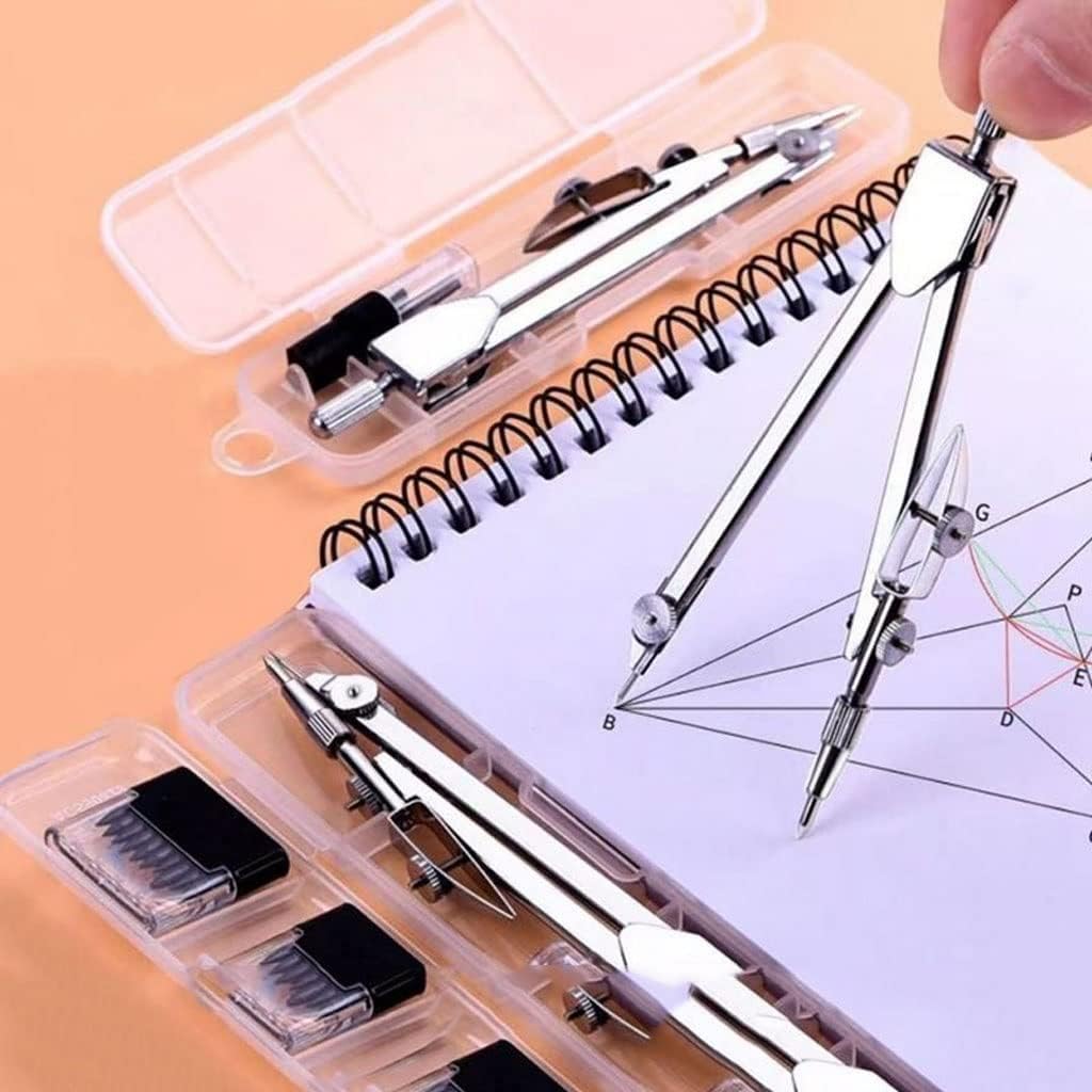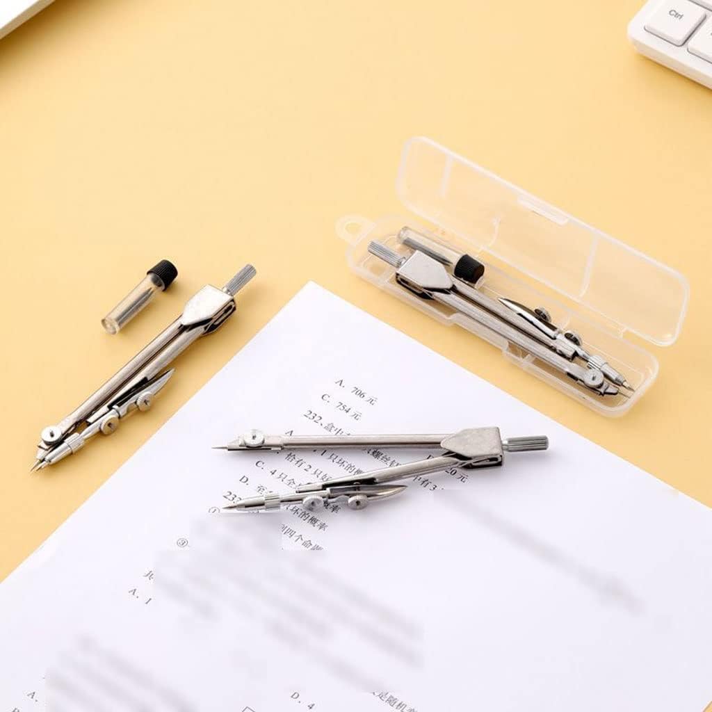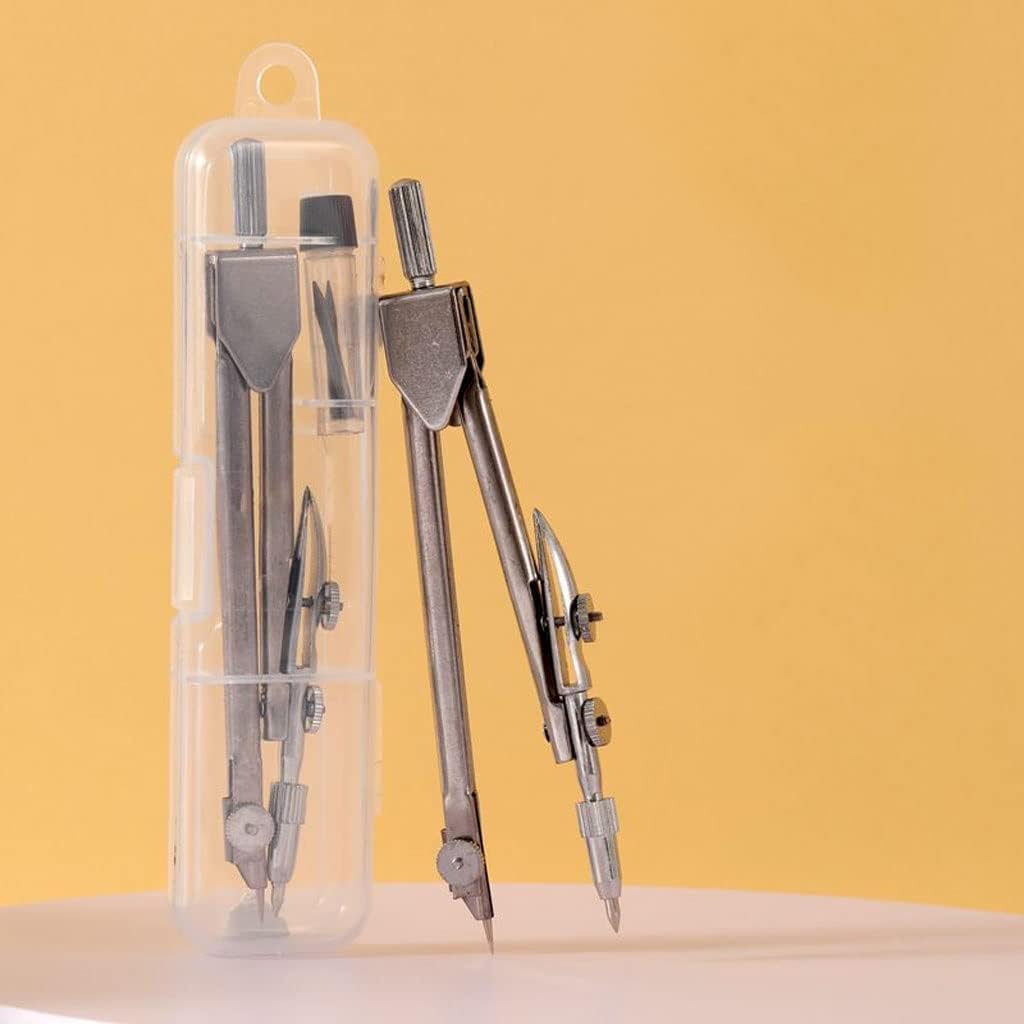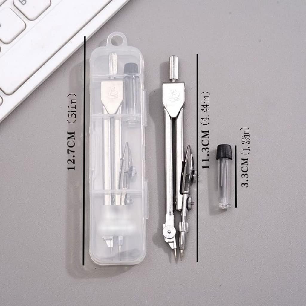 Compass in acciaio inossidabile, disegno circolare accurato, stile nuovo. Dimensione: 12,7 cm (5 pollici)*11,3 cm (4,44 pollici)*3,3 cm (1.29 pollici) Per lezioni di geometria, redazione, disegni architettonici, progettazione ingegneristica, compresa la progettazione e la costruzione meccaniche. Alta precisione, facile da usare e abbastanza durevole da soddisfare le esigenze della vita quotidiana. Perfetto per l'uso a scuola, la lavorazione del legno o a casa. Svolge un ruolo importante in matematica, ingegneria, lavorazione del legno, arte, pittura, ecc. È perfetto per insegnanti, architetti, ingegneri, matematici, artisti o designer.