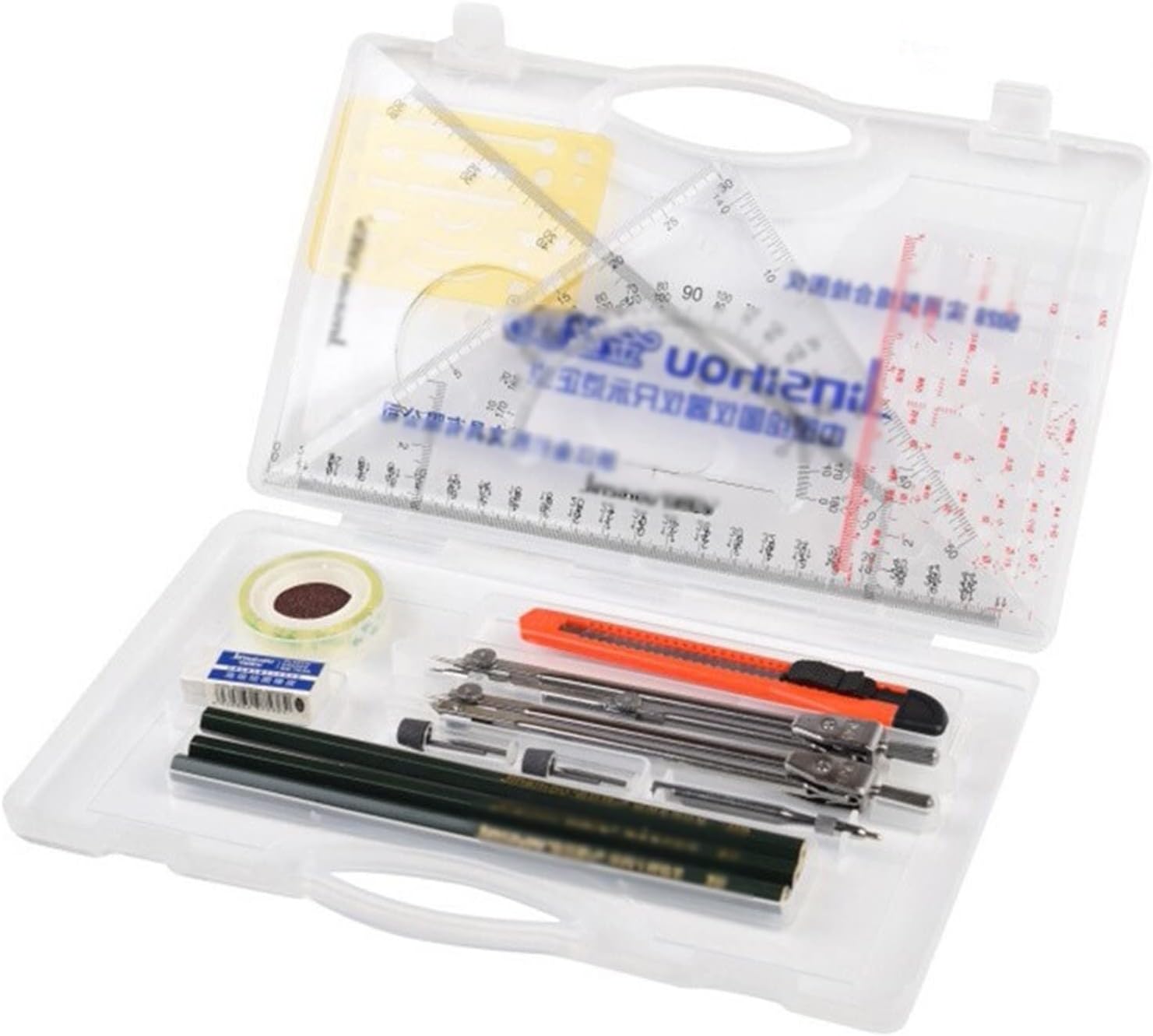 Custodia a bussola resistente con un bel vassoio di plastica per proteggere e mantenere gli strumenti in un luogo organizzato. La bussola geometrica include bussola, set di padelle quadrati, penna, affiliazione, gomma, matita meccanica, penna da disegno e altro ancora. Dimensione del caso: 27,5*16,5 cm, tutto è pieno e facile da trasportare. 2 Compasses professionali. Con una bussola ad azione rapida, viene fornito con un adattatore universale che corrisponde al disegno a matita per cerchi più grandi. Compass a conchiglia con testa di tracciamento del abbraccio regolabile. Questo attira i cerchi bene. Ed è progettato ergonomicamente per mantenerlo comodo comodo. Svolge un ruolo importante in matematica, ingegneria, lavorazione del legno, arte, pittura, ecc. È perfetto per insegnanti, architetti, ingegneri, matematici, artisti o designer.