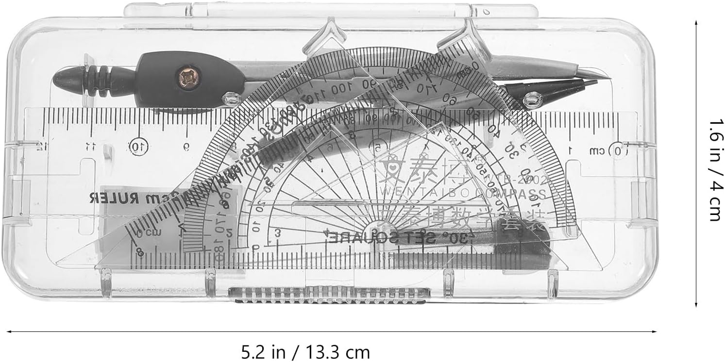 - Dimensioni: ca. 13,3x5,7x2 centimetri. - Il set di matematica progettato da matematici esperti con tutti gli elementi essenziali per insegnanti e studenti di tutti i livelli. - Le bussole metalliche durevoli non si piegano né si flettono durante l'uso. - La testa della bussola dal design ergonomico è comoda da tenere. - Il kit di geometria perfetto per gli studenti più avanzati! Applicabile a tutti i livelli: ottimo per l'uso a scuola o a casa. Il miglior strumento per disegnare cerchi per studenti, artisti, matematici, falegnami. È un'ottima scelta per le lezioni di matematica.