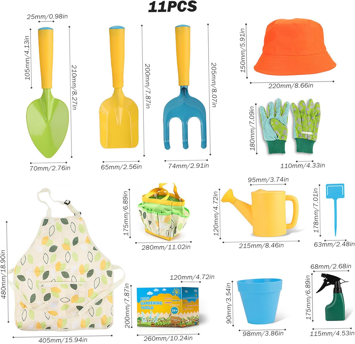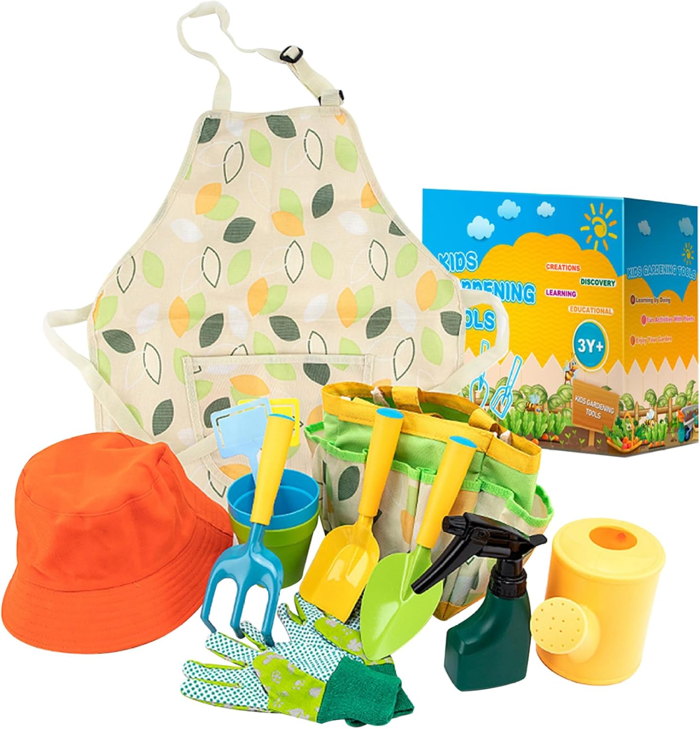 Design per bambini: ogni strumento è progettato pensando alla sicurezza e alla facilità d'uso..I colori vibranti, i bordi arrotondati e le maniglie di dimensioni adeguate rendono questi strumenti di giardinaggio per bambini perfetti per i bambini piccoli, permettendo loro di partecipare attivamente alle attività di giardinaggio. Adorabile grembiule e cappello: il grembiule e il cappello inclusi completano l'ensemble di giardinaggio, facendo sentire il tuo piccolo come un vero giardiniere..I carini disegni aggiungono un ulteriore livello di eccitazione alle attività all'aperto. Educativo e divertente: instillare l'amore per il giardinaggio e la all'inizio..Gli strumenti di giardinaggio per bambini offrono un'esperienza interattiva ed educativa per i bambini, insegnando loro le piante, la responsabilità e la gioia di guardare i loro sforzi che fioriscono in bellissimi fiori o erbe. e materiali sicuri: realizzato con materiali non tossici, questo set di giardinaggio per bambini è sicuro per i bambini..La costruzione robusta garantisce la durata, rendendo questi strumenti ideali per il gioco esterno ed esplorazione. Set completo di 11 pezzi: il set di giardinaggio per bambini include strumenti essenziali per piccole mani, tra cui una pala, un rastrello, una pentola per irrigazione, spruzzatore di piante, guanti, grembiule, cappello, vaso di fiori, tappo di terra e una borsa..Tutto ciò di cui il tuo piccolo giardiniere ha bisogno per un'esperienza divertente ed educativa.