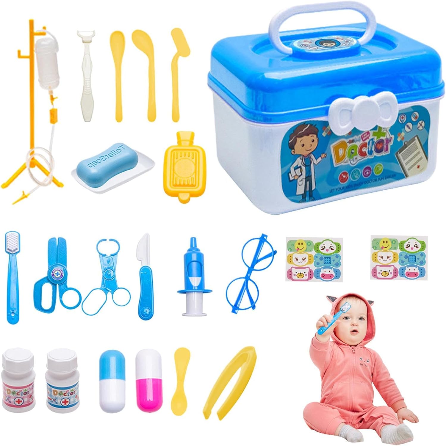 【Motricità fine】 Il set di giocattoli da medico per bambini aiuta i genitori e li a stabilire connessioni, sviluppare abilità motorie e capacità pratica e aumentare l'interazione genitore-figlio 【Attrezzature per l'apprendimento】 Il nostro set di giocattoli da medico consente ai medici di comprendere l'attrezzatura del medico, aiutare i tuoi a ridurre l'ansia per i medici, coltivare la qualità della manutenzione e apprendere le responsabilità dei medici 【Materiale durevole: il set di giocattoli per non contiene oggetti appuntiti, è realizzato in materiale ABS di alta qualità, sano ed ecologico, sicuro e affidabile. 【Facile da usare】 Questo set di giocattoli da medico è facile da usare e da pulire, il set di 23 pezzi consente ai tuoi essere creativi e fantasiosi, i tappi per le orecchie in silicone morbido sono adatti per le orecchie dei 【Ottimo regalo】 Il nostro set di giocattoli da medico per può offrire un piacere infinito ai , un regalo di compleanno, Natale o Pasqua perfetto per tuo figlio o tua figlia, quale bel regalo, i tuoi adoreranno