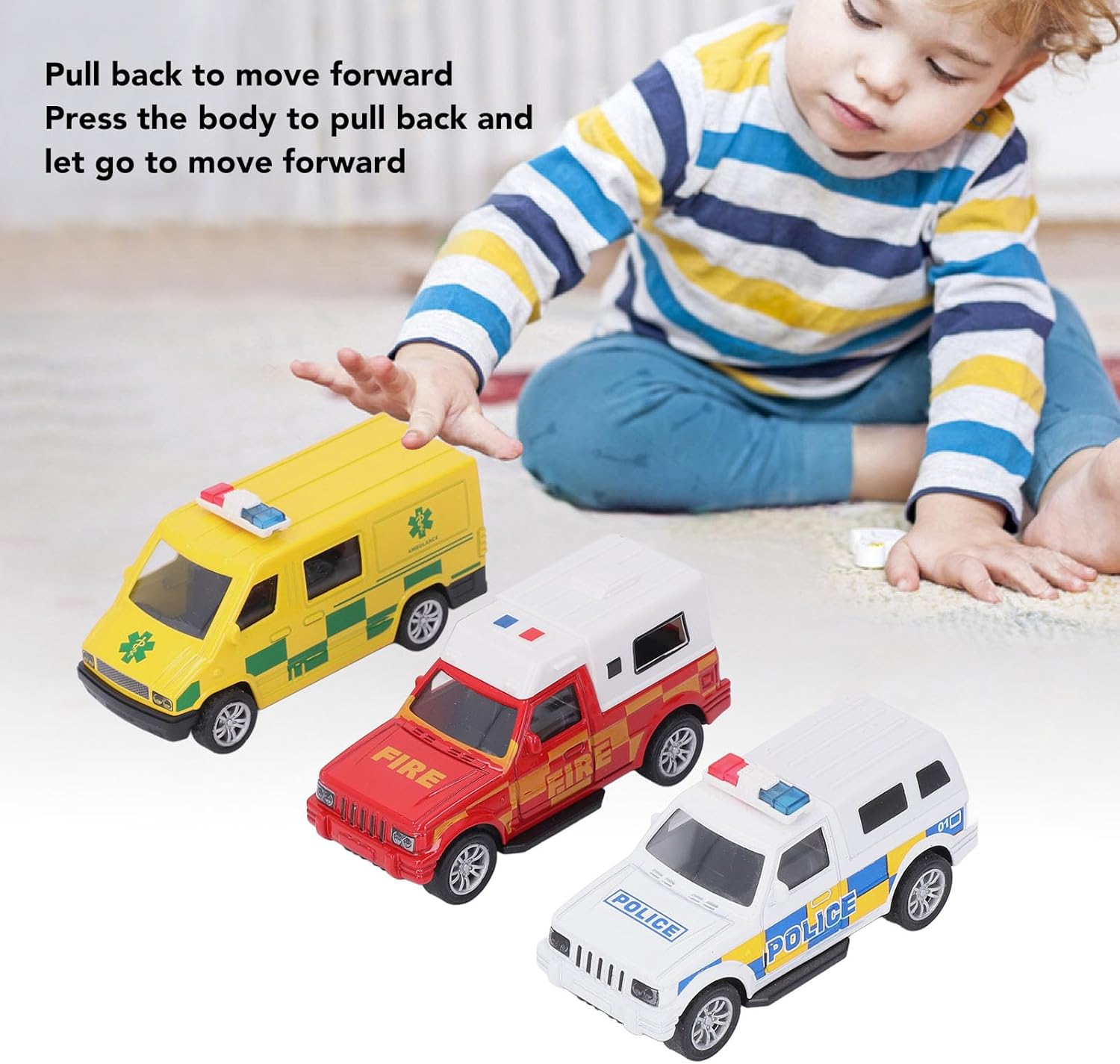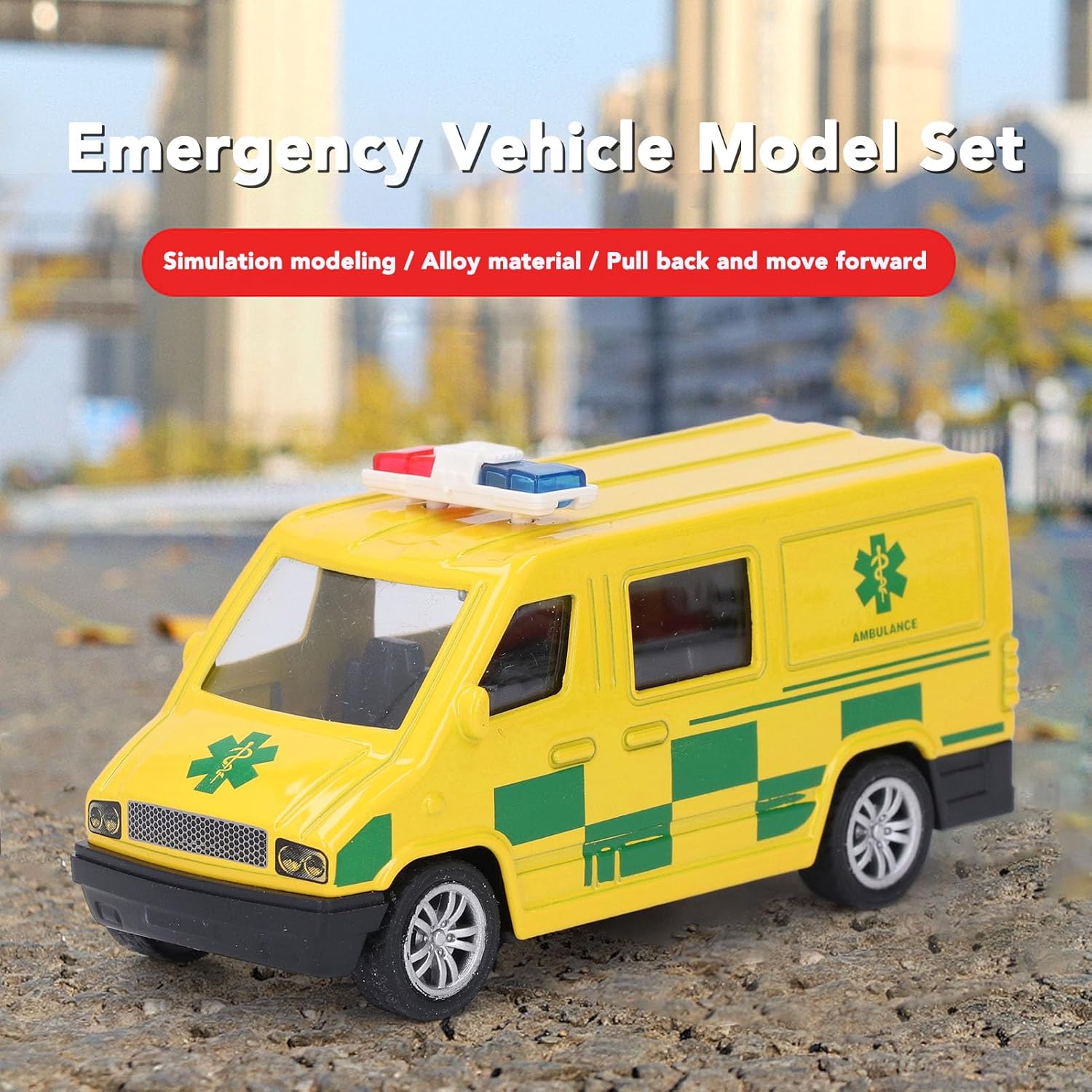 [SIMULAZIONE SQUISITA] Scopri la bellezza di modelli realistici e di ambulanze con proporzioni precise e dettagli precisi. [MATERIALE PREMIUM] Realizzato in materiale in lega resistente e durevole, con dettagli raffinati e un alto valore di raccolta [AZIONE PACKBACK] Le ruote possono ruotare con l'azione di contraccolpo per aumentare la giocabilità e il divertimento. [DESIGN UNICO] Set di giocattoli per veicoli di emergenza dal design accattivante, popolare tra i bambini per ore di gioco fantasioso. [GAMEPLAY EDUCATIVO] Scopri e apprezza il design unico dei veicoli per un'esperienza di gioco coinvolgente ed educativa.