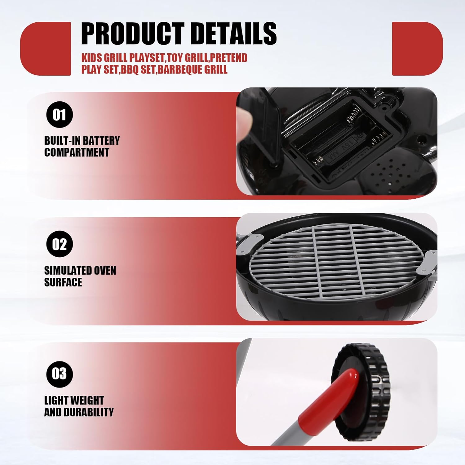 Suonare il campanello della cena e lasciare che i bambini gridino "vieni a prenderlo" con questo set da gioco per bambini BBQ giocattolo! Con questo set da gioco per barbecue, il tuo piccolo sarà il re della griglia in pochissimo tempo. Completo di utensili, accessori i tuoi bambini possono avere un'idea del dinamismo di un vero barbecue con questo meraviglioso set da gioco. Un set finto come questo incoraggia l'immaginazione e il gioco di ruolo ed è un ottimo modo per intrattenere un intero di bambini. Il set include una serie di accessori come , utensili da cucina e cibi da gioco. Tutto ciò di cui il tuo piccolo chef ha bisogno per iniziare! Con i colori vivaci, è un modo perfetto per i bambini di rimanere attivi e impegnati. Il set da cucina è adatto per bambini dai 3 in su ed è un modo perfetto per coinvolgere i bambini durante i pasti. Dispone di una griglia con coperchio rimovibile, la griglia ospita il "" per un effetto di cottura realistico.