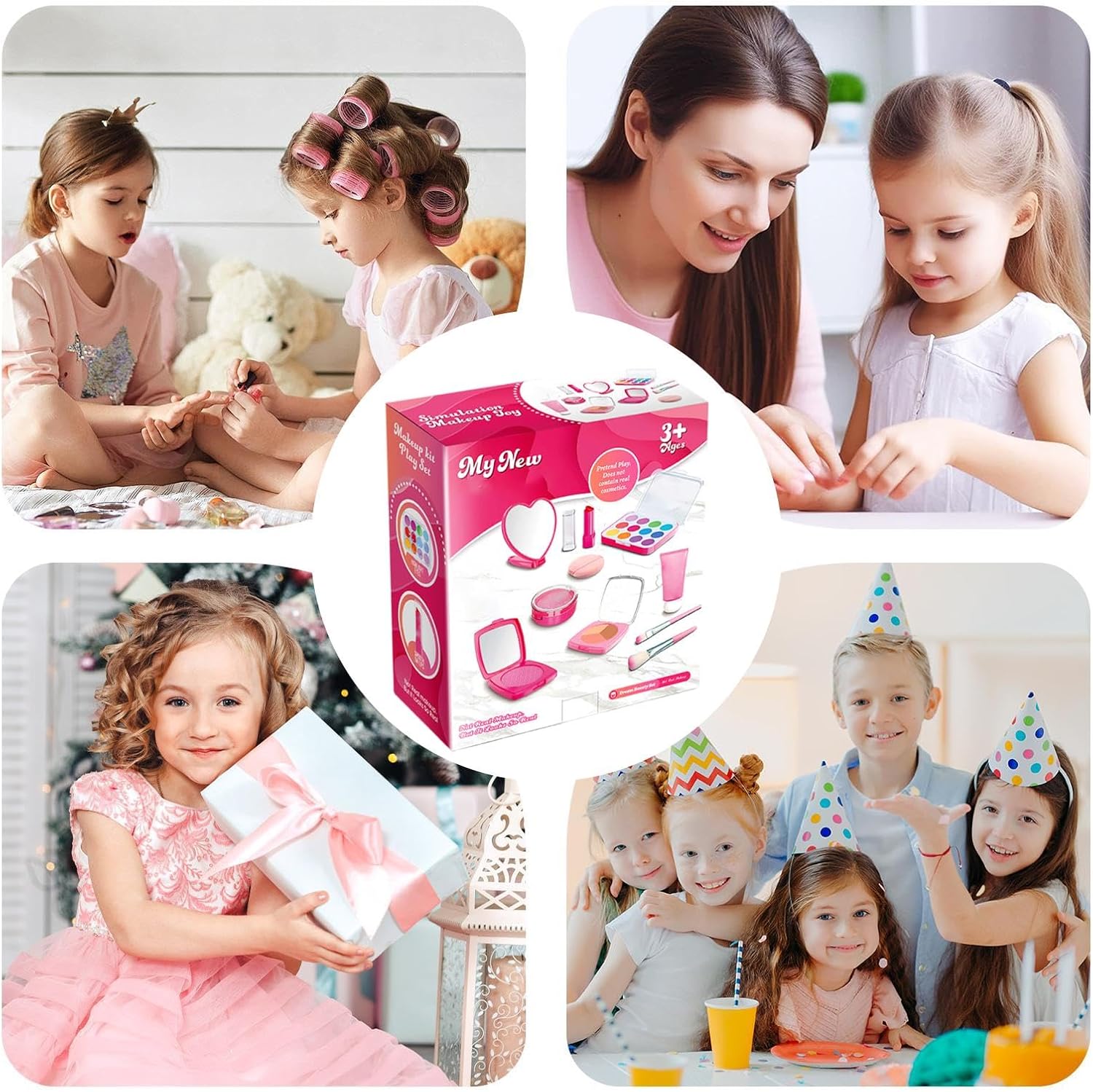 Bellissimo regalo: questo regalo unico porterà gioia, incoraggerà il gioco fantasioso e trasmetterà buoni auspici per lo sviluppo futuro. È un regalo adorabile per amici e parenti, perfetto per mostrare quanto ci tieni. Realizzato in modo squisito: accendi la tua creatività con vivaci strumenti per il trucco come rossetto, tavolozza di ombretti e pennello per fard. L'attenta lavorazione consente ai bambini di promuovere la propria estetica attraverso divertenti esperienze di gioco di ruolo. Sicuro da usare: i genitori possono lasciare che i propri bambini giochino e sperimentino il trucco senza timore di ingerirlo accidentalmente, proteggendo la loro salute e sicurezza. Il nostro giocattolo anti-sbavature appositamente progettato garantisce un utilizzo sicuro soddisfacendo la curiosità dei bambini e promuovendo la creatività. Facile da usare: i nostri set di trucchi per ragazze incoraggiano anche l'immaginazione e le abilità pratiche dei bambini. I bambini possono giocare a giochi interattivi con la famiglia o gli amici per migliorare le loro abilità sociali. Il set contiene una varietà di strumenti e decorazioni per il trucco che consentono ai bambini di creare look diversi e garantiscono una facile applicazione. Multiuso: questo set di trucchi per ragazze include un manuale di istruzioni con consigli di bellezza e consigli per la cura della pelle. È uno strumento eccellente per migliorare le capacità di problem solving e sviluppare conoscenze estetiche di base. I bambini imparano a prendersi cura di sé e degli altri divertendosi