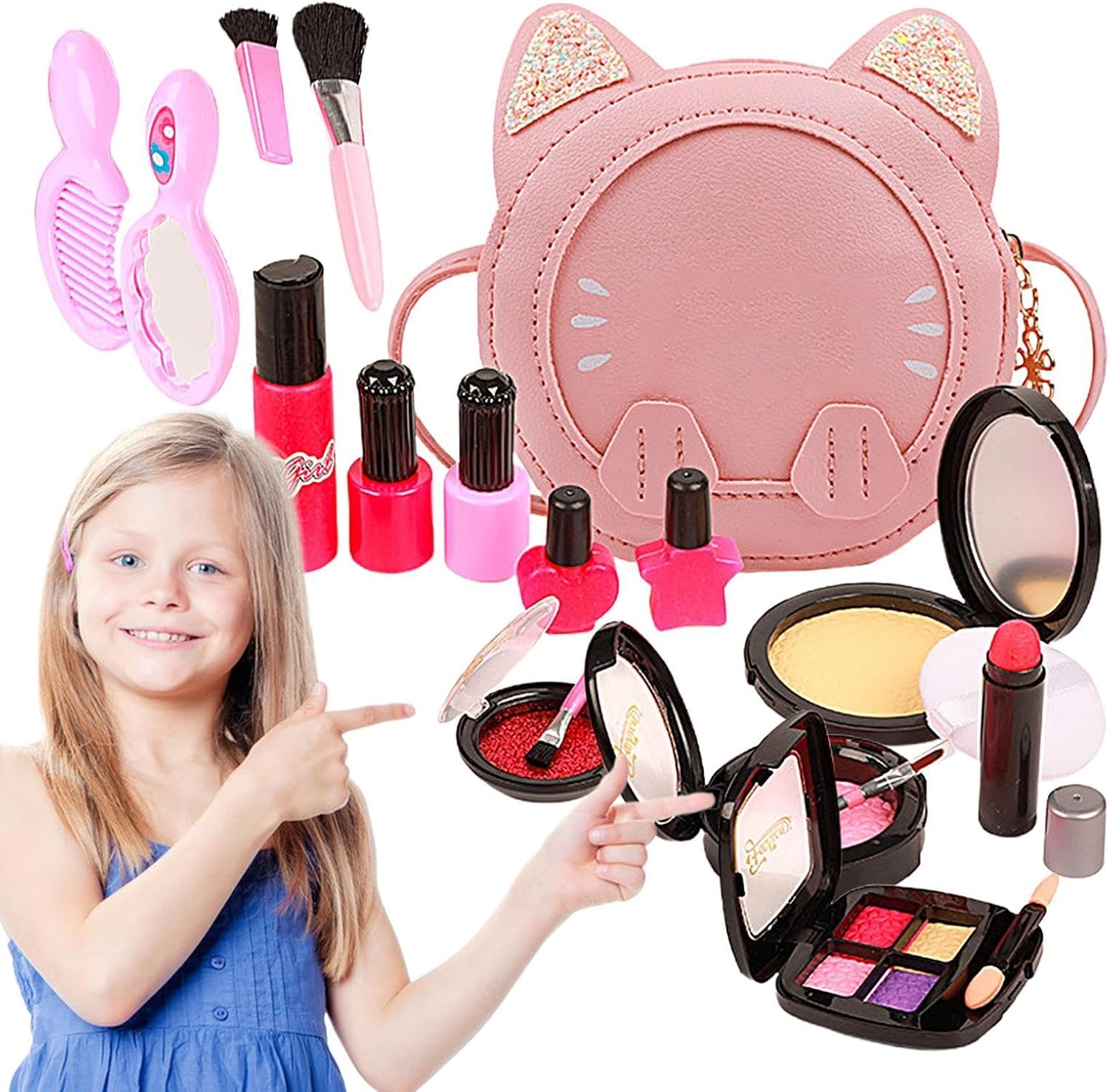 Ampia gamma di accessori: incoraggia la creatività di tuo figlio con il set di trucchi da gioco ideale, tra cui rossetto, smalto per unghie, ombretto, pennello per il trucco, pettine e altri accessori. Con tutto ciò di cui hanno bisogno, non ci sono limiti alle loro possibilità creative. Ampiamente usato: questo set di trucchi da gioco è un modo divertente e interattivo per incoraggiare la creatività dei bambini. Grazie alla sua vasta gamma di utilizzo, il set promuove le capacità motorie, incoraggia la pazienza e sviluppa abilità pratiche. Sicuro da usare: il nostro set di trucchi da gioco è realizzato in robusto materiale ABS, è estremamente resistente e non si deforma facilmente. I bordi morbidi e arrotondati garantiscono la sicurezza del tuo bambino mentre gioca. Comodo da indossare: il nostro set di trucchi da gioco è la scelta ideale per le ragazze dai 3 anni in su che amano stare all'aria aperta. Con una custodia per tutti gli accessori e una cinghia per un facile trasporto, offre facilità di trasporto e praticità. Incoraggia le attività sociali: il nostro set di trucchi da gioco offre ai bambini un modo divertente di trascorrere del tempo con la famiglia e gli amici, promuovendo la connessione e rafforzando l'amicizia. Serve come strumento per attività di legame di qualità che uniscono tutti e creano ricordi preziosi