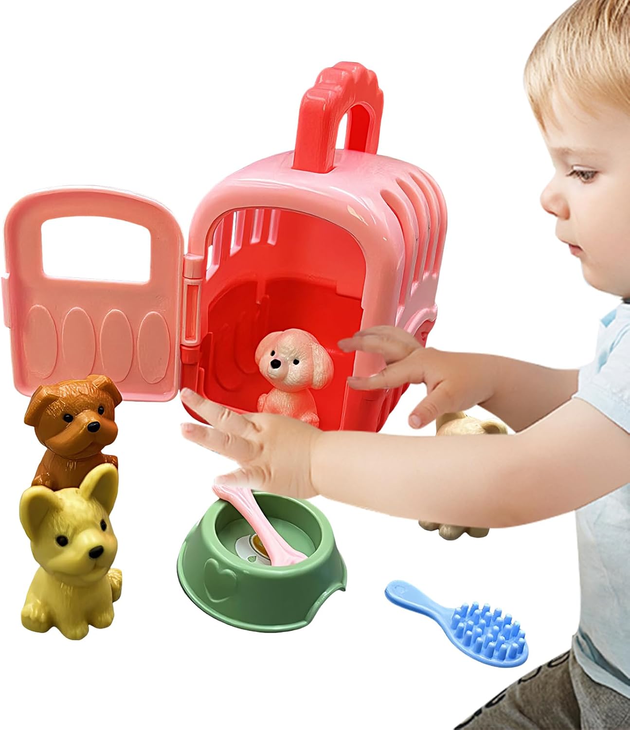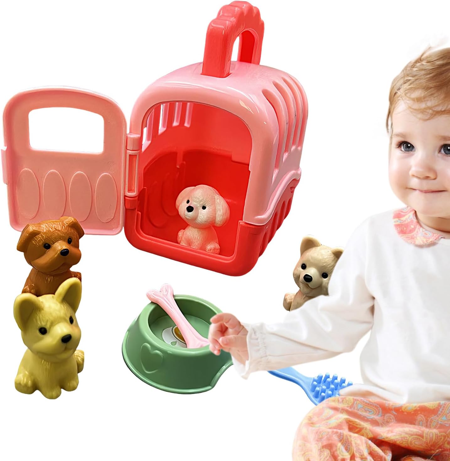 Kit utile: fornisce una selezione completa di strumenti e il set da gioco Pet Cage include 1 gabbia, 4 giocattoli, una ciotola, ossa e spazzole, consentendo ai bambini di nutrire e prendersi cura completamente dei loro amati cani. Set pratico: affascina il tuo bambino con il set da gioco Pet Care Cage, realizzato in materiale PP rigido e dimensioni 10 x 8,5 x 6 cm. Il design robusto lo rende perfetto per le mani dei più piccoli e offre un modo sicuro ed emozionante per divertirsi senza mai rompere un giocattolo. Migliora il pensiero creativo: questo set da gioco in gabbia per animali domestici può stimolare l'immaginazione dei bambini e fungere da eccellente risorsa per lo sviluppo del cervello e il miglioramento della creatività. Emozioni adatte ai viaggi: con un design leggero e compatto, questo set da gioco con gabbia per la cura degli animali domestici è un compagno di viaggio perfetto per i bambini, offrendo intrattenimento sempre e ovunque. Questo set da gioco viene fornito con divertenti giocattoli e accessori da viaggio ed è moralmente divertente. Ottimo regalo: sblocca la creatività e divertiti di più con il set da gioco Pet Care Cage: un regalo eccellente per ragazze dai 3 anni in su. Perfetto per feste a tema, vacanze o come gioco a premi, incoraggia le giovani menti e stimola il gioco fantasioso come nessun altro.