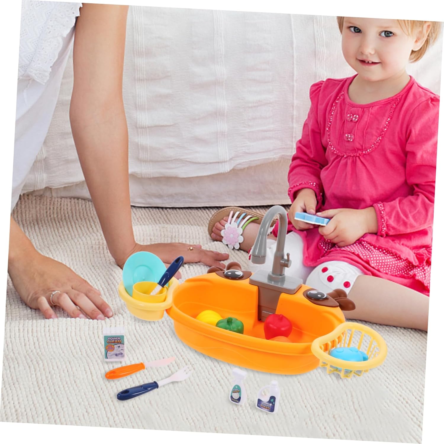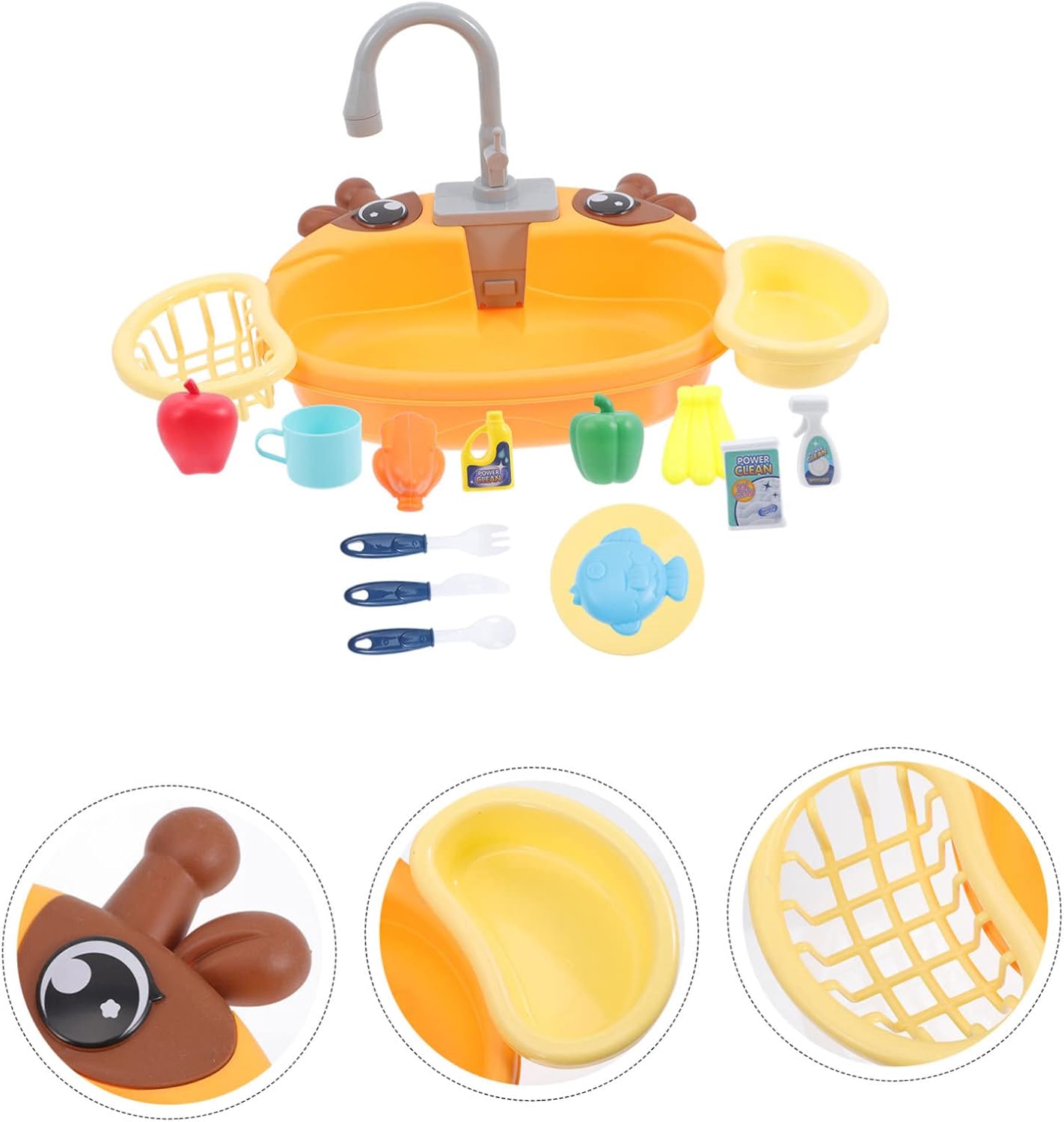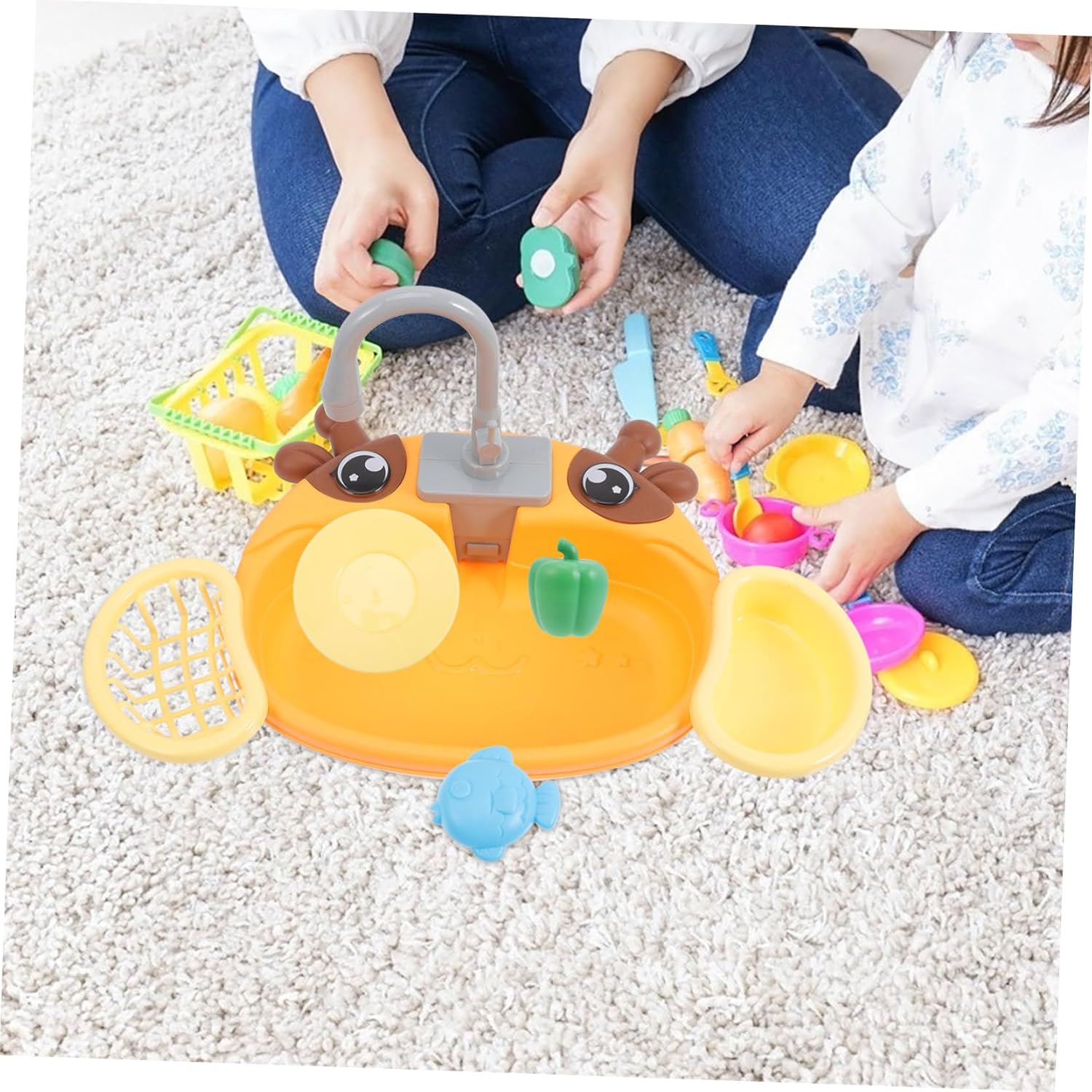 Giocattolo per lavandino per giochi di ruolo: il giocattolo per lavandino è realizzato in plastica sicura e non danneggerà la salute dei bambini. non devi preoccuparti di loro. Lavello per giochi d'acqua - esclusivo sistema di circolazione dell'acqua, nessuna necessità di riempire costantemente l'acqua durante il gioco, nessuno spreco d'acqua, lavello per bambini, gioco di ruolo in cucina per bambini - include una vasta gamma di accessori da cucina in modo che i bambini possano provare il divertimento di lavare i piatti, lavello per bambini con acqua corrente, lavello per bambini con acqua corrente: questo lavello giocattolo per giocare è perfetto per ogni bambino, saranno felici con questo giocattolo, un lavello giocattolo con acqua corrente. Giocattolo da cucina per bambini: basta riempire d'acqua il fondo del lavello, girare la maniglia e lasciare scorrere l'acqua dal rubinetto. giocare con il lavello della cucina.