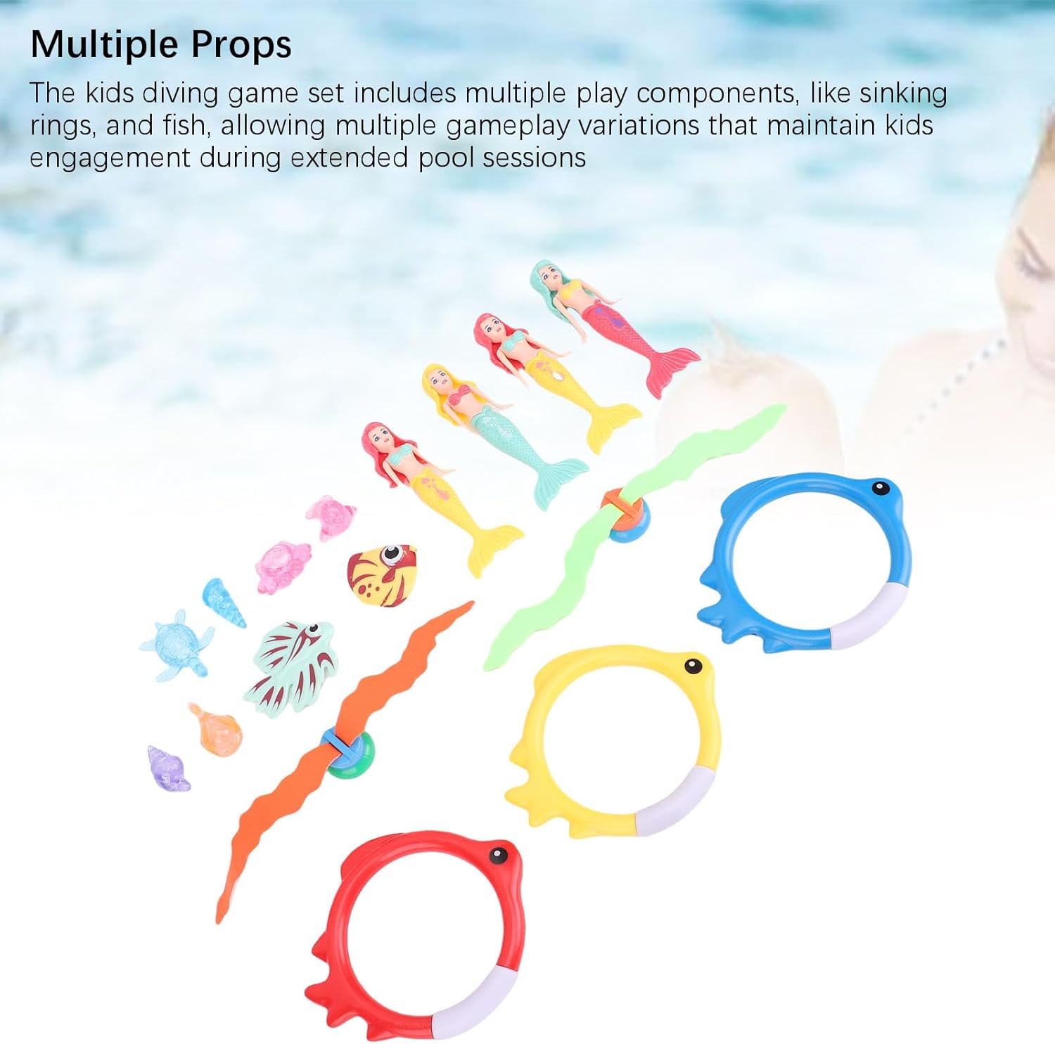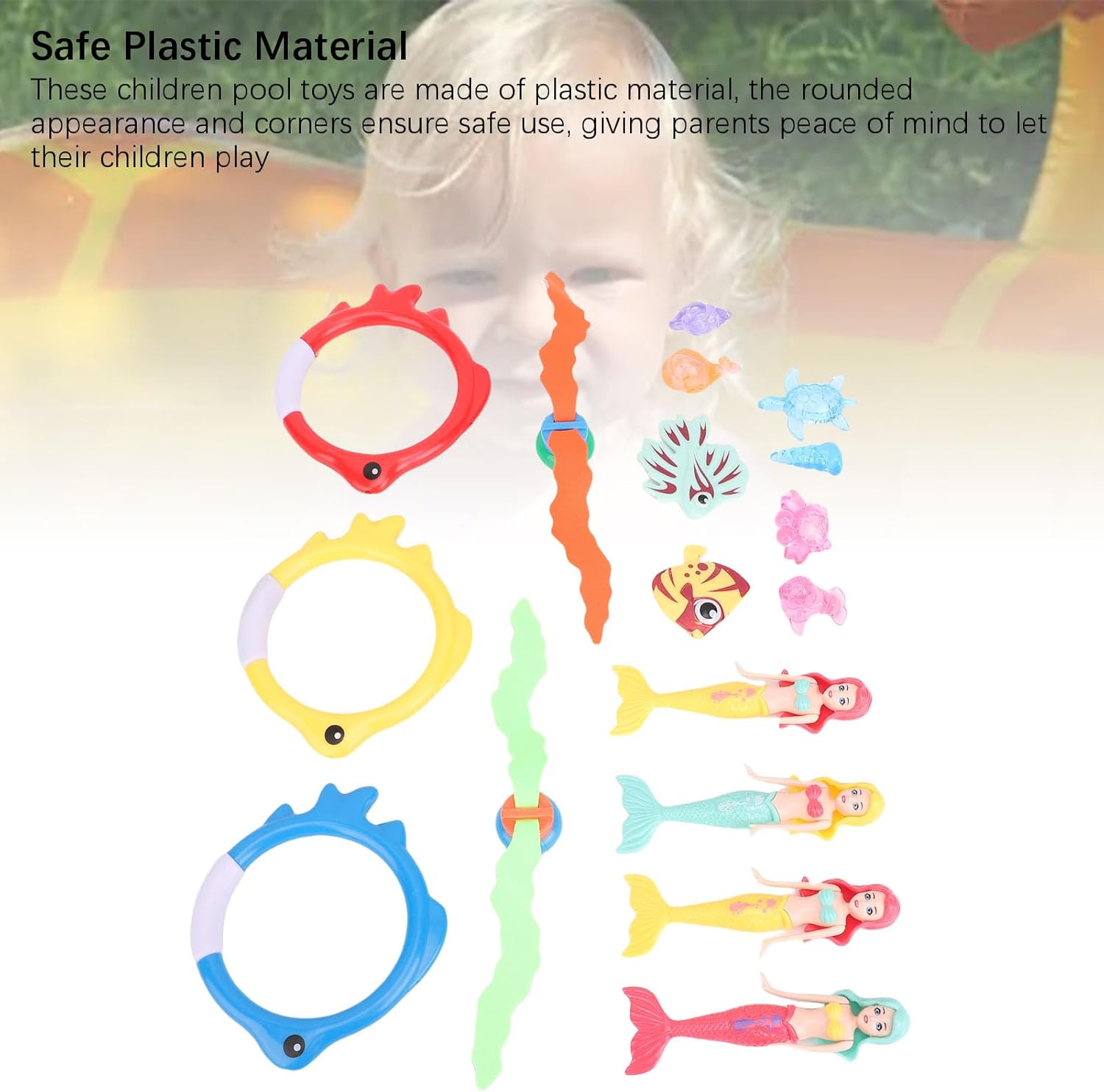 [Fun versatile] per piscine, spiagge e altre aree idriche, questo set di giocattoli sottomarini migliora le relazioni genitore-figlio e fornisce un divertimento sull'acqua infinito. [Multiple Play Components] Intrattenere i bambini con anelli che affondano e pesci, offrendo varie varianti di gioco per mantenerli impegnati durante le sessioni di piscina estese. [Sparks Kids Exploration] Immergiti con questo kit di giocattoli subacquei che incoraggia il gioco attivo, le capacità di coordinamento e le attività di cattura e raccolta degli anelli. [Gioco di ruolo Fun] Lascia che i bambini diventino cacciatori di tesoro subacquei, alla ricerca di piccoli accessori per migliorare le capacità di osservazione e la pazienza. [Sicuro e resistente] realizzato in materiale plastico con angoli arrotondati per un uso sicuro, dando ai genitori la tranquillità mentre i loro figli giocano.