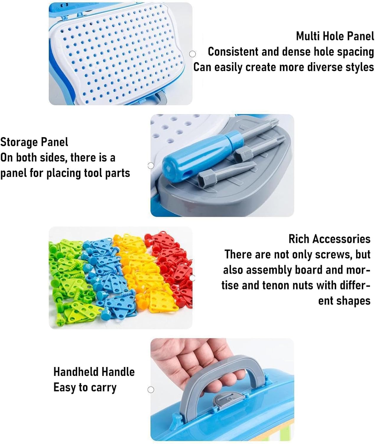[Incoraggia la creatività] coltivare creatività e abilità con il set di giocattoli per trapano elettrico, promuovendo il gioco fantasioso ed esplorazione per i bambini. [Multiple opzioni di gioco] Migliora le capacità di coordinamento e pensiero critico attraverso varie attività di avvolgimento e lavorazione del legno, fornendo tempo di gioco coinvolgente per i bambini. [Progettato per il divertimento dei bambini] Lascia che i bambini sperimentino la gioia dei lavori di riparazione e della costruzione con questo giocattolo per trapano elettrici sicuro ed educativo, ispirando l'apprendimento attraverso il gioco. [Migliora il legame familiare] rafforza la relazione genitore-figlio impegnandosi in interazioni divertenti e progetti di costruzione collaborativa insieme. [Safe Playtime] fornisce un ambiente di gioco sicuro senza bordi affilati, appositamente progettato per bambini di età pari o superiore a 3 anni, garantendo un'esperienza divertente e senza preoccupazioni.