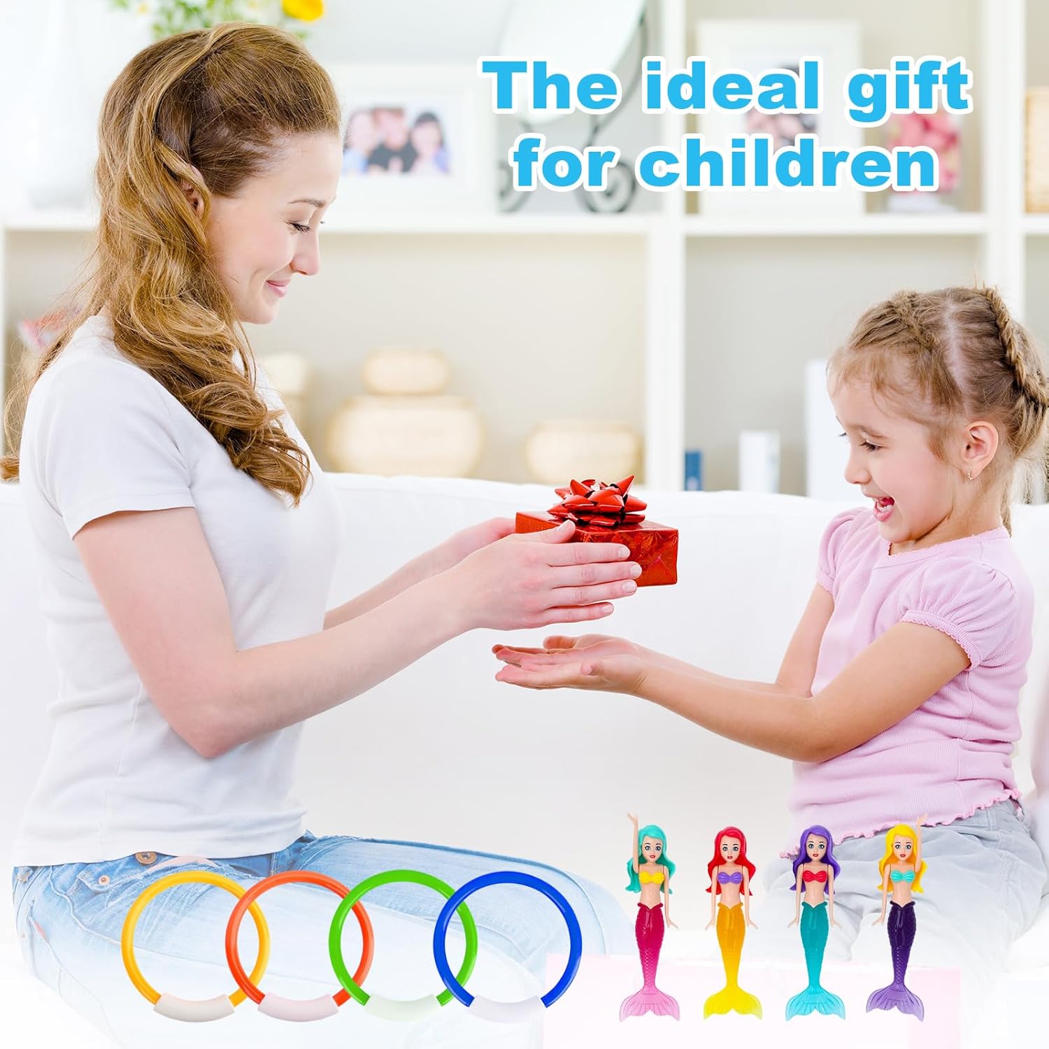 Materiale di Alta Qualità: Giocattoli da immersione è realizzato in ABS di alta qualità, resistente agli urti e durevole, non si deforma né si rompe facilmente, può essere riutilizzato a lungo e non scolorisce facilmente Allenamento di Nuoto: Pool spielzeug kinder può affondare sul fondo della piscina, consentendo ai bambini di immergersi. I giocattoli per immersioni rendono il nuoto più emozionante e migliorano le abilità di immersione dei bambini Colori Vivaci: Swimming pool toys include salvagenti blu, arancioni, gialli e verdi, oltre a motivi a forma di sirena gialli, viola, verdi e rosa. I colori vivaci e il design carino e giocoso stimolano l'interesse dei bambini per le attività acquatiche Design accurato: La superficie di giochi subacquei per piscina è liscia e flessibile, comoda da impugnare, con bordi arrotondati che prevengono graffi, inodore e sicura per i bambini, con un design che unisce comfort e protezione Versatile: Poolspielzeuge kinder è adatto per vasche da bagno, piscine, spiagge e aule scolastiche, soddisfacendo le esigenze dei bambini dai 3 ai 12 anni. 12 anni di lezioni di nuoto e bagni quotidiani