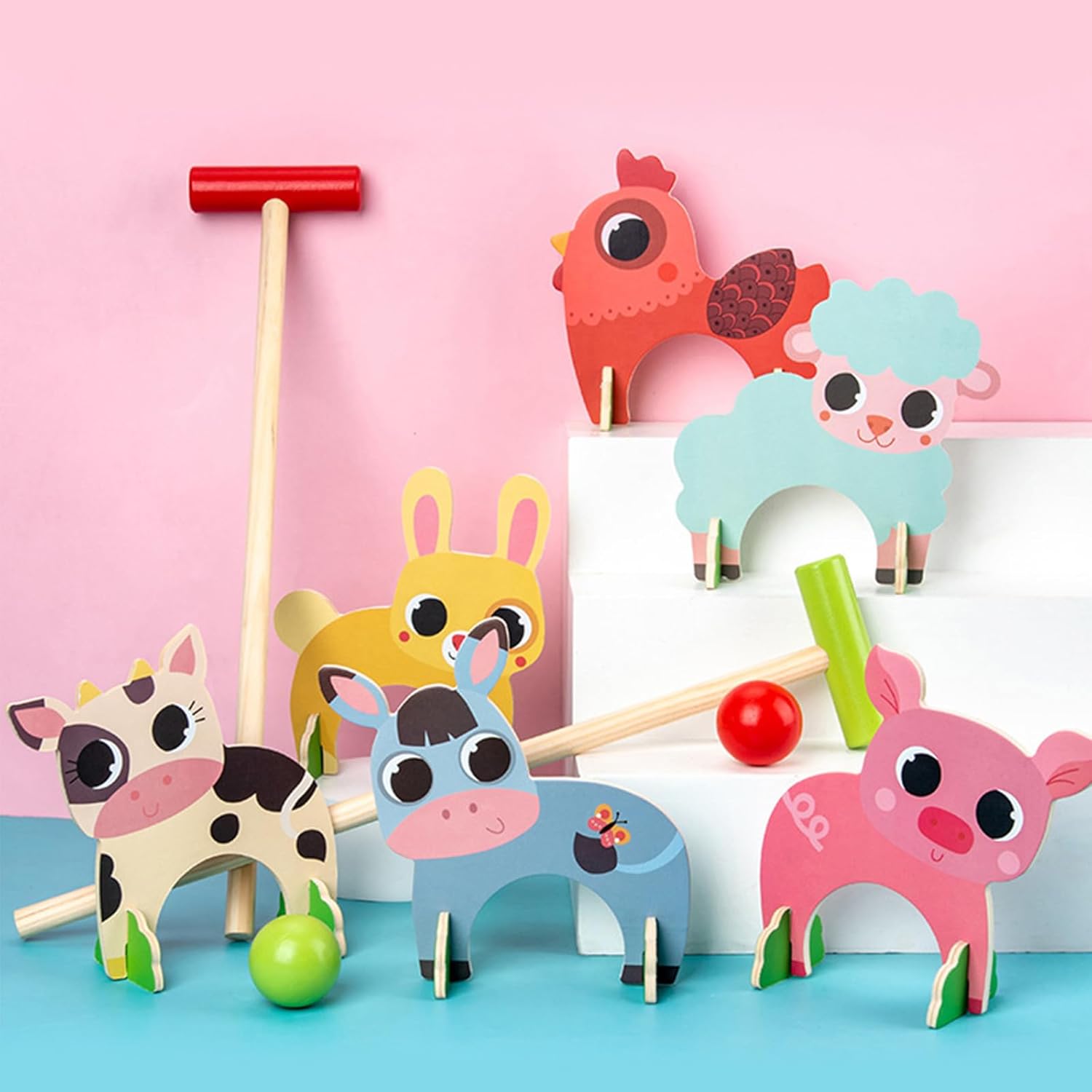 Gioco in legno progettato per intrattenere e sfidare giocatori di tutte le età. Realizzato in legno, questo set da biliardo presenta parti staccabili per una facile portabilità e stoccaggio, insieme a forma di animale dei cartoni animati che aggiungono un tocco giocoso al gioco classico. Adatto per bambini dai 3 anni in su, questo gioco di animali in legno migliora la coordinazione occhio-mano, le abilità motorie e accelera i tempi di risposta. Sia per una giornata informale nel tuo cortile, riunione di famiglia o attività educativa in età prescolare, questo set da biliardo offre un coinvolgente gioco all'aperto per bambini e adulti. La confezione include: 1 set da biliardo