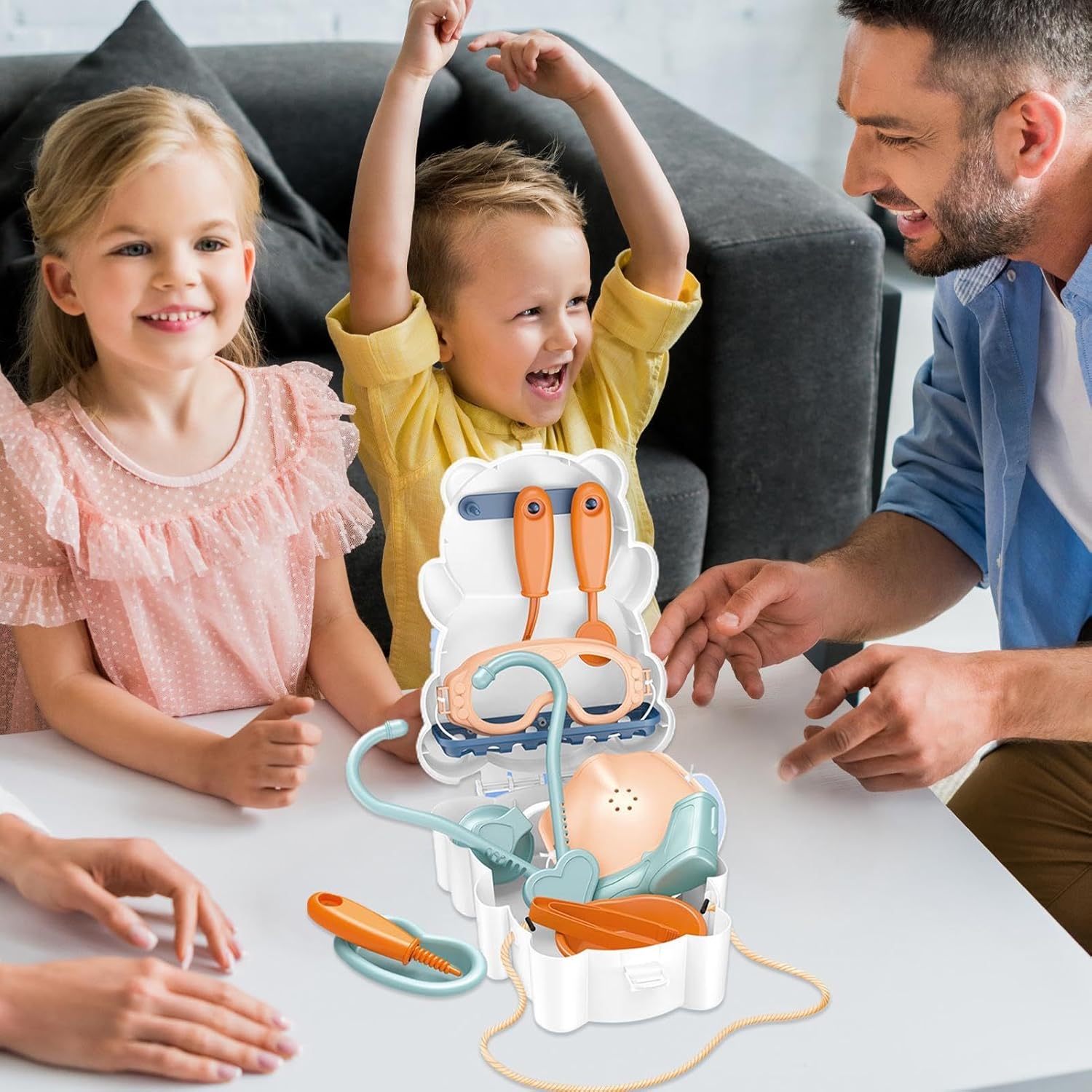 Sviluppa più immaginazione: lascia volare l'immaginazione di tuo figlio mentre si diverte mentre esplora diverse chiamate con il set di giochi di ruolo finto. Questo giocattolo stimola la creatività e migliora le funzioni cognitive per tempi di gioco più lunghi. Imparare attraverso il gioco: possono imparare a comprendere e a prendersi cura degli altri utilizzando il set di giochi di ruolo per fingere di essere medici o ingegneri. Oltre ad aiutarli ad apprendere le competenze di base, questo giocattolo informativo e coinvolgente è un ottimo modo per aiutare i giovani a sviluppare la loro empatia. Sicurezza: realizzato con materiali durevoli e sicuri, questo fantastico set per giochi di ruolo garantirà la sicurezza del tuo bambino facilitando al tempo stesso il gioco divertente ed educativo. Offri al tuo bambino divertimento duraturo mentre impara attraverso escursioni fantasiose e innovative. Facile da trasportare: divertiti all'aria aperta con questo simpatico gioco di ruolo di simulazione del design dello zaino. Il set facile da trasportare aggiunge ulteriore emozione ad ogni momento di gioco e ti assicura un divertimento ancora maggiore ovunque tu vada. Migliora le abilità di squadra: attraverso la condivisione e il legame sociale, il set di giochi di ruolo incoraggia lo sviluppo di abitudini positive e il lavoro di squadra nei giovani cervelli, sviluppando abitudini positive che serviranno loro per tutta la vita apprendendo il valore della collaborazione.