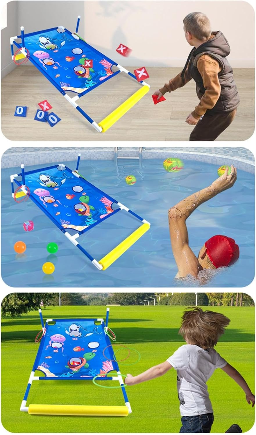 Gioco d'acqua interattivo: migliorare il game familiare con il nostro set di gioco di lancio di borse di fagioli che combina più intrattenimento con ore di divertimento 'acqua, creando interazioni genitore-figlio indimenticabi Migliora capacità cognitive: non solo per divertimento, questo set di gioco di lancio di borse di fagioli migliora il coordinazione occhio-mano dei tuoi bambini, rafforza capacità motorie e supporta la loro crescita progressivamente Ampia gamma di usi: migliora i tuoi barbecue nel cortio i picnic del parco con il nostro set di giochi versatili, offrendo una gamma di giochi come ferro di cavallo, anello e palla da bocce: garantire più intrattenimento per tutte età Costruito a dura prova: sapientemente realizzato con materiali di alta qualità e sicuri, questo set di giochi di lancio di fagioli assicura un maggiore intrattenimento con la sua robusta build e bordi sicuri per un di gioco senza preoccupazioni Mobilità portati: esperienza di divertimento portaticon questo set di giochi di lancio di borse di fagioli che offre facili configurazione e spazio di archiviazione, ideaper intrattenere ovunque dalla piscina e dalla spiaggia al corti. Include una porta di stoccaggio per comodità