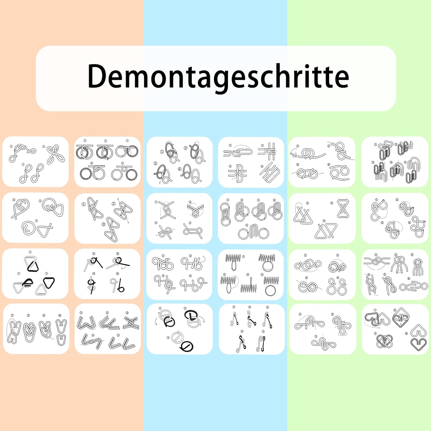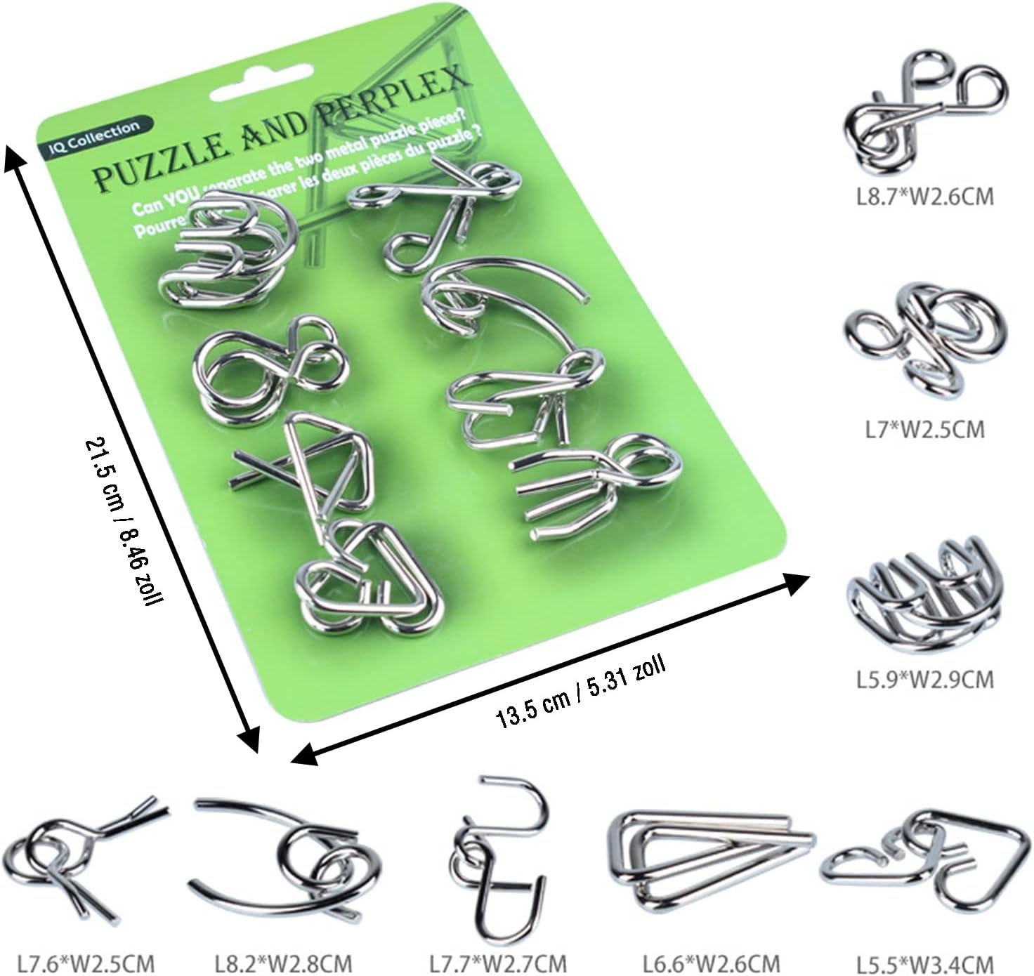 La confezione include: dopo l'acquisto, riceverai 24 giocattoli con diverse forme di puzzle in filo metallico, che possono portare divertimento e sfida a bambini e adulti. Tutti questi puzzle sono molto classici e popolari, ideali per bambini e adulti. Chiunque può prenderlo e giocarci. Materiali di alta qualità: tutte le bobine sono lisce e non hanno spigoli vivi per un gioco infinito senza farti male. Le maglie sono realizzate in acciaio inossidabile, che non si piega né si rompe facilmente anche se lanciato o preso a calci. I giocatori non possono aprirli, quindi non c'è possibilità di imbrogliare. Sono un modo più sano per praticare attenzione e concentrazione. Coordinazione occhio-mano: i giochi puzzle tradizionali cinesi per l'intelligenza popolare sono dotati di 24 puzzle diversi con forme diverse, una gamma di azioni ed elaborazione di input visivi. Questo prodotto ha lo scopo di mantenere l'attività cerebrale e anti-Alzheimer. Allena anche l'immaginazione dei bambini, la coordinazione occhio-mano e il riconoscimento della forma, la coordinazione occhio favorisce anche la coordinazione fisica generale. Adatto a tutti i tipi di persone: per adolescenti e adulti. Grazie alla dimensione perfetta, le mani piccole e grandi possono giocare comodamente. I bambini migliorano le loro capacità di pensiero e per i giovani questo allenta la pressione. Le persone anziane possono allenare il cervello a prevenire la demenza. Può essere giocato da un singolo giocatore o da un gruppo. Regalo perfetto: puzzle IQ adatto per gli appassionati di puzzle che amano collezionarli, nonché buoni regali per i compleanni dei bambini e i contenuti del calendario. Questi collegamenti manipolativi mettono alla prova il pensiero critico e le capacità di risoluzione dei problemi dei giocatori, aiutando a migliorare il loro QI ed EQ. Se avete domande, vi preghiamo di contattarci in tempo. Ti risponderemo il prima possibile.