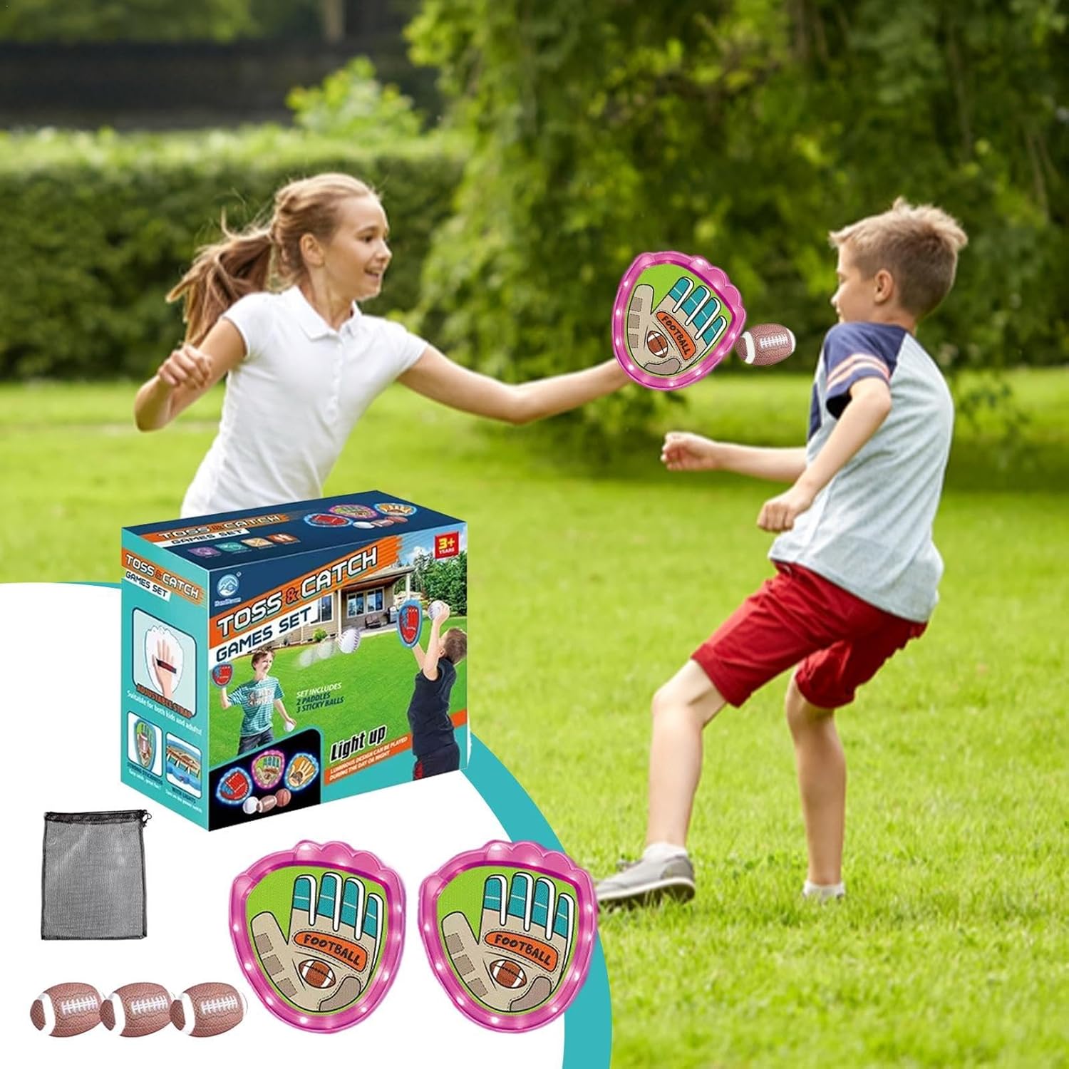 Ore di divertimento: il set di gioco di cattura della palla include 2 pipistrelli, 3 palline e una borsa appositamente progettata, creando un gioco emozionante per i e la famiglia, perfetto per i giochi all'aperto sulla spiaggia, sulla terrazza o sul parco giochi Costruzione robusta: realizzata in materiale composito eccellente, la pagaia è più robusta e più resistente; per la parte appiccicosa della pagaia è molto adesiva e non si stacca Migliora il fitness: ogni lancio e cattura di successo, questo set da gioco migliora la salute e li aiuta a imparare le basi del lancio e della cattura di una palla. Adatto per viaggiare: porta il gioco con te ovunque tu vada per un maggiore divertimento. Include una borsa portaoggetti e non richiede un parco giochi specifico. Ideale per momenti di complicità all'aperto con amore Regalo perfetto: un gioco di wrestling a sfera. Crea ricordi indimenticabili con momenti di gioco più divertenti e attivi, sulla spiaggia, sulla terrazza, sul prato o in giardino. Perfetto per chi cerca l'intrattenimento all'aperto ideale