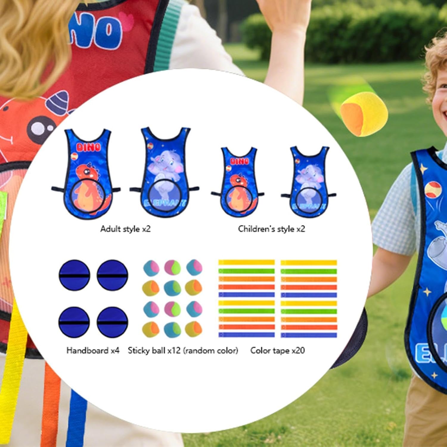 【Materiale di qualità】: realizzato con materiali morbidi, con cuciture meticolose e bordi lisci, per garantire la sicurezza del tuo bambino durante il gioco. Il gilet Ball è leggero, ideale sia per uso interno che esterno. 【Divertimento per rafforzare il legame familiare】: questo gioco interattivo con gilet è perfetto per i membri della famiglia, migliorando le relazioni tra genitori e figli attraverso attività coinvolgenti 【Migliora le abilità】: Progettato per migliorare la velocità di reazione e la flessibilità dei bambini, questo gioco di Dodgeball combina lanci, schivate e tiri della coda per sviluppo completo delle abilità 【Potenziamento dell'interazione sociale】: il gioco con la palla appiccicosa incoraggia l'interazione e la cooperazione tra i bambini, aiutandoli a sviluppare abilità sociali essenziali con i coetanei 【Opzioni di gioco versatili】: molteplici opzioni di gioco, come tirare la coda, per infinite possibilità di intrattenimento. Include 2 giubbotti per adulti, 2 giubbotti per bambini, 4 pagaie, 12 palline adesive e 20 nastri colorati per iniziare .