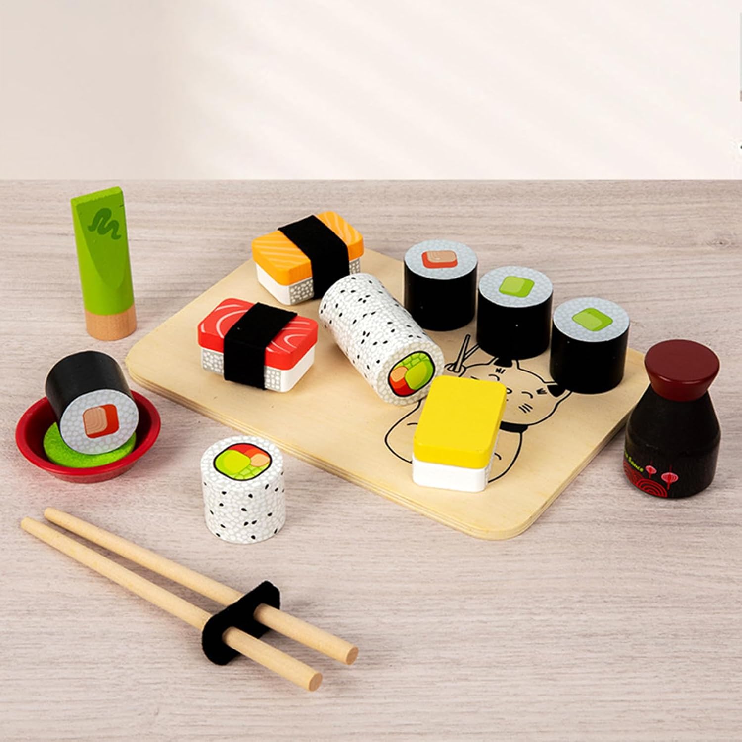 Sicurezza prima: accuratamente pensato da un eccellente legno naturale con angoli arrotondati e finitura lucida, graffi zero su pelle delicata; vernice a base d'acqua per assicurazione della sicurezza, rispettando gli standard internazionali dei giocattoli Migliora la consapevolezza culturale: lasciarli scoprire la cultura alimentare giapponese, questo set di giochi di sushi presenta salmone realistico, sushi di tonno e altro ancora con colori di qualità alimentare, incoraggiando la creatività e l'espressione attraverso il gioco immaginativo Promota la socializzazione: preparare il terreno per una festa di sushi con piatti e accessori realistici, incoraggiando il lavoro di squadra e approfondisci le connessioni genitore-figlio Sviluppa capacità cognitive: ispira loro ad esercitare le loro belle abilità motorie e coordinazione occhio-mano attraverso compiti di assemblaggio di sushi e giochi abbinati ai colori, con conseguente avventura educativa che esplorano il riconoscimento del colore, la classificazione delle forme e altri concetti di apprendimento precoce fondamentale Scelta attuale: confezionato in una scatola colorata di alta qualità con squisita confezione di scatole attuali, questo set di giochi di sushi offre uno scomparto di smistamento integrato, garantendo una facile organizzazione e rendendolo perfetto per un regalo di compleanno o di vacanza