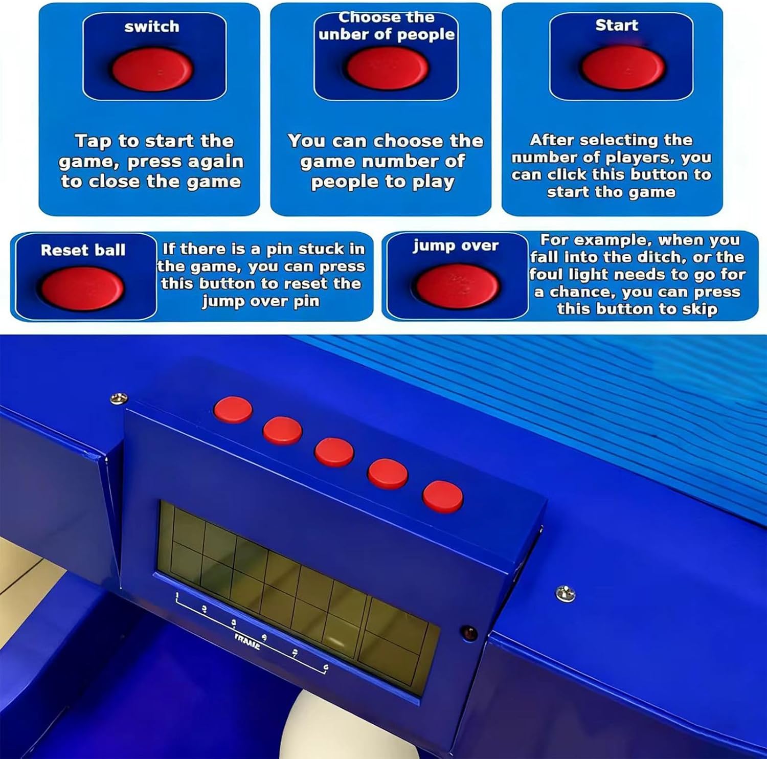 【SET DA GIOCO DA BOWLING ELETTRONICO】Prova l'emozione del bowling direttamente a casa con questo gioco da bowling elettronico a batteria! Progettato per la massima facilità d'uso, è dotato di un sistemas di ritorno automatico della pallina e di un sistemas di punteggio intelligente. Il set include 6 birilli in plastica resistenti di dimensioni standard e 2 bocce da bowling, tutti realizzati con materiali atossici di alta qualità per garantire un gioco sicuro e divertente per i bambini. 【VISUALIZZATORE LED INTELLIGENTE DEL PUNTEGGIO】Tieni traccia di ogni strike e spare con il segnapunti elettronico a LED integrato. Questo gioco da bowling elettronico registra automaticamente i tuoi punteggi, aggiungendo un tocco di competitività a ogni partita. Perfetto per l'allenamento in solitaria o per il divertimento in due, offre un'esperienza interattiva mentre cerchi di abbattere il maggior numero di birilli possibile! 【RITORNO E RESET AUTOMATICI DELLA pallina】Non è necessario recuperare la pallina manualmente: l'innovativo arco di ritorno della pallina te la riporta indietro dopo ogni lancio. In combinazione con effetti sonori realistici, questo gioco da bowling elettronico aumenta l'autenticità e la praticità, rendendo ogni round fluido e coinvolgente. 【INSTALLAZIONE RAPIDA E STOCCAGGIO PORTATILE】Ideale per l'uso domestico, questo gioco da bowling elettronico può essere assemblato in pochi secondi. Le palle sono progettate con una sensazione di peso realistica e un esterno liscio per una maneggevolezza confortevole. Quando il divertimento è finito, è sufficiente ripiegare la pista per riporla in modo compatto, risparmiando spazio senza bordi taglienti che intralcino. 【DIVERTENTE ATTIVITÀ DI LEGAME GENITORE-FIGLIO】Il bowling offre un perfetto mix di intrattenimento, sfida e sviluppo delle abilità. Questo gioco da bowling elettronico aiuta a rafforzare i legami familiari e funge da meraviglioso ponte di comunicazione tra genitori e figli. Condividi risate e momenti di gioia creando insieme ricordi armoniosi.