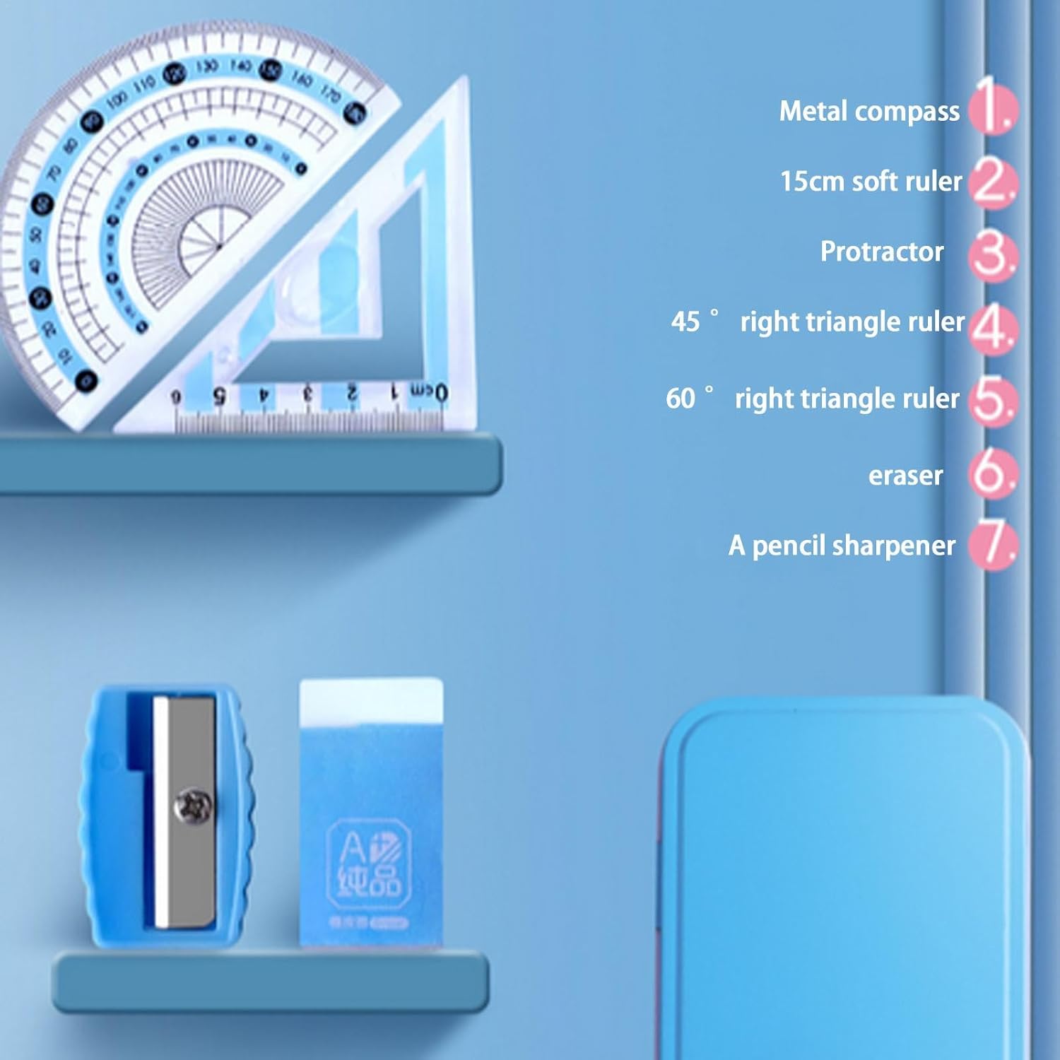 Aiuto per l'apprendimento avanzato: realizzato con cura da esperti di matematica avanzati, questo goniometro e set è perfetto per insegnanti e studenti. I materiali didattici di alta qualità coprono tutti i livelli matematici, dalla base all'avanzato. Migliora la tua esperienza di geometria e divertiti ad imparare con questo versatile strumento matematico Forte durata: il goniometro e il set sono realizzati con struttura rinforzata per una maggiore durata e un uso duraturo. Il righello flessibile garantisce misurazioni accurate e lo stoccaggio portatile incluso lo rende facile da trasportare Ottimo strumento per varie occasioni: dai progetti scolastici alle attività in ufficio, questo dispositivo versatile garantisce risultati accurati. Viene fornito con una robusta custodia in ferro infrangibile per la conservazione e la protezione Design ergonomico: con bussola in metallo di alta qualità e righello trasparente con righello triangolare e goniometro, questo set è facile da usare, perfetto per insegnanti e studenti Migliora la creatività: sperimenta la differenza con un goniometro e un set di bussola personalizzati per studenti, insegnanti e designer. Perfetto per la scuola e le vacanze: facile da trasportare e riporre in classe o a casa