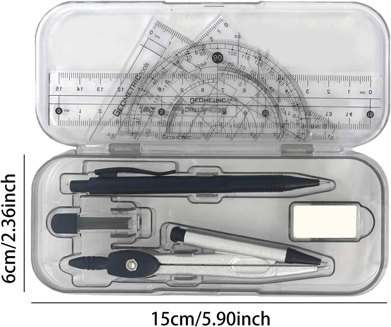 Sviluppa abilità di disegno: con una gamma di righelli da disegno per tutti i tipi di esigenze, questo set di geometrie aiuta gli studenti a migliorare le loro abilità di disegno negli studi Kit di geometria: questo set di geometria matematica soddisfa diverse esigenze accademiche, tra cui geometria, disegno e altre materie. Ideale per studenti versatili Costruzione robusta: costruito con materiali robusti, il nostro set di geometrie mantiene la sua stabilità e previene danni durante l'uso a lungo termine, garantendo prestazioni affidabili Soluzione portatile: gli studenti possono facilmente tenere i propri strumenti di geometria in ordine e accessibili con la scatola portaoggetti del nostro set. Evita di perdere gli strumenti portandoli a scuola in una scatola dal design pratico Aiuto per l'apprendimento: questo set di geometrie è un compagno di scuola ideale per una migliore esperienza di apprendimento. strumento indispensabile che aiuta gli studenti a essere bravi nelle attività in classe e nei compiti a casa