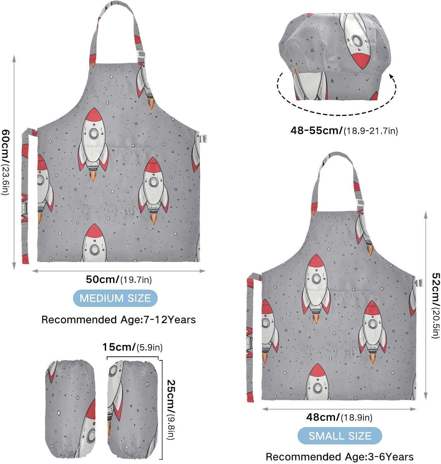 Dimensioni consigliate: S: 48 x 52 cm (età 3-6 anni). M: 50 x 59,7 cm (7-12 anni). La taglia può adattarsi alla maggior parte dei ragazzi e delle ragazze. Si prega di scegliere la taglia giusta in base alle dimensioni specifiche. Materiale di alta qualità: il set da chef per bambini è realizzato in poliestere, comodo, elegante, leggero e regolabile, impermeabile, facile da pulire. Protezione delle maniche con una grande tasca: due maniche possono proteggere i bambini da acqua, olio e pigmenti. Con grandi tasche decorative e funzionali, è comodo mettere alcuni strumenti quando si utilizza, adatto per imparare a cucinare, fare caramelle, dolci, ecc. Scenario applicabile: ideale per asilo, asilo, cucina, sala pittura, giardino, Halloween, Natale, abbigliamento del Ringraziamento, artigianato e attività di pittura artistica, festa di compleanno per incoraggiare i bambini a sviluppare la loro cucina, pittura, cottura, giardinaggio o altre abilità. Istruzioni di lavaggio: lavabile in lavatrice e a mano. Non candeggiare, lavare a secco e asciugare in asciugatrice.