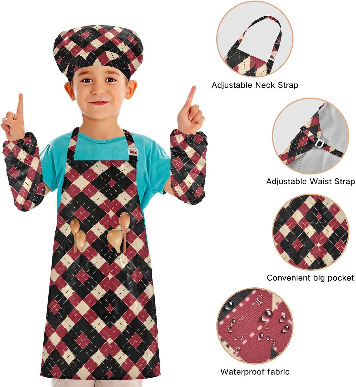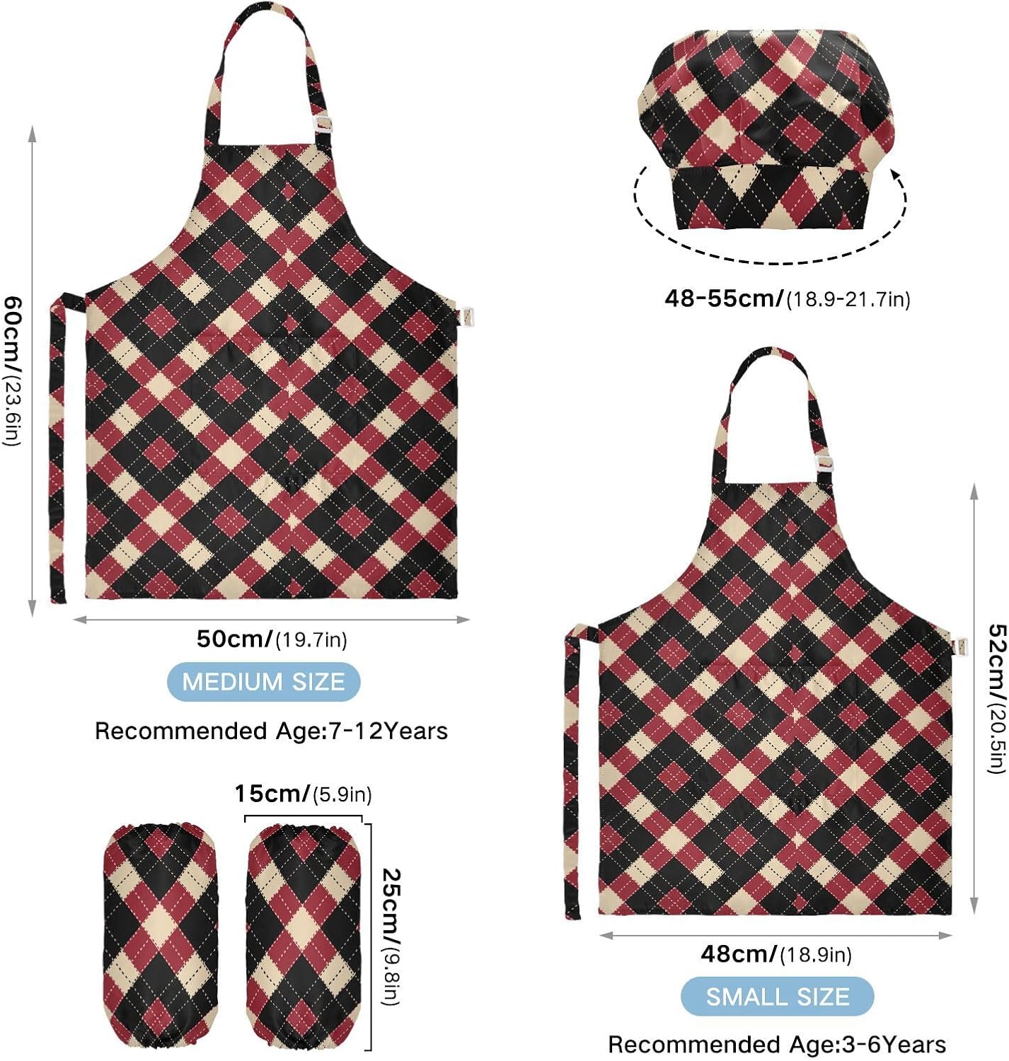 Taglia disponibile: S: 48 x 52 cm, per bambini dai 3 ai 6 anni. M: 50 x 59,7 cm, per bambini dai 7 ai 12 anni. Le taglie di cappelli e maniche condividono le stesse dimensioni. Cappello: 48-55 cm. Maniche: 15 x 24,9 cm. Tessuto comodo: il {parola chiave} è realizzato in tessuto di poliestere di alta qualità, morbido, ecologico, impermeabile, a prova di fuoriuscite e, processo di stampa squisito brillante. Protezione delle maniche con una grande tasca: due maniche possono proteggere i bambini da acqua, olio e pigmenti. Con grandi tasche decorative e funzionali, è comodo mettere alcuni strumenti quando si utilizza, adatto per imparare a cucinare, fare caramelle, dolci, ecc. Scenario applicabile: ideale per asilo, asilo, cucina, sala pittura, giardino, Halloween, Natale, abbigliamento del Ringraziamento, artigianato e attività di pittura artistica, festa di compleanno per incoraggiare i bambini a sviluppare la loro cucina, pittura, cottura, giardinaggio o altre abilità. L'articolo include: il grembiule da cucina per bambini include 1 grembiule leggero, 1 cappello da chef e 2 maniche. Il grembiule da cucina per bambini può dare ai bambini una buona esperienza di utilizzo per cucinare o dipingere come fornelli o pittori professionisti.