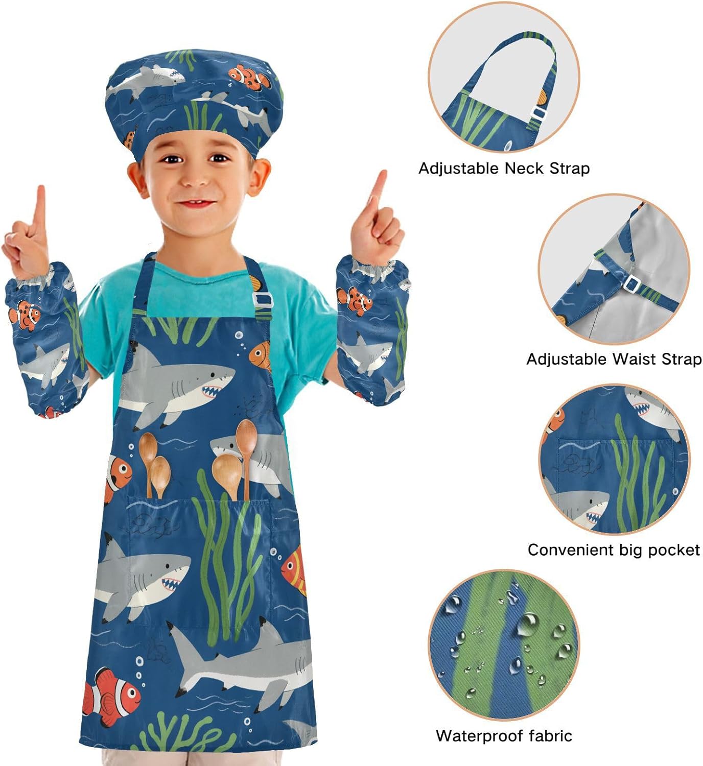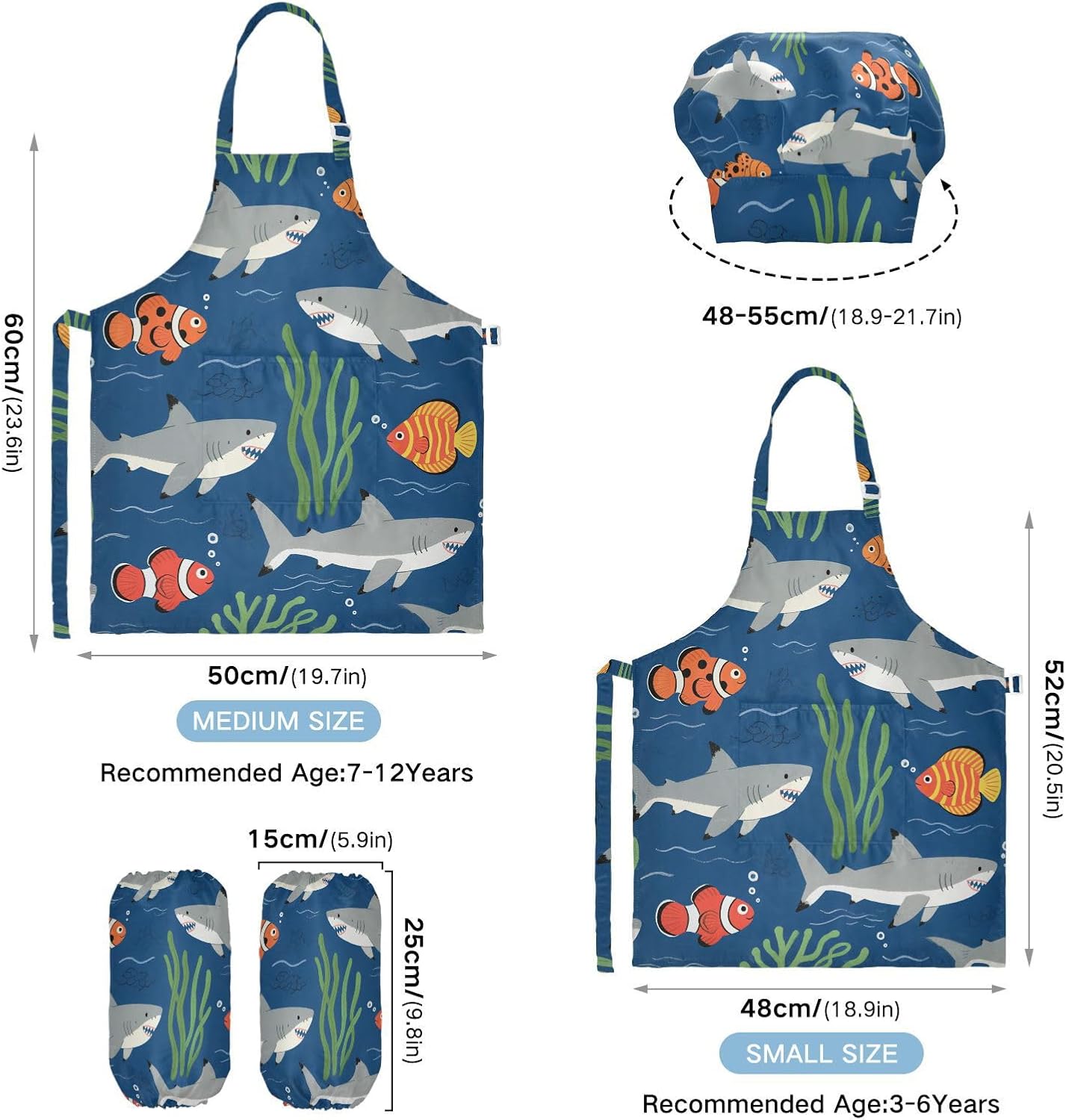 Dimensioni consigliate: S: 48 x 52 cm (età 3-6 anni). M: 50 x 59,7 cm (7-12 anni). La taglia può adattarsi alla maggior parte dei ragazzi e delle ragazze. Si prega di scegliere la taglia giusta in base alle dimensioni specifiche. Materiale ecologico: il tessuto è impermeabile, leggero, accogliente, stampa adorabile alla moda, ecologico per la pelle dei bambini. Protezione delle maniche con una grande tasca: due maniche possono proteggere i bambini da acqua, olio e pigmenti. Con grandi tasche decorative e funzionali, è comodo mettere alcuni strumenti quando si utilizza, adatto per imparare a cucinare, fare caramelle, dolci, ecc. Scenario applicabile: ideale per asilo, asilo, cucina, sala pittura, giardino, Halloween, Natale, abbigliamento del Ringraziamento, artigianato e attività di pittura artistica, festa di compleanno per incoraggiare i bambini a sviluppare la loro cucina, pittura, cottura, giardinaggio o altre abilità. L'articolo include: il grembiule per bambini include 1 grembiule leggero, 1 cappello da chef e 2 maniche. Il grembiule per bambini può dare ai bambini una buona esperienza di utilizzo per cucinare o dipingere come fornelli o pittori professionisti.