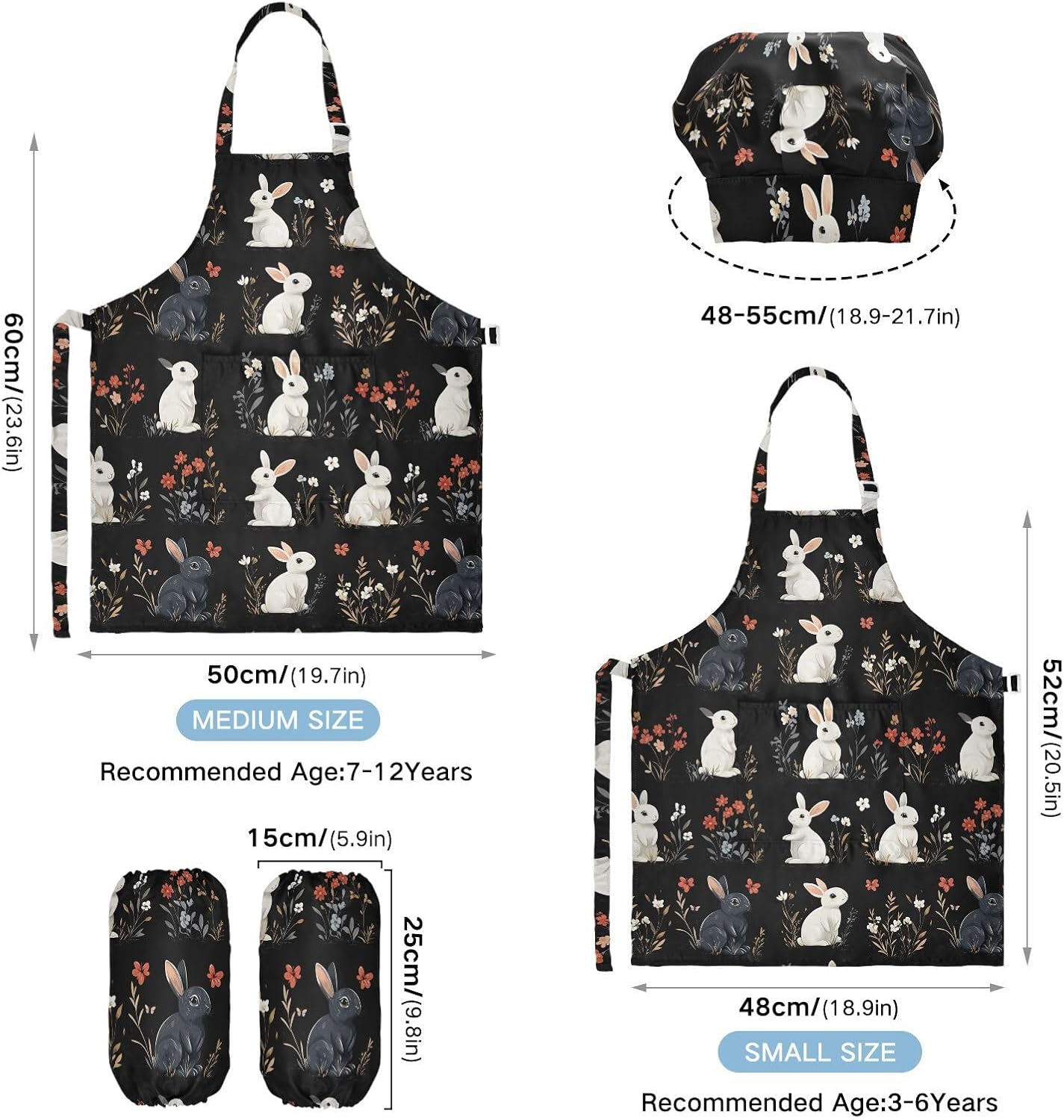 Taglia disponibile: S: 48 x 52 cm, per bambini dai 3 ai 6 anni. M: 50 x 59,7 cm, per bambini dai 7 ai 12 anni. Le taglie di cappelli e maniche condividono le stesse dimensioni. Cappello: 48-55 cm. Maniche: 15 x 24,9 cm. Materiale di alta qualità: i grembiuli per bambini sono realizzati in poliestere, morbido tessuto impermeabile twill 290, dando una sensazione confortevole quando si indossa. Cinghia regolabile: il set da cucina per bambini da 3 pezzi con collo regolabile e cinturino in vita può fornire ai bambini una buona esperienza di utilizzo. Non devi preoccuparti se il grembiule da cucina per bambini si adatta a loro o non più. Multiuso: il costume da chef per bambini non può essere indossato per pittura, cucina, giardinaggio, lavaggio dei piatti, feste, arte, artigianato e attività scolastiche, ma anche per Natale, Ringraziamento, Halloween, San Patrizio, Capodanno, festa dei bambini, festival, vacanze, cene, compleanni e riunioni di famiglia. Istruzioni di lavaggio: lavabile in lavatrice e a mano. Non candeggiare, lavare a secco e asciugare in asciugatrice.