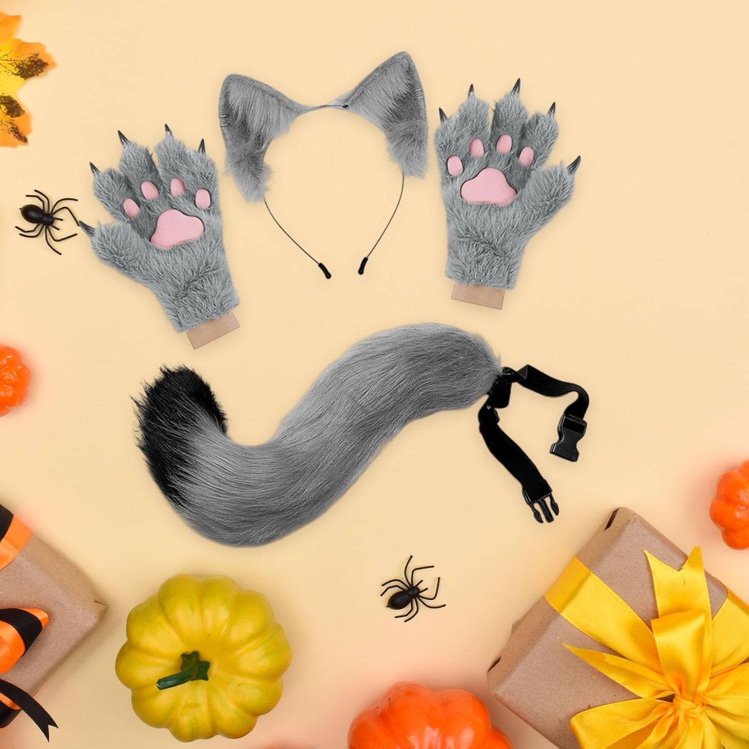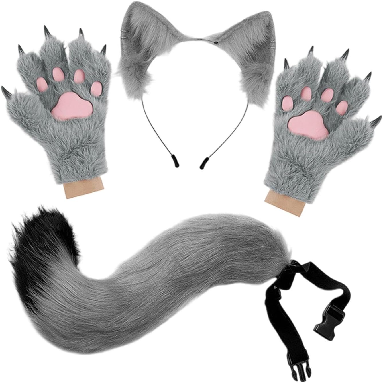 Specifiche: Materiale: Tabella delle taglie: Orecchie: 22 x 22 cm. Coda: 50 x 10 cm. Artigli: 22 x 27 cm. Contenuto della confezione: 1 fascia per capelli. 1 coda 1 paio di guanti. Nota: a causa della misurazione manuale, le dimensioni mostrate possono variare leggermente. Avviso di sicurezza: no.