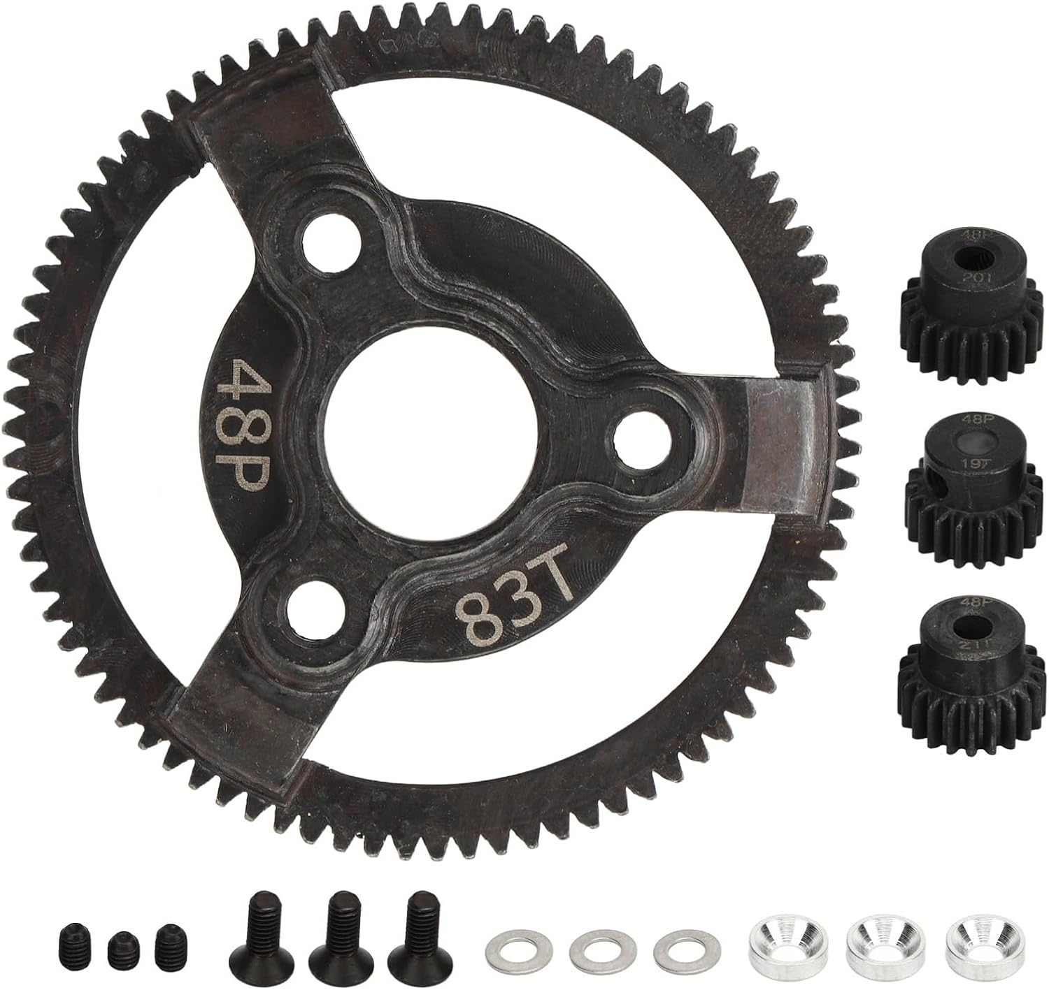 Sostituzione ideale: il set di ingranaggi cilindrici con pignone in metallo è facile da installare ed è un pezzo di ricambio per quelli vecchi o rotti. Materiale premium: set di ingranaggi cilindrici a pignone in acciaio metallico temprato per rotolamento stabile, elevata resistenza all'usura e lunga durata. Ingranaggi pignone 3 pezzi: la velocità dipende dal rapporto di trasmissione. Sono forniti 3 pignoni con denti diversi per darti più opzioni in termini di rapporto di trasmissione. Compatibilità perfetta: il set di ingranaggi cilindrici pignone è perfettamente adatto per auto Slash 2WD 1/10 RC. Artigianato raffinato: ingranaggi cilindrici in acciaio realizzati con precisione, ingranaggi durevoli con capacità di gestione della potenza affidabile.