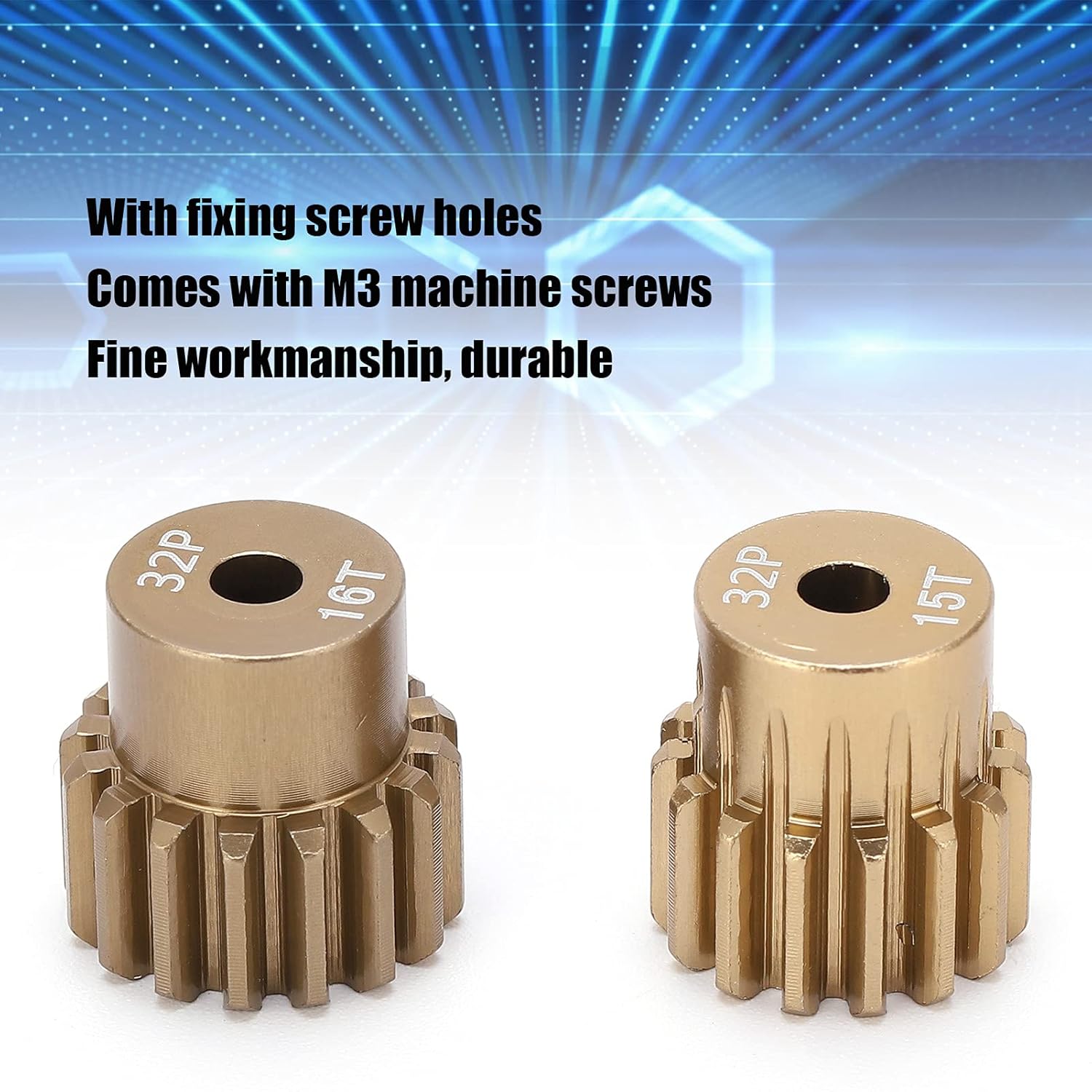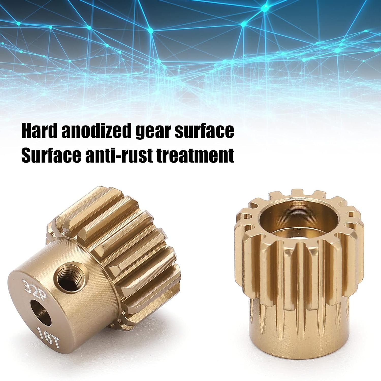 [COSTRUZIONE PREMIUM IN ALLUMINIO] Realizzato in lega di alluminio di alta qualità per una durata e una resistenza al calore eccezionali. Gli ingranaggi progettati con precisione rimangono innestati anche durante il funzionamento ad alta velocità dell'auto RC. Questa selezione di materiali di alta qualità garantisce che gli ingranaggi del motore non si deformino o si usurino nel tempo, a differenza delle alternative. [SUPERFICIE ANODIZZATA ANTIRUGGINE] Presenta un rivestimento anodizzato duro professionale che garantisce un'eccellente durata. Lo strato protettivo previene l'ossidazione e la formazione di ruggine anche in condizioni umide. Goditi prestazioni di lunga durata senza preoccuparti del degrado della superficie che compromette la funzionalità della tua attrezzatura. [ADATTA A MOTORI DA 3,175 MM] Progettato appositamente per veicoli RC in scala 1:10 con motori brushless con albero da 3,175 mm. La spaziatura dei denti 32P calibrata con precisione garantisce una trasmissione della potenza fluida e una perdita di energia minima. Include più opzioni di denti (13T-20T) per personalizzare le caratteristiche di velocità e coppia del tuo veicolo. [DESIGN DI INSTALLAZIONE RAPIDA] Viene fornito con fori di montaggio preforati e include tutte le viti M3 necessarie. Il semplice processo di installazione richiede solo pochi minuti, così puoi tornare a correre più velocemente. Non sono necessari strumenti speciali, sia per gli hobbisti che per gli appassionati RC competitivi. [DESIGN PER L'AUMENTO DELLE PRESTAZIONI] I denti degli ingranaggi lavorati con precisione riducono l'attrito e il rumore durante il funzionamento. Il profilo ottimizzato dei denti massimizza l'efficienza della trasmissione di potenza riducendo al minimo l'usura. Sperimenta un'accelerazione più fluida e prestazioni più fluide dal tuo veicolo RC.