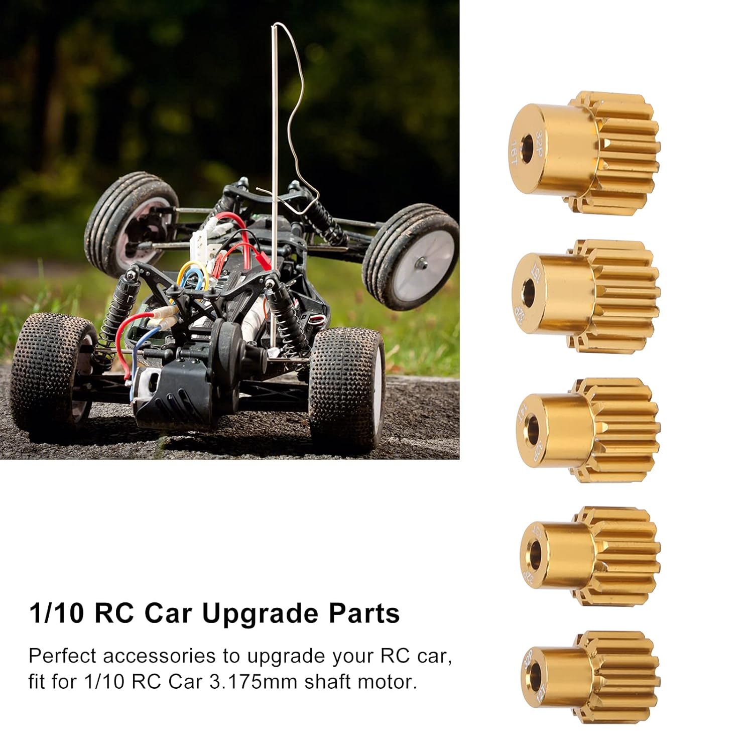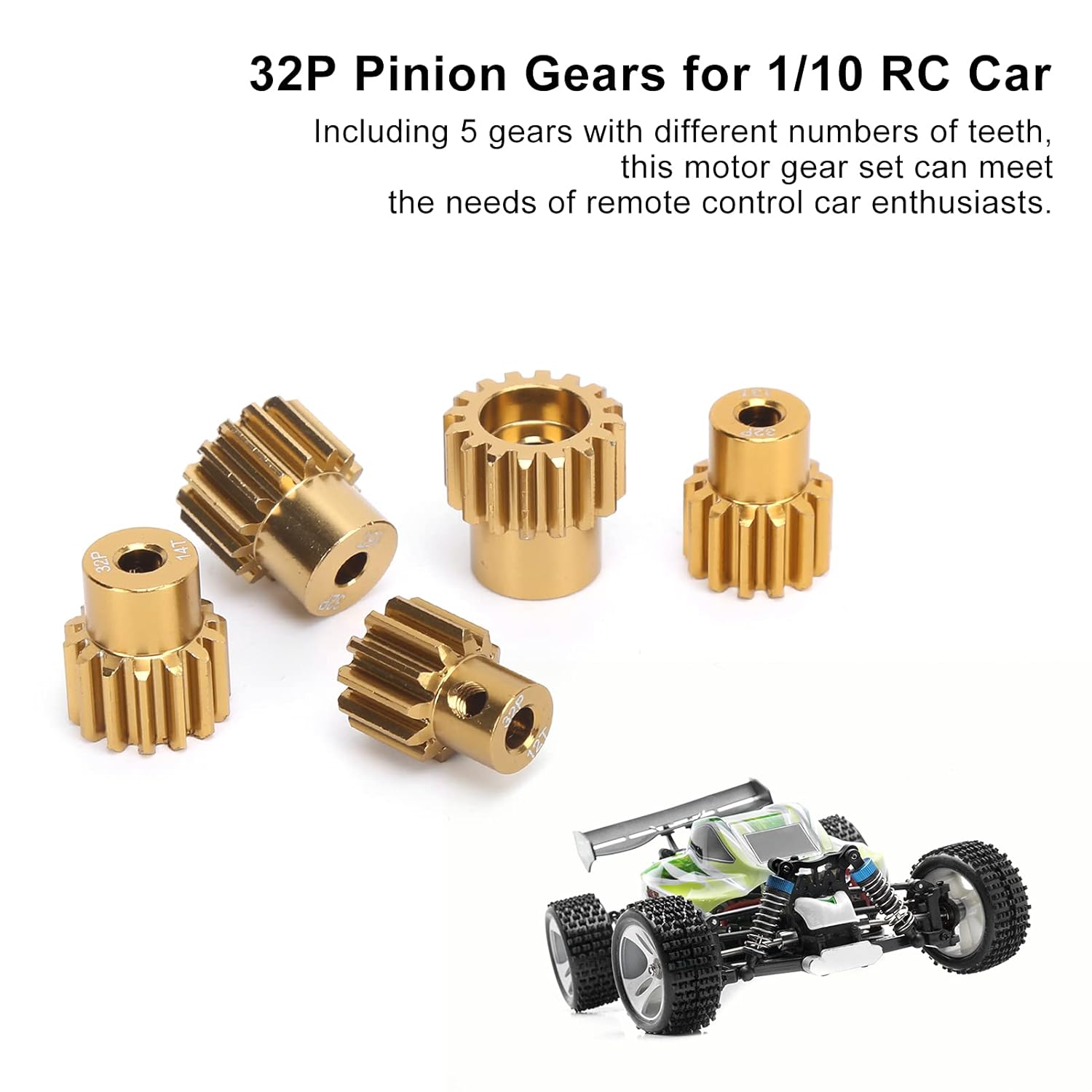 [Costruzione in lega di alluminio premium] Realizzato con materiale in lega di alluminio di alta qualità Questi ingranaggi a pignone offrono una durata e prestazioni eccezionali. La costruzione leggera ma robusta garantisce un funzionamento e una longevità fluidi anche in condizioni di corse automobilistiche RC esigenti. I nostri ingranaggi mantengono un impegno preciso dei denti per un trasferimento di potenza ottimale tra il motore e la trasmissione. [Set di ingranaggi da 5 pezzi completi] Questo set completo include cinque diversi ingranaggi di conteggio dei denti (12T 13T 14T 15T 16T) che ti danno opzioni di rapporto di marcia multiple per ottimizzare le prestazioni della tua auto RC. Sia che tu abbia bisogno di accelerazione o ottimizzazione della velocità massima, questo set versatile ti copre. Ogni attrezzatura è lavorata per precisione per una vestibilità perfetta e prestazioni coerenti. [Specialmente progettato per le auto RC 1/10] Ingegnerizzato specificamente per veicoli RC in scala 1/10 con motori a alberi da 3,175 mm Questi ingranaggi per pignone offrono prestazioni di grado professionale. Il design a 32 pitch garantisce un funzionamento silenzioso e un trasferimento di potenza efficiente. Perfetto per gli hobbisti che desiderano migliorare i componenti della trasmissione della loro auto RC con parti di qualità premium. [Include accessori di installazione] Il set è dotato di tutto hardware necessario per una facile installazione tra cui cinque viti di set e un comodo strumento di chiavi. Non è necessario acquistare strumenti o componenti aggiuntivi tutto ciò di cui hai bisogno è disponibile in un pacchetto. La chiave HEX inclusa rende le modifiche degli attrezzi rapidamente e senza problemi durante le gare o la manutenzione. [Upgrade perfetto per gli appassionati] Progettato con gli appassionati di auto RC in mente questo set di marcia offre qualità a livello professionale a un prezzo accessibile. La costruzione di alluminio anodizzato resiste all'usura e alla corrosione mentre il profilo del dente preciso garantisce un mesh liscio. Trasforma le prestazioni della tua auto RC con questi ingranaggi pignoni di alta qualità che offrono sia affidabilità che stile.
