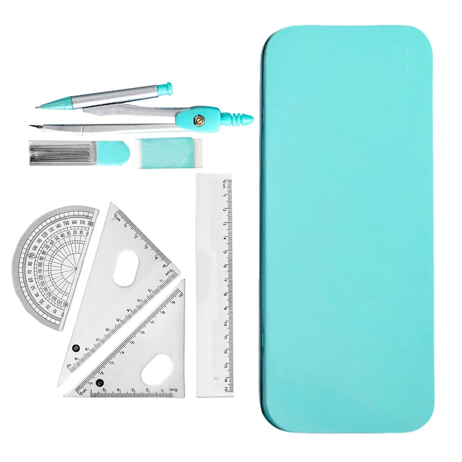 Materiale sicuro: il nostro kit di geometria matematica è realizzato con materiali selezionati, che ne garantiscono robustezza e precisione. Realizzato con sicurezza di alta qualità, questo kit è ideale sia per studenti che per professionisti che cercano qualità e longevità Punti salienti 'artigianato: il nostro kit di geometria matematica è sapientemente realizzato senza sbavature bordi appuntiti, fornendo una versione straordinaria e una lavorazione squisita per una progettazione geometrica precisa e sicura Ampiamente applicabile: equipaggiati con il kit di geometria matematica, un set di strumenti multifunzionali da 7 pezzi che include righello, goniometro, matita, gomma, per migliorare le tue abilità di geometria. Le sue misurazioni e i suoi disegni precisi lo rendono ampiamente utilizzato e strumento indispensabile per gli studenti Buon regalo: crea un'atmosfera piena di meraviglie durante le occasioni speciali con il nostro kit di geometria matematica. Questo è un regalo perfetto per uomini e donne durante le vacanze come Natale, Ringraziamento e compleanni Perfezione portatile: porta comodamente con te i tuoi studi di matematica grazie alla nostra scatola di ferro leggera e infrangibile. Utilizzalo sempre e ovunque. La scatola di ferro infrangibile ti garantisce di poterla utilizzare sempre e ovunque