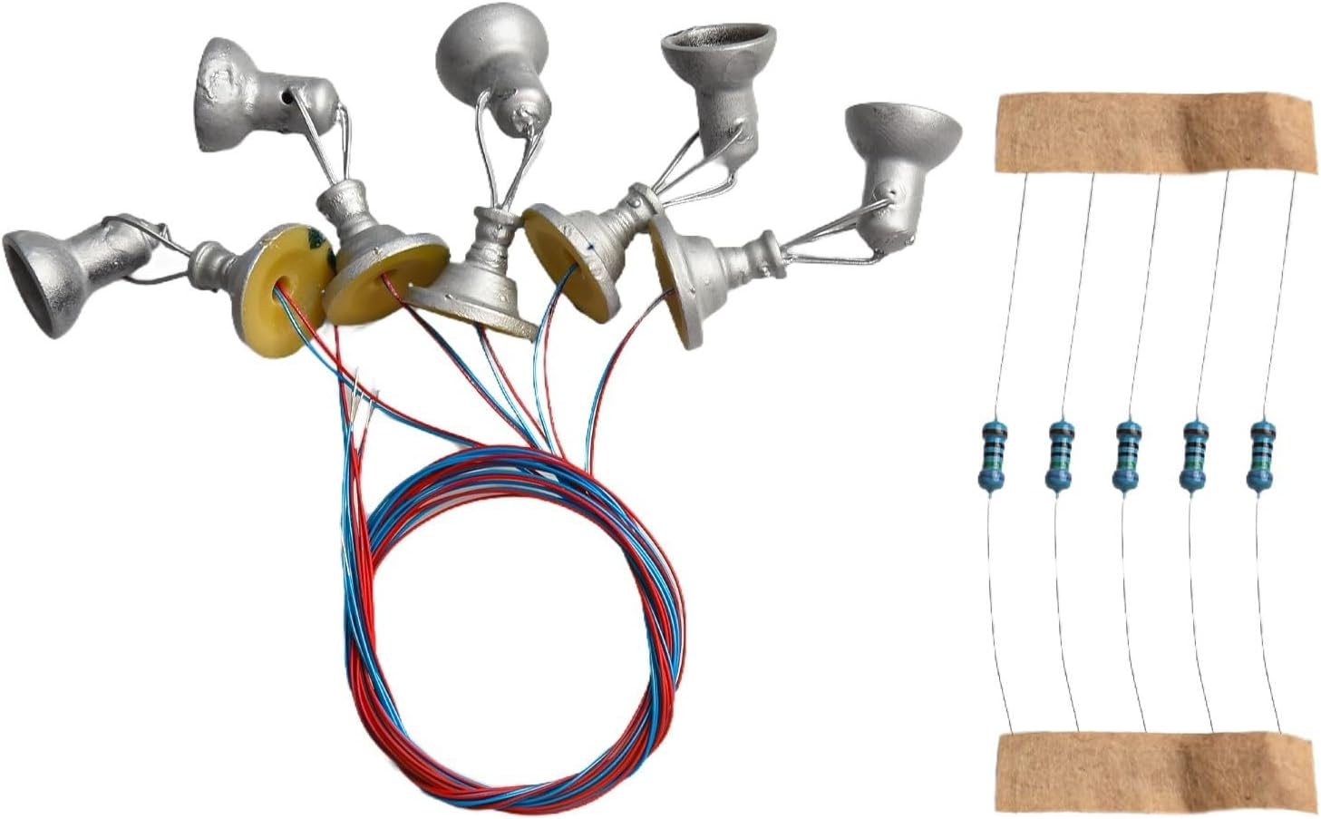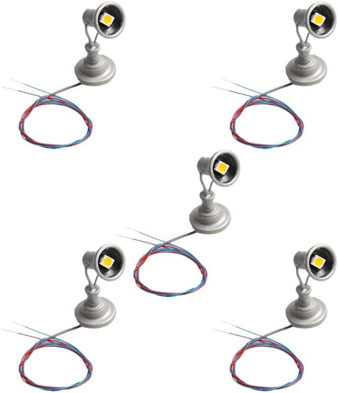 LED bianchi caldi: queste lampade ferroviarie modello sono dotate di LED bianchi caldi, che forniscono un'atmosfera accogliente e invitante. Facili da usare: completi di cavi e LED, questi lampioni sono pronti per essere accesi. collegarli a un alimentatore da 3V e applicare la corrente di funzionamento corretta di 20mA a ciascun LED. Scala adatta: progettate per modelli in scala 1:75 ~ 87, queste luci di inondazione sono perfette per layout ferroviari e edifici. Materiale: realizzate con lampioni in rame, queste luci sono robuste e affidabili per un uso a lungo termine. La confezione include: ogni set include 5 lampade complete, che lo rendono comodo per illuminare il layout del modello.